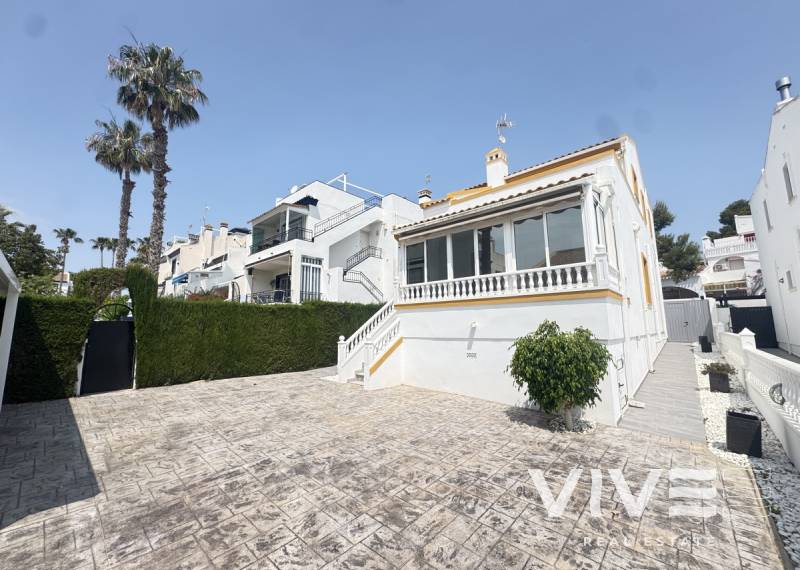 CONTEMPORARY VILLA NEXT TO THE GOLF COURSE Contemporary villa located next to the exclusive Villamartín golf course, facing Southeast. It consists of 3 double bedrooms (all with built-in wardrobes), 3 bathrooms (one en suite), fully equipped modern integrated kitchen (with breakfast bar), large open living / dining room leading to an enclosed garden with private pool and parking area, and a spacious rooftop solarium. Close to the charming beaches, coves and marinas of Cabo Roig and Campoamor, close to 3 different golf courses. Also the services of a wide variety of bars and restaurants, live entertainment and shopping centers such as La Zenia Boulevard and Los Dolces. And the benefits of good road connections and Alicante Airports and Murcia International Airports.