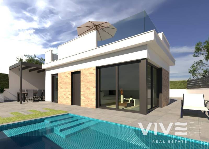 NEW BUILD TOWNHOSES IN LOS ALCAZARES New Build residential of villas and townhouses in Serena Golf, Los Alcazares. Modern townhouses has 3 bedrooms, 2 bathrooms, open plan kitchen with living area, terrace, solarium, private garden with the pool and parking space. Fully fitted kitchen in white gloss or wood colour. Technological technological quartz. Stainless steel sink. Induction hob with integrated extractor fan, oven, microwave, washing machine, integrated refrigerator, integrated dishwasher. Air conditioning: Complete installation with FUJITSU ducts. Swimming pool: Dimensions according to the property, with steps, blue ceramic tiles and white LED lighting. Pre-installation for heat pump. La Serena Golf is located in the municipality of Los Alcázares, occupying an area of 60 hectares on the edge of the Mar Menor, a perfect natural environment to enjoy the best climate in Europe. Los Alcázares located in the Region of Murcia near the beaches of Mar Menor, where you can practice various water sports, surrounded by several golf courses. Here you can practice various water sports, surrounded by several golf courses and the city of Cartagena less than 15 minutes by car and 22 km from Murcia airport, therefore having a wide cultural, gastronomic and sports offer within reach.