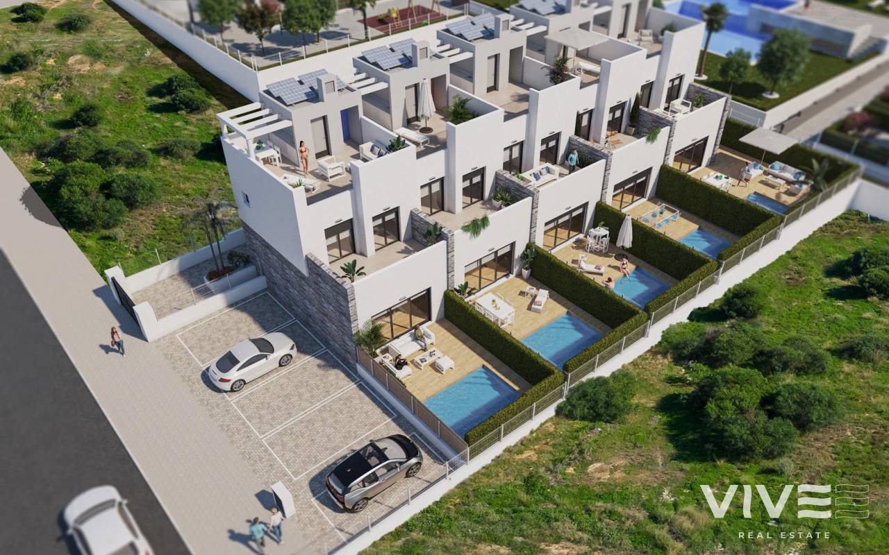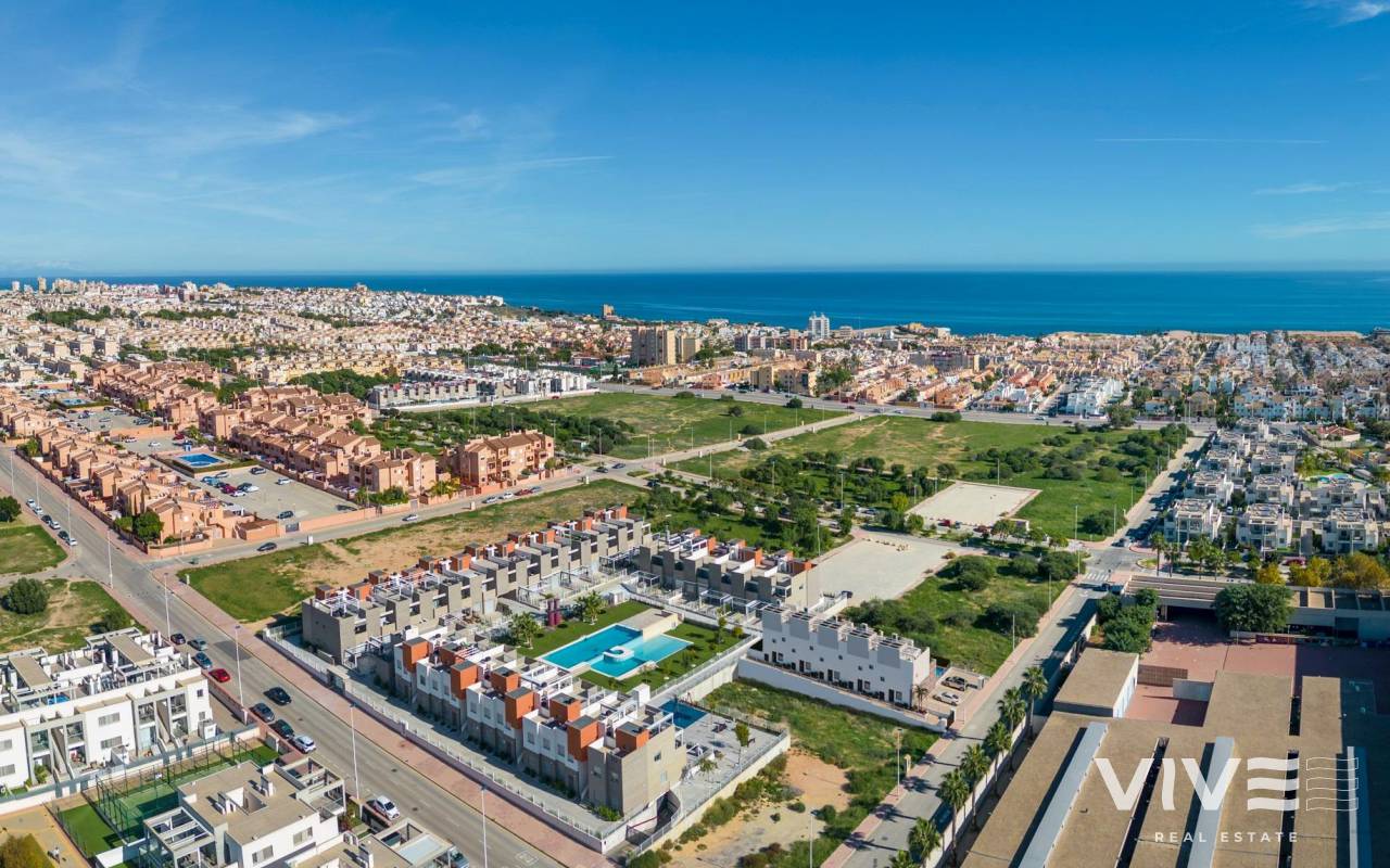 NEW BUILD SEMI-DETACHED VILLA IN TORREVIEJA New Build residential of 5 beautiful properties with private swimming pools in Torrevieja. Semi-detached villa has 3 bedrooms, 2 bathrooms, open plan kitchen with living room, fitted wardrobes, terrace, private solarium with BBQ area, garden with the pool and comunal parking space. Properties built with top quality materials and finishes. Its incredible location 5 minutes from the sea and its proximity to the main shopping and leisure areas of Torrevieja, as well as its golf courses, make it a unique and exclusive place to live. Torrevieja is a Spanish town in the province of Alicante, on the Costa Blanca. It is known for its typically Mediterranean climate and coastline. It has boardwalks with resorts along its sandy beaches. The small Museum of the Sea and Salt houses exhibitions on the fishing and salt history of the city. In the interior, the Lagunas de La Mata-Torrevieja Natural Park has trails and two salty lagoons, one pink and the other green. Alicante airport located 40 minutes away and Murcia airport about 1 hour away.