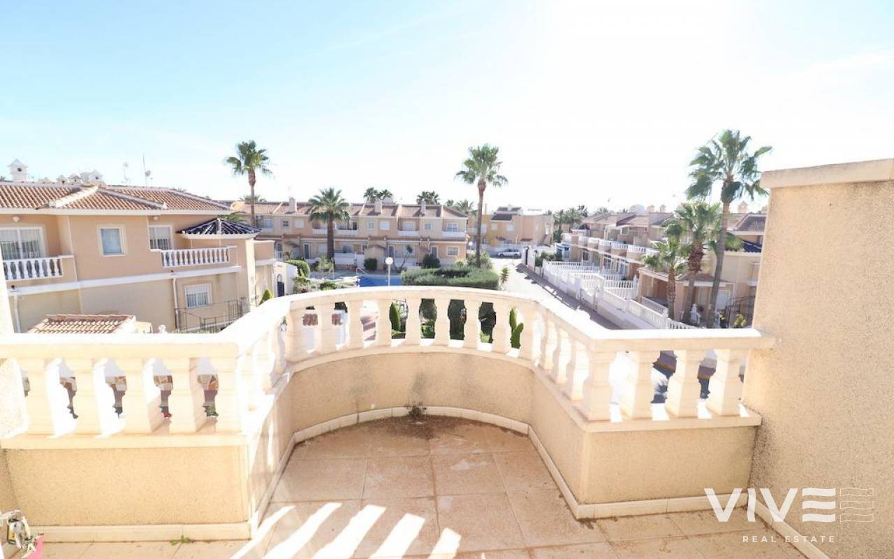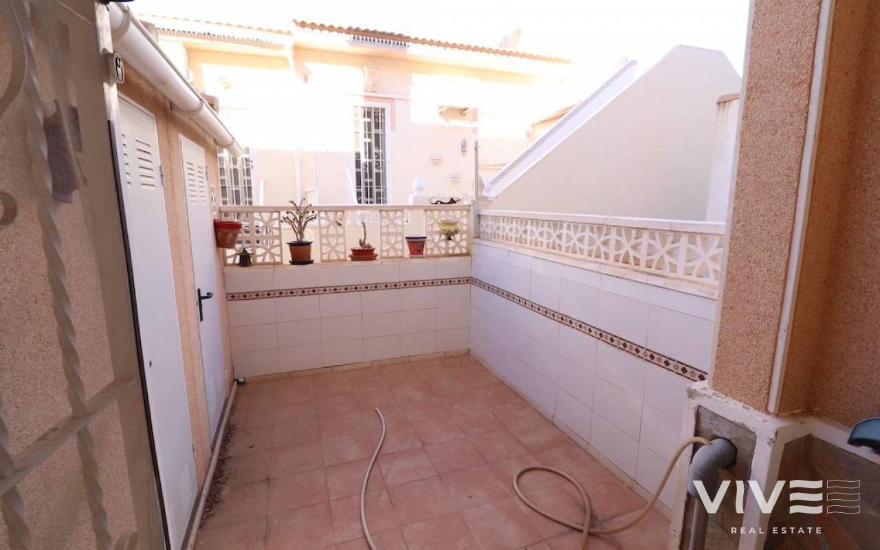 Doña Pepa in Ciudad Quesada, Duplex of 80 m2 and south orientation with 2 bedrooms upstairs, from the main room you have access to a large terrace with views of the green area and the community pool, bathroom, toilet, separate kitchen with backyard with 2 storage rooms, large living room, the house has a glazed terrace and a 30 m2 paved garden, the house is sold furnished and equipped. It is located very close to the Hotel La Laguna.