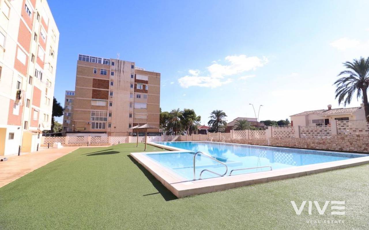 La Zenia on the sea side apartment just 250 meters from the beach 84 m2 house with 3 bedrooms, bathroom, toilet, large living room with separate kitchen, storage room and large glazed terrace, the residence has a large green area and community pool , the house is sold furnished and with air conditioning. Opportunity for investors and to be able to rent it.