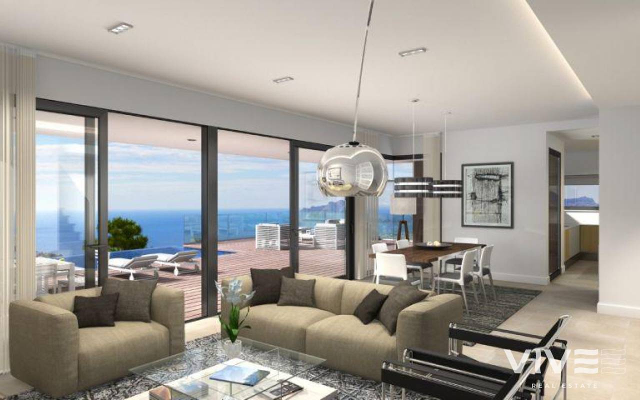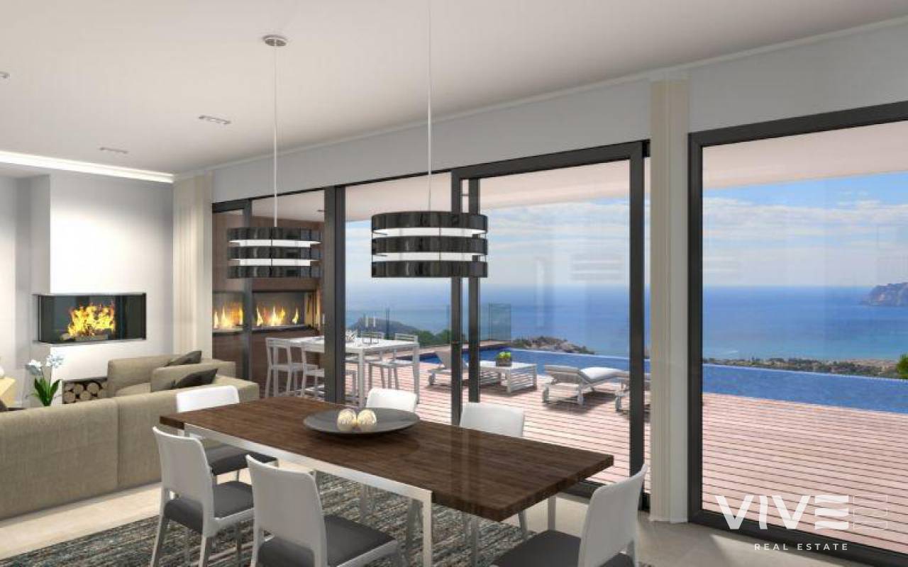 LUXURY VILLA IN EXCLUSIVE URBANIZATION This villa is designed to enjoy the fantastic sea views, the climate and the light of the Mediterranean. With large windows that let in the light and warmth of the sun, dining room and outside living room with fireplace and several terraces to sunbathe and enjoy outdoors. It has 3 bedrooms all with en suite bathroom, the master bedroom as well as a spacious en suite bathroom with bath and shower, also has dressing room and private terrace.The main floor consists of a large kitchen with a central island with the area of fires and breakfast bar, laundry room, pantry and access to both the outside dining room and the interior. Large living room with fireplace, a TV/cinema room, summer dining room and a cozy relaxation area with fireplace, a large terrace on which is situated the infinity pool, composed of various atmospheres to enjoy the sunny days provided by the Mediterranean climate. On the ground floor there is a leisure room with a large private terrace.The property is fully fenced, has covered parking for two vehicles and a studied interior design and landscaping project that allow adapting it to the tastes and needs of its owners, a luxury villa unique in the Costa Blanca Norte. The villa have: Private plot and fenced, Garden, Swimming pool, Parking, Decoration project with technical lighting, Heating by underfloor heating, Preinstallation Ducted air conditioning, Kitchen equipped with appliances: Integrated combined refrigerator, Independent multi-function oven with timer, Independent Touchcontrol hob, Decorative hood, Microwave for free installation Homes that enjoy all the services that a consolidated urbanization such as the Cumbre del Sol offers, with a shopping area with supermarket, hairdresser, pharmacy, bars and restaurants, Lady Elizabeth Junior School and a diverse range of sports with tennis and paddle courts, hiking trails, horse riding centre, beach and bays with beach bars.