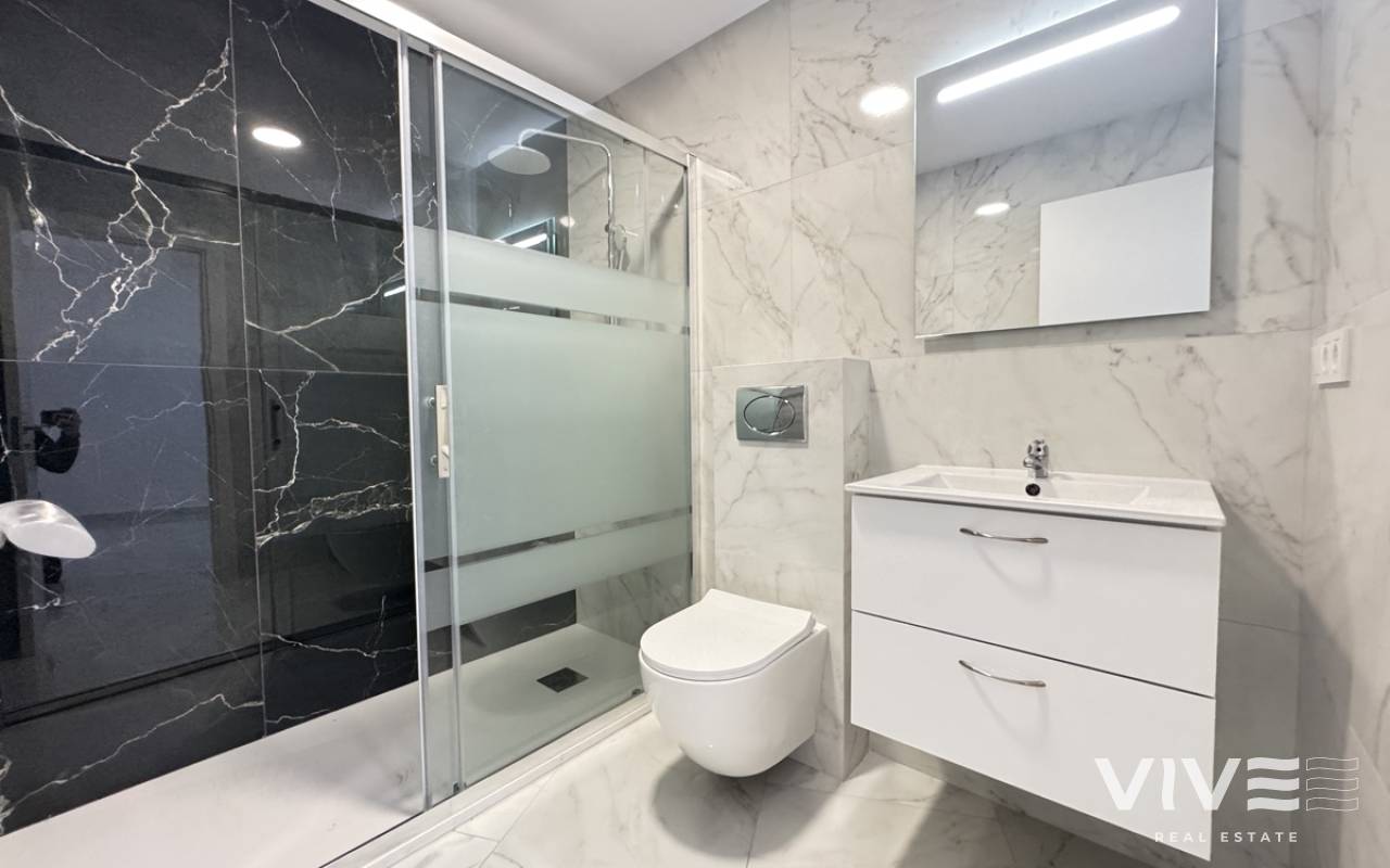 A unique 2 Bedrooms, 2 Bathroom Duplex Apartment with roof top solarium in a prestigious residential complex. With a large swimming pool and fully enclosed area and only 150m from Los Locas beach. The apartments are equipped with air conditioning, built in kitchen, bathroom and separate store cupboard. Viewings highly recommended.