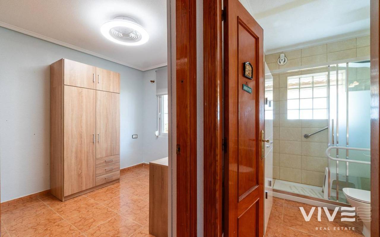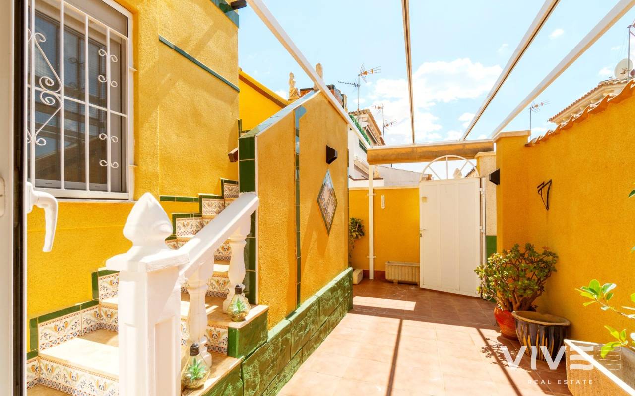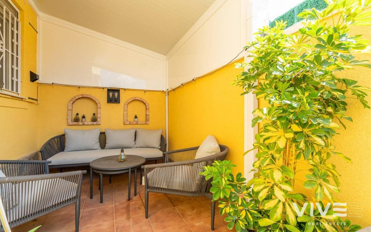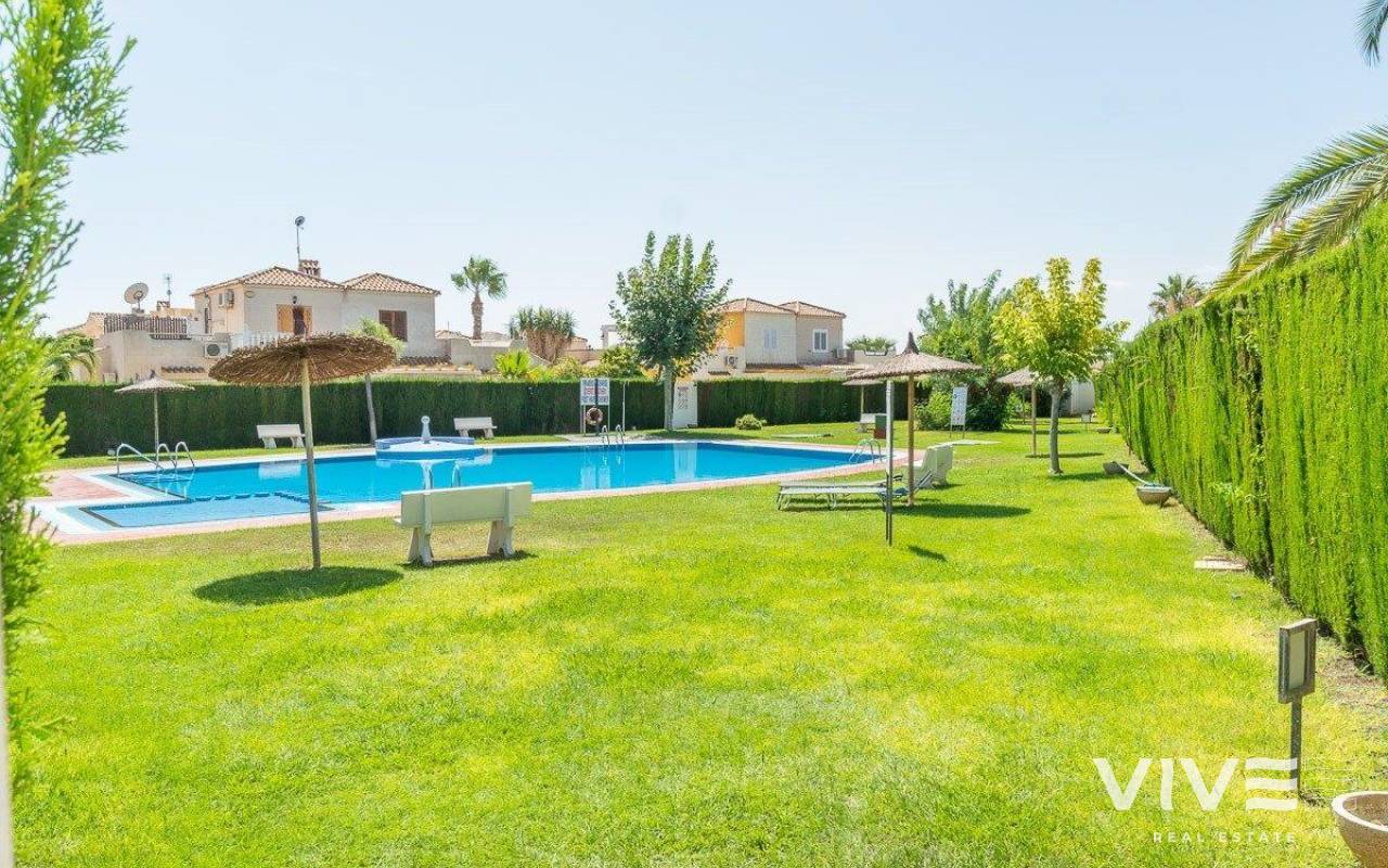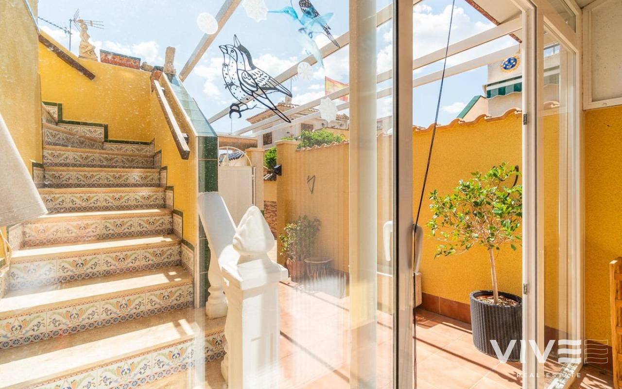 This charming townhouse in Playa Flamenca is a haven of peace and comfort, where every day feels like a holiday by the sea. Located in a well-maintained and peaceful community, it is less than 500 meters from the beaches of Playa Flamenca and the coves of La Mosca, where the sound of the waves creates a perfect setting.. . Just a short walk away, La Mosca Shopping Center and La Zenia Boulevard offer everything you need: shops, restaurants with diverse flavors, supermarkets, and essential services. And as the evening falls, the nearby bars and terraces invite you to enjoy the best Mediterranean atmosphere.. . Inside the house, natural light fills every space, creating a cozy and serene ambiance. Its private garden is a small paradise, featuring a charming wooden house that adds warmth and character. The solarium includes a glass-enclosed room, a versatile space ideal as a chill-out area or a third bedroom, perfect for unwinding and feeling the sea breeze.. . Nights here are special, filled with laughter and conversation around the barbecue on the terrace, sharing unforgettable moments with family and friends. And when the heat rises, the community pool with large green areas becomes the perfect place to cool off and relax.. . A home designed for those seeking quality of life, tranquility, and the beauty of the Mediterranean just around the corner. A place where every sunrise brings new experiences and memories to cherish.. .