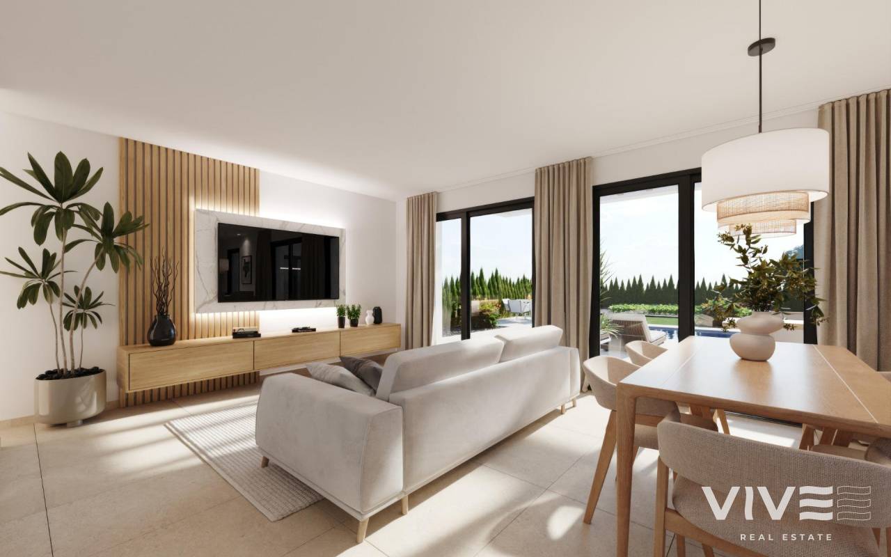 New Build Villas in Hacienda del Álamo Golf Resort, Murcia Modern Homes in an Exclusive Natural Setting Discover these fantastic new-build villas in the prestigious Hacienda del Álamo Golf Resort, a gated community in the region of Murcia that combines tranquillity, security and a full range of services. Surrounded by nature and blessed with a privileged climate, this complex is ideal for those seeking a relaxed lifestyle without sacrificing comfort. 3-bedroom villas on one floor with solarium The residential complex consists of 15 villas on plots starting at 550 m². All homes have 3 bedrooms and 2 full bathrooms on one floor, as well as a terrace area with a private pool and a private solarium on the roof with views of the golf course. High-quality finishes and guaranteed comfort The homes are designed with high-quality materials and built to offer energy efficiency and well-being: Exterior carpentry with thermal break Hot water via aerothermal system Pre-installation of ducted air conditioning Private pool Independent irrigation water system with storage tank and individual pressure pump, with irrigation outlets in the carport and garden. Motorised vehicle access gate. A Resort with Full Services and Golf Course Hacienda del Álamo is one of the most complete complexes on the Costa Cálida. It has: 18-hole professional golf course Hotel with spa Supermarket Restaurants and bars Sports courts and green areas 24-hour security The development recreates the atmosphere of a traditional Mediterranean village, with quiet streets and a careful design. Strategic Location Close to Everything Murcia International Airport (Corvera): 20 km Additional golf courses: less than 10 km Cartagena: 35 km Mar Menor beaches: 30 km Espacio Mediterráneo shopping centre: 28 km Port of Mazarrón: 40 km Live in style on the Costa Cálida These villas represent an excellent opportunity to live or invest in one of the most promising areas of Murcia. Contact us now and discover your next home at Hacienda del Álamo Golf Resort.