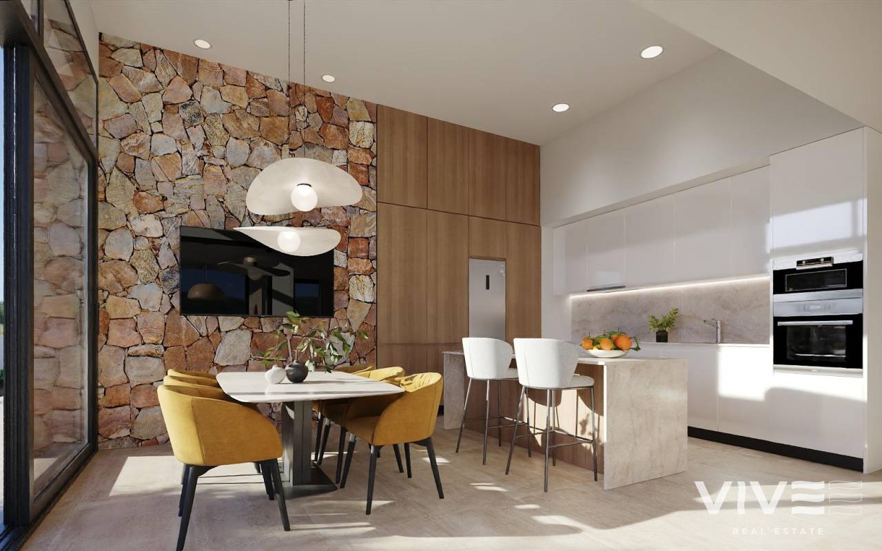 New Build Villas in Hacienda del Álamo Golf Resort, Murcia Modern Homes in an Exclusive Natural Setting Discover these fantastic new-build villas in the prestigious Hacienda del Álamo Golf Resort, a gated community in the region of Murcia that combines tranquillity, security and a full range of services. Surrounded by nature and blessed with a privileged climate, this complex is ideal for those seeking a relaxed lifestyle without sacrificing comfort. 3-bedroom villas on one floor with solarium The residential complex consists of 39 villas on plots starting at 436 m². All homes have 3 bedrooms and 2 full bathrooms on one floor, as well as a terrace area with a private pool and a private solarium on the roof with views of the golf course. High-quality finishes and guaranteed comfort The homes are designed with high-quality materials and built to offer energy efficiency and well-being: Exterior carpentry with thermal break Hot water via aerothermal system Pre-installation of ducted air conditioning Private pool Independent irrigation water system with storage tank and individual pressure pump, with irrigation outlets in the carport and garden. Motorised vehicle access gate. A Resort with Full Services and Golf Course Hacienda del Álamo is one of the most complete complexes on the Costa Cálida. It has: 18-hole professional golf course Hotel with spa Supermarket Restaurants and bars Sports courts and green areas 24-hour security The development recreates the atmosphere of a traditional Mediterranean village, with quiet streets and a careful design. Strategic Location Close to Everything Murcia International Airport (Corvera): 20 km Additional golf courses: less than 10 km Cartagena: 35 km Mar Menor beaches: 30 km Espacio Mediterráneo shopping centre: 28 km Port of Mazarrón: 40 km Live in style on the Costa Cálida These villas represent an excellent opportunity to live or invest in one of the most promising areas of Murcia. Contact us now and discover your next home at Hacienda del Álamo Golf Resort.