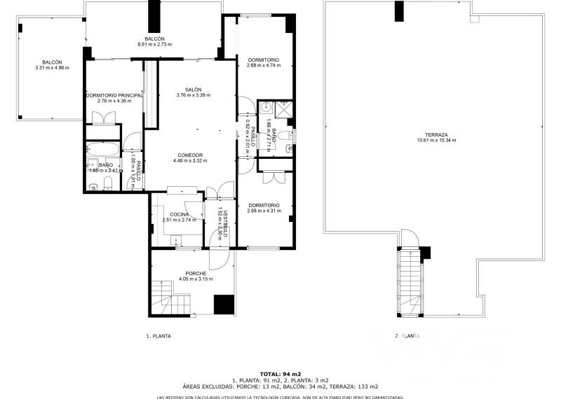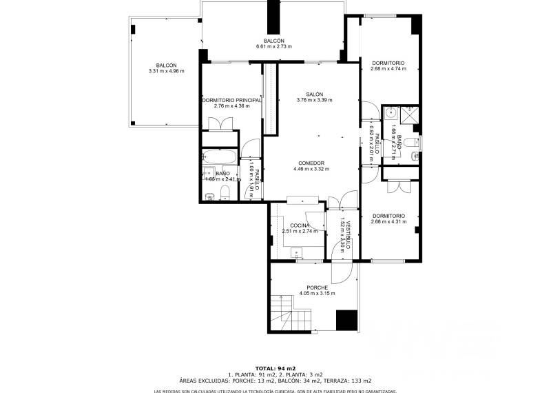 With a built area of 135 m², this penthouse offers a practical and bright layout: