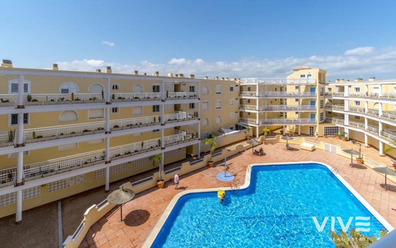 Fantastic apartment with panoramic sea views on the seafront. Located in one of the most beautiful areas of Orihuela Costa, Dehesa de Campoamor. Located on the third floor, facing south. The 100m2 apartment has three bedrooms, two full bathrooms, a separate, equipped kitchen, a living-dining room, and a 12m2 terrace. Air conditioning is installed in the living room and master bedroom. Sold partially furnished. This residential complex with a pool is located just above Aguamarina and Campoamor beaches, with direct private access to the beach. The apartment also includes a parking space.