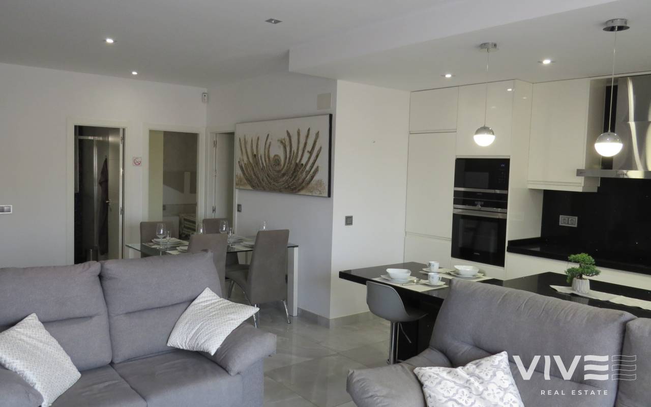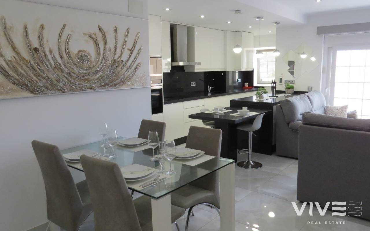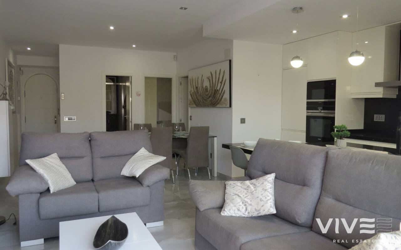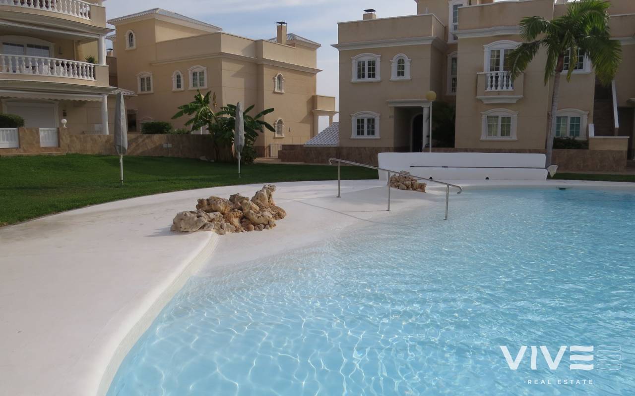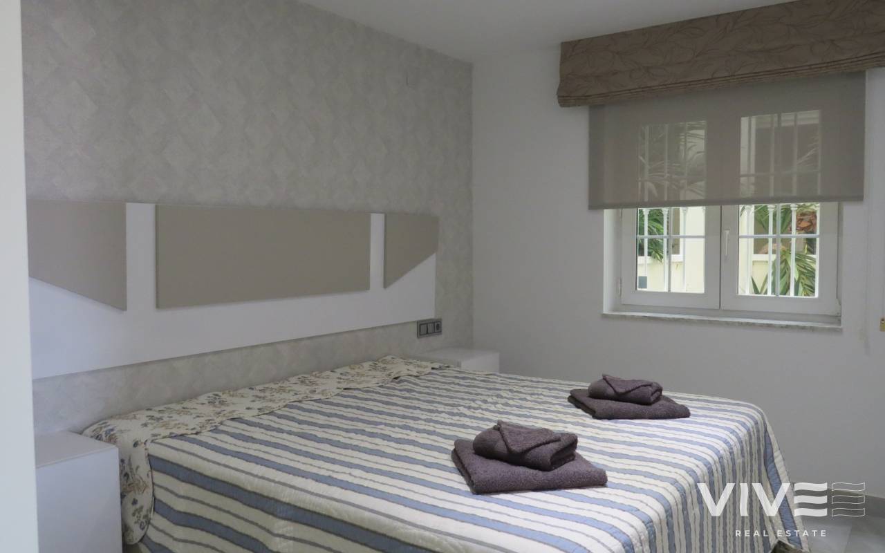 This modern flat is located in the Campomar neighbourhood, Guardamar del Segura. This neighbourhood is known for its quiet area close to the centre and the sea. Guardamar del Segura is a town where you will find all the amenities you need for the perfect holiday or for living. There are plenty of restaurants, specialty shops, food shops, a beautiful walking park, a port etc... there is no shortage of beautiful sandy beaches here either! Also, with its central location, this location also has quick access to several nice cities, nature reserves, golf courses, shopping centres and numerous other attractions. The flat itself is located in an urbanisation ‘Pórtico mar’ that gives the feeling of tranquillity and luxury! With its beautifully maintained gardens and swimming pools, you will feel at home here in NO-TIME. The flat itself has a cosy terrace with beautiful sea views and views of the communal gardens. There is a spacious living/living room with open kitchen, a master bedroom, a nice bathroom with walk-in shower and a2nd bedroom. As extras, this flat enjoys a lift, air conditioning (hot/cold), electric shutters in the living room, 24/7 surveillance, built-in wardrobes and is sold furnished. There is a possibility to buy the underground garage space APART for the PRICE OF 14,000 euros. Contact us soon to visit this beautiful property under the Spanish sun! Suma: 378 euros/year Community fees: 2028 euros/year