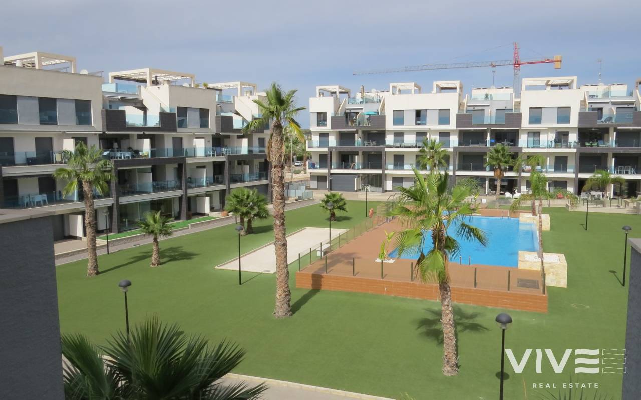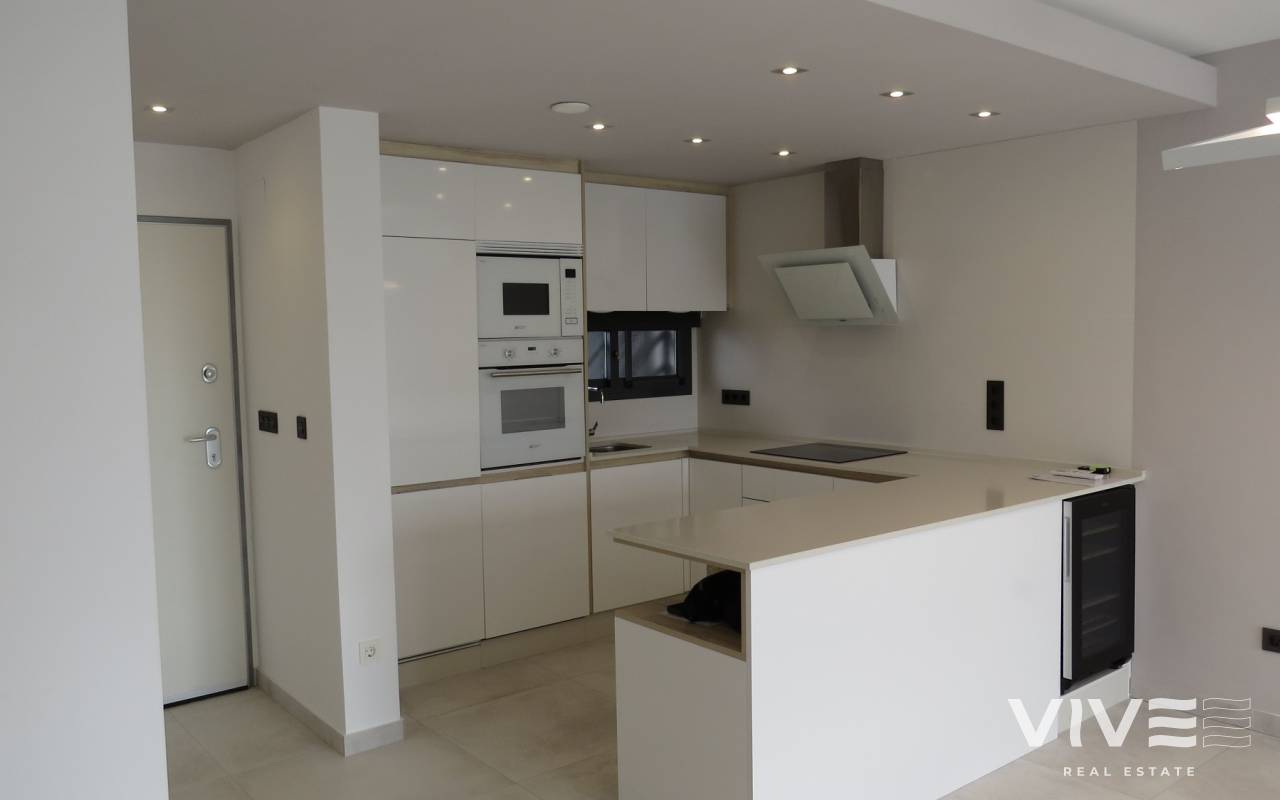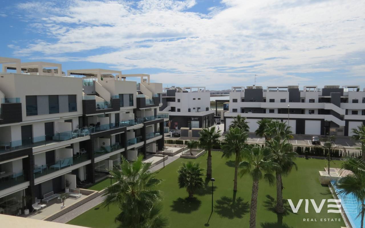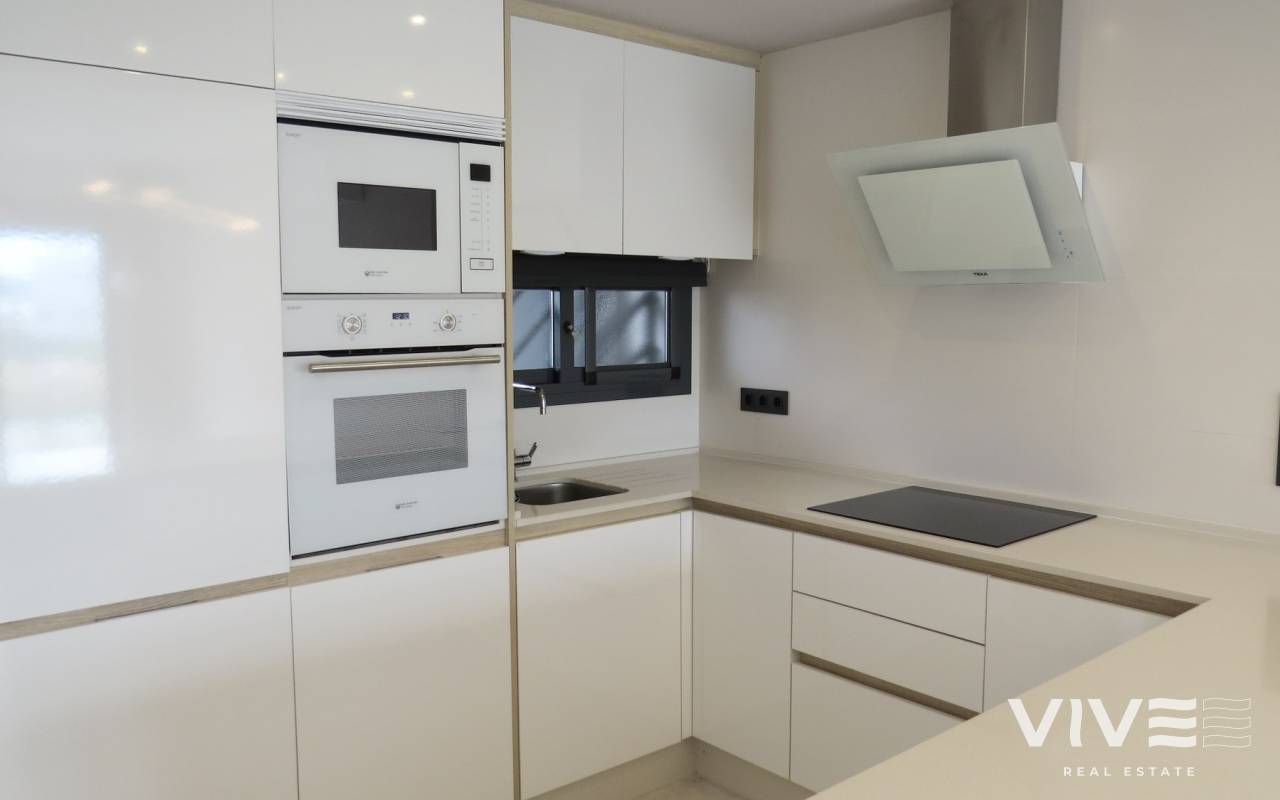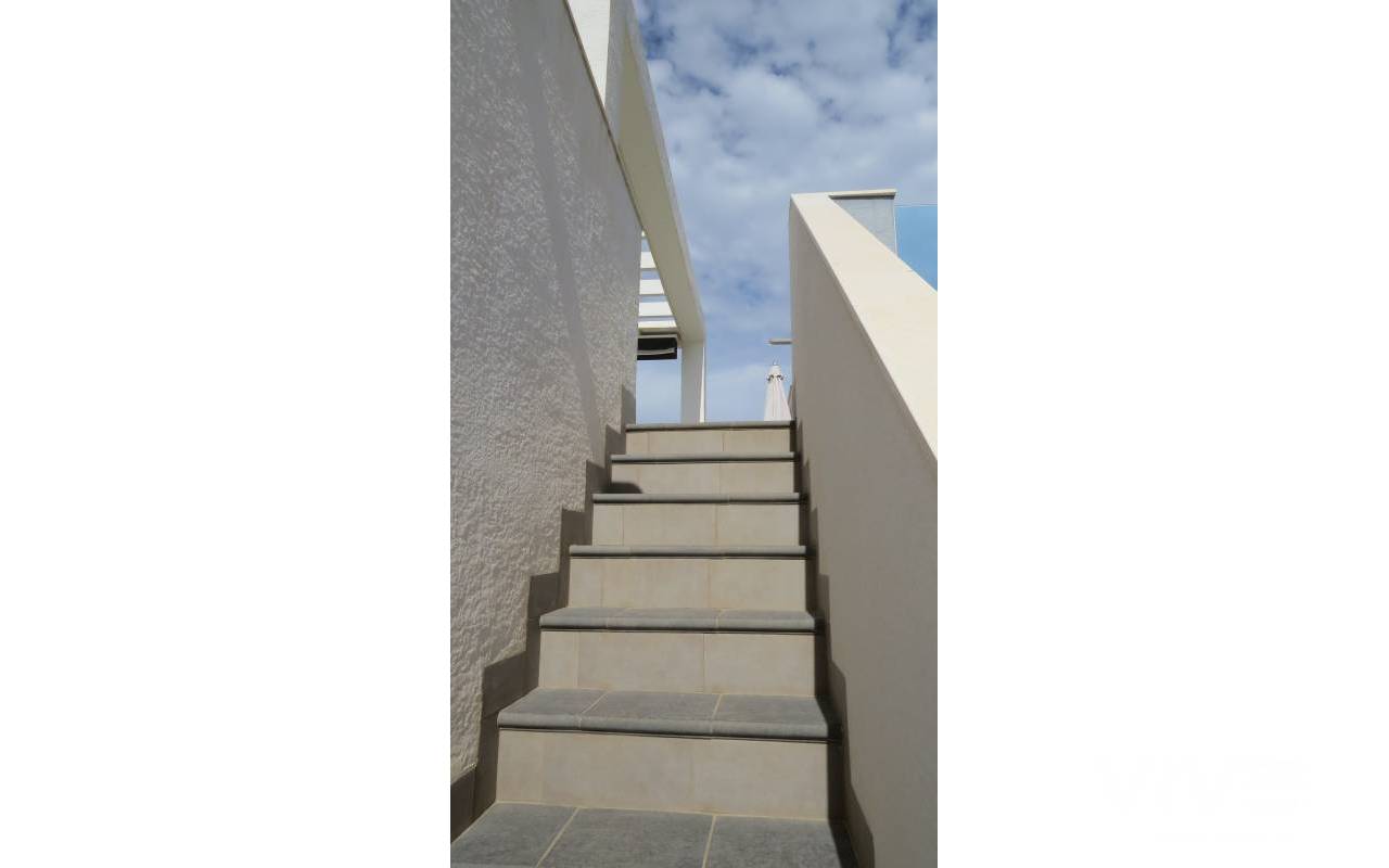 This spacious penthouse is located in a modern residential area in ‘El Raso’. An area known for its peaceful location close to everything you need for the perfect holiday or for permanent living. In the immediate vicinity you will find the beautiful sandy beaches of Guardamar del Segura, many nature reserves, the salt lakes of La Mata and Torrevieja, lots of cycling and walking potential, several golf courses and other towns, each with their own attractions. Shops, speciality stores, restaurants, cafes, shopping centres, etc. are all within easy reach. The urbanisation has a luxurious feel with its beautiful finish and numerous facilities. There are 2 large swimming pools, a playground for the little ones, a petanque court, table tennis, mini golf, a gym, sauna and jacuzzi, all available for use. There is also an underground car park for your car. The house itself is very well maintained and equipped with every comfort including energy-efficient air conditioning (hot/cold), a ventilation system, shutters and fly screens on all windows, fitted wardrobes, an electric awning with LED lighting, a wine fridge under the kitchen island and separate heating in the bathrooms. This house is divided into a spacious living room with open kitchen, 1 master bedroom with ensuite bathroom, 2 guest rooms and a family bathroom. There is certainly no lack of outdoor space either! There is a cosy terrace at the extension of the living room with fitted wardrobes for extra storage under the stairs leading to the large solarium. Here you will find a spacious outdoor kitchen and various seating areas to enjoy the Spanish climate. In addition, this property also offers curtains, garden furniture, indirect LED lighting in various places and a private jacuzzi, which are included in the price of the property. There is also the option to purchase a large storage room APPART for an ADDITIONAL PRICE. In short, a great opportunity to become the owner of your own place in the Spanish sun! Suma: 308 euros/year Community fees: 1400 euros/year