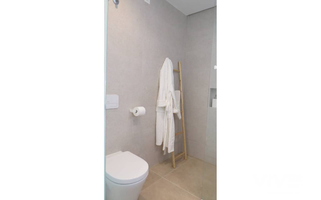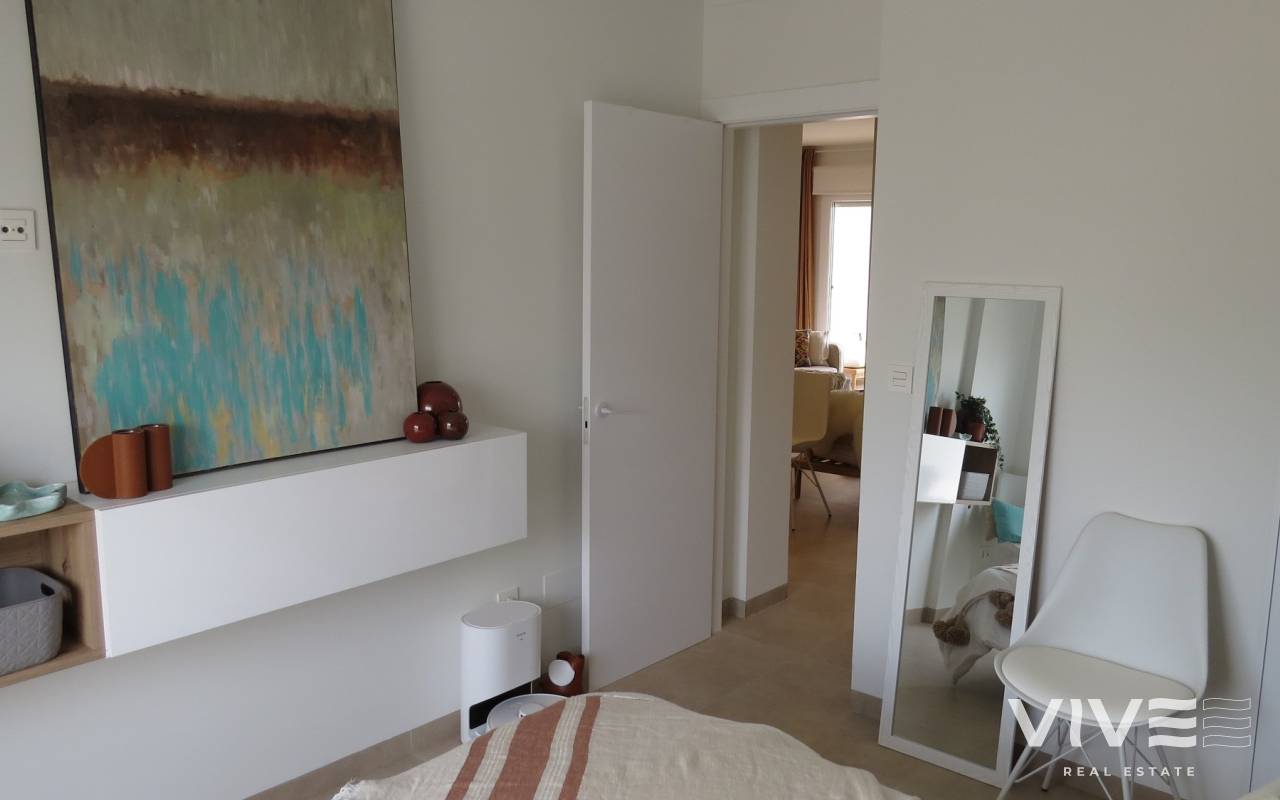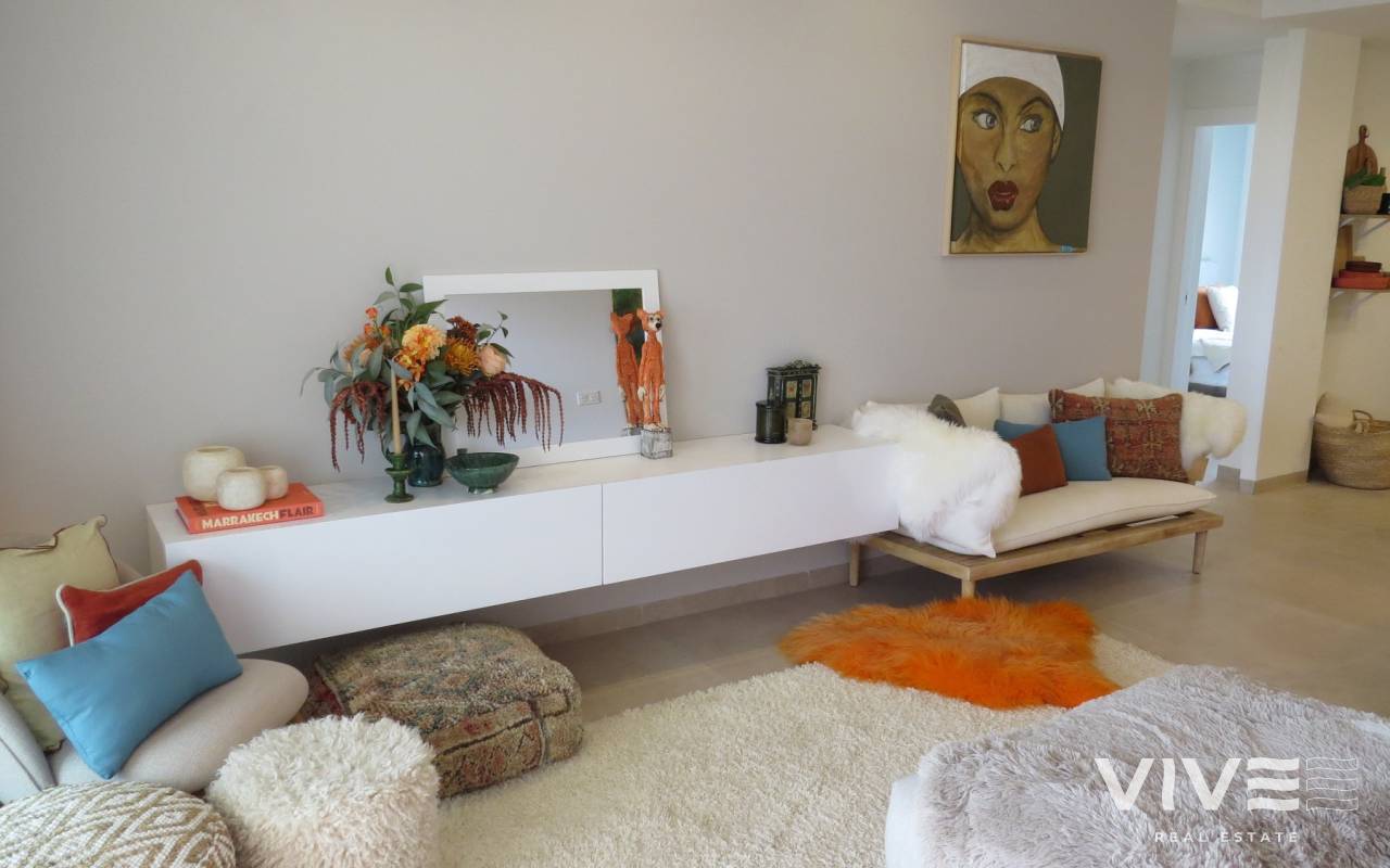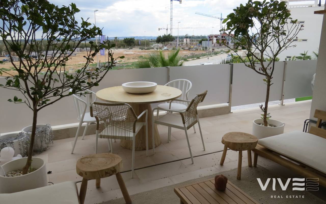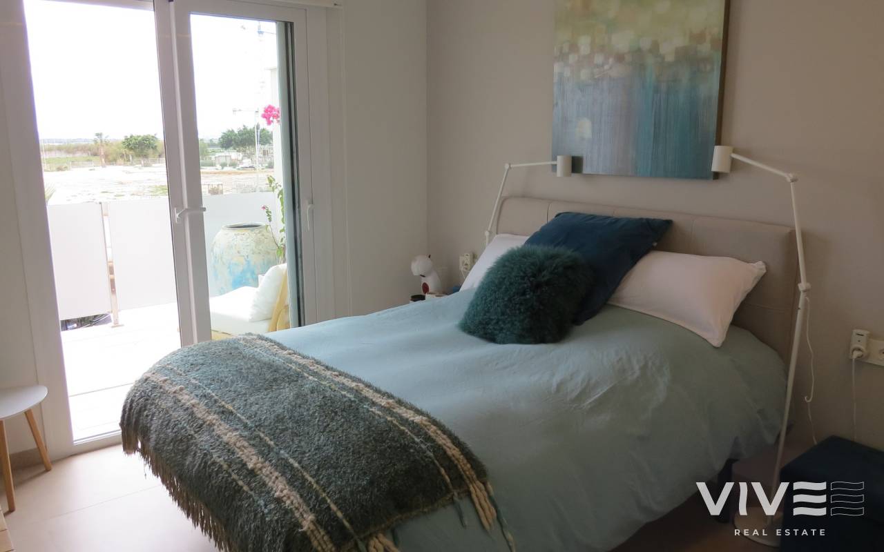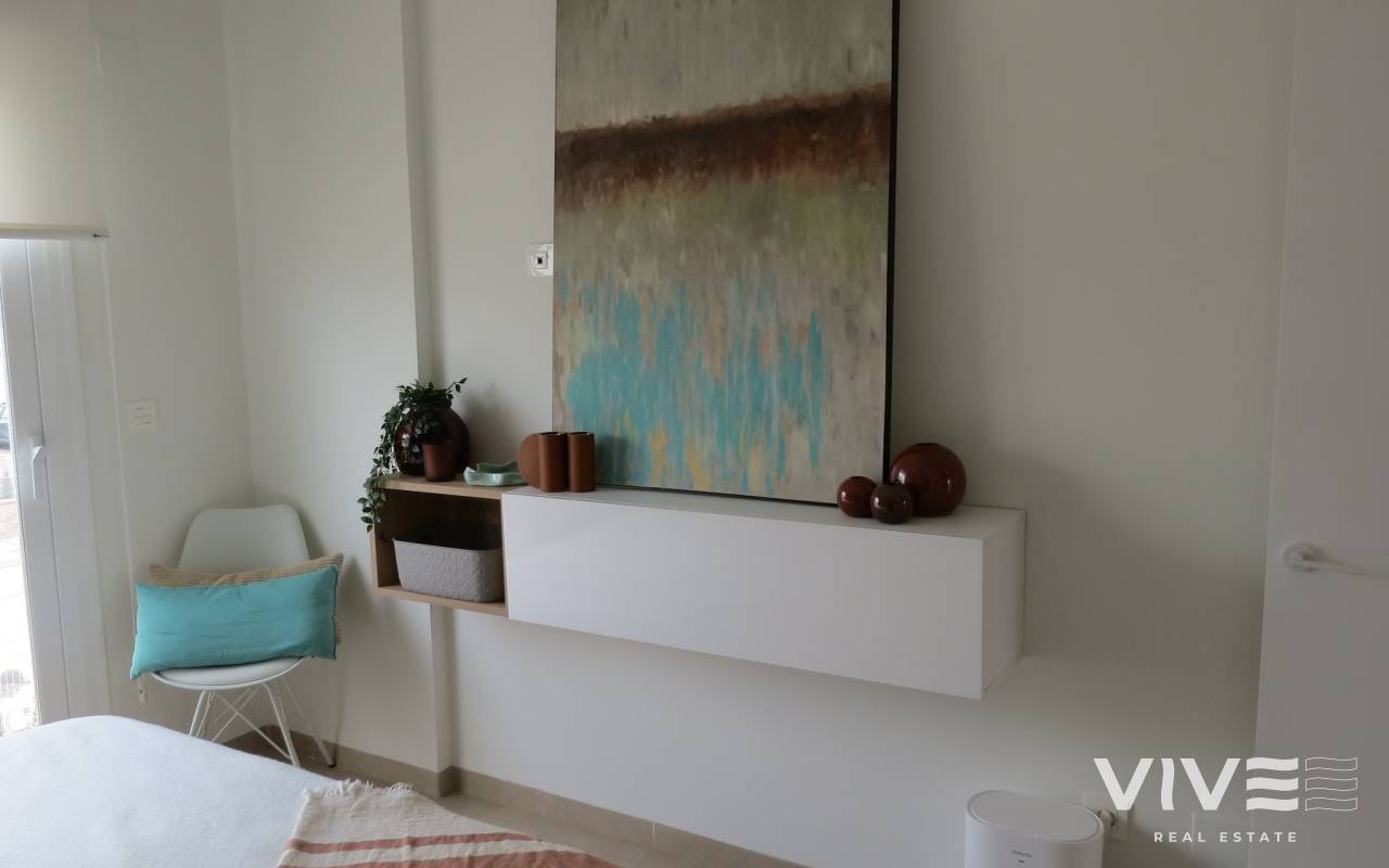 This recently built apartment is located in the quiet neighbourhood of El Raso, which is part of the popular seaside resort of Guardamar del Segura. The lively centre has numerous facilities such as shops, restaurants, bars, speciality shops and a beautiful nature park with a walking route that leads you to the charming harbour. This pleasant centre also offers a beautiful sandy beach. Its central location means you are not far from numerous other lovely cities, golf courses, shopping centres and so much more. It is the perfect combination for a wonderful sunny holiday or a permanent home. The housing estate where the apartment is located was built only recently and is truly a place to relax and unwind. It also has numerous extras that will give you a real feeling of luxury. The apartment itself is on the first floor and can be reached by stairs or lift. Upon entering, you are welcomed by a spacious living room with an open kitchen. From the living room, you have access to the cosy terrace with a view over the communal garden of the urbanisation. Furthermore, you will find the master bedroom with ensuite bathroom and access to the terrace, a family bathroom, second bedroom and a small storage/laundry room. This house has air conditioning (hot/cold), electric shutters, an intercom, electric sun awning, camera surveillance throughout the urbanisation and is being sold partly furnished. Don't hesitate and book a viewing quickly! Suma: (to be allocated) Community fees: 900 euros/year