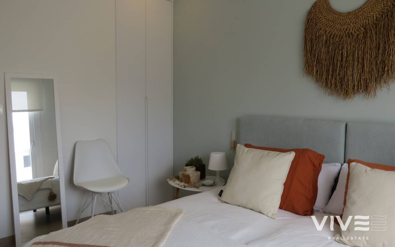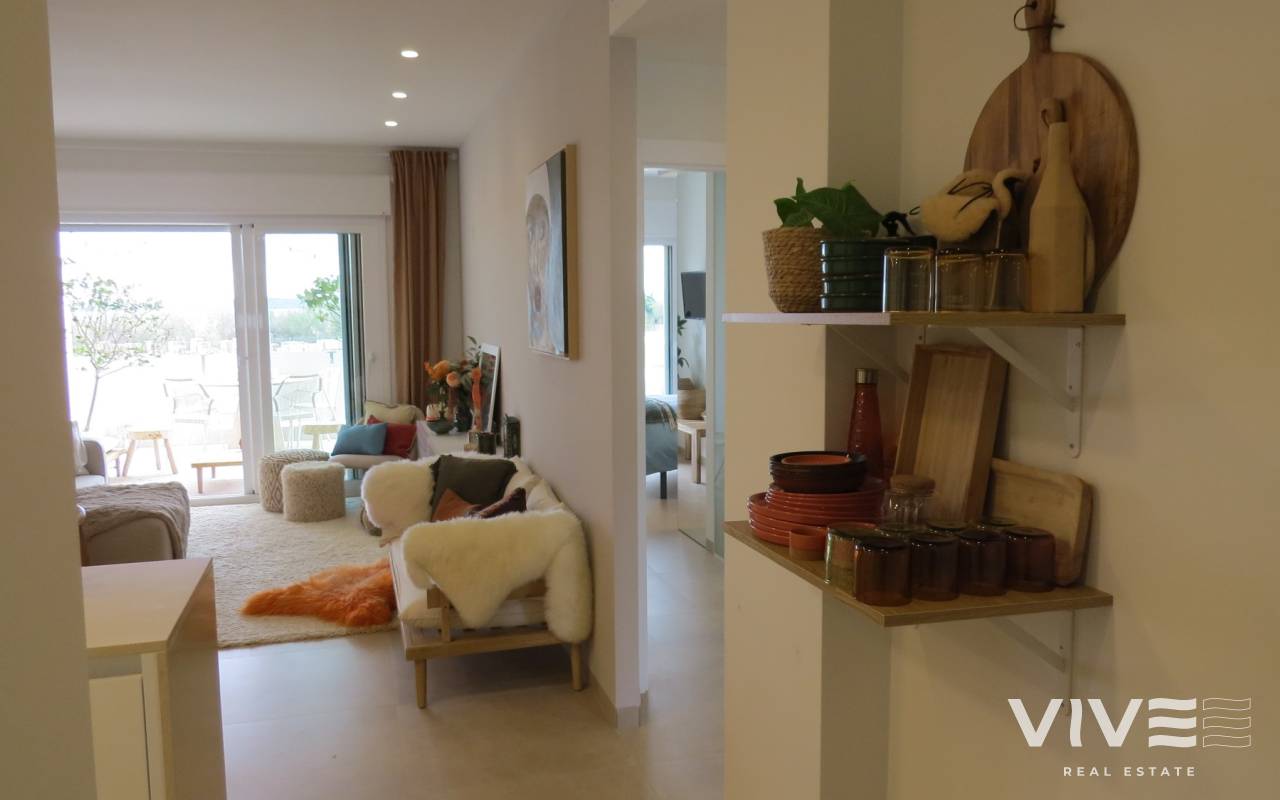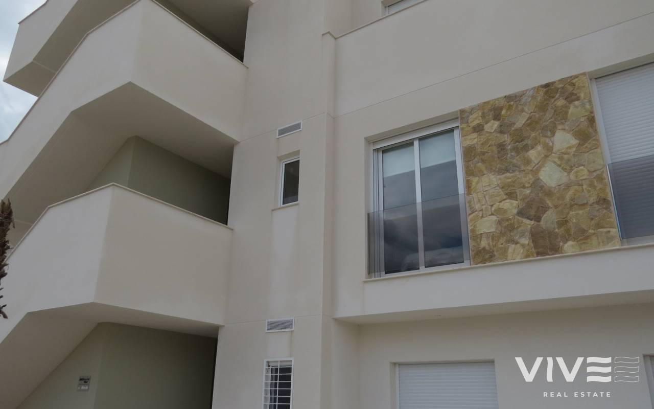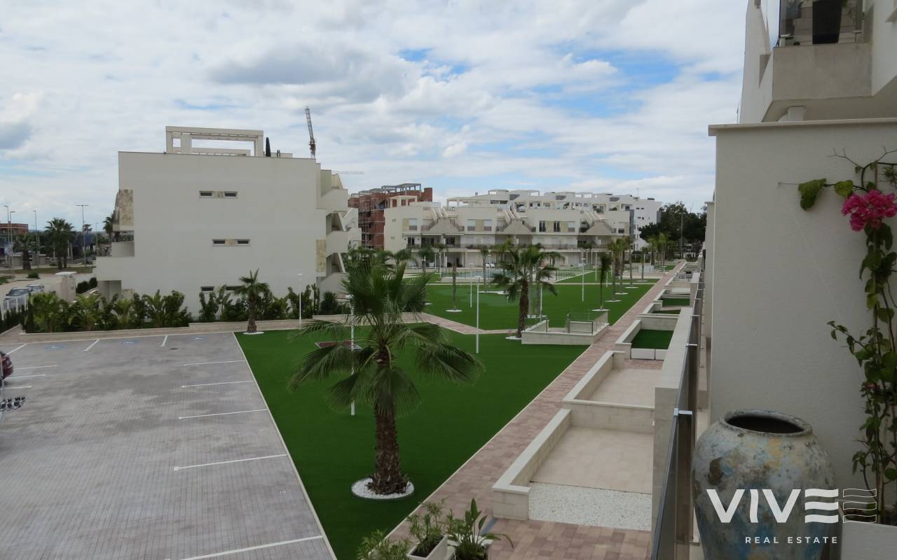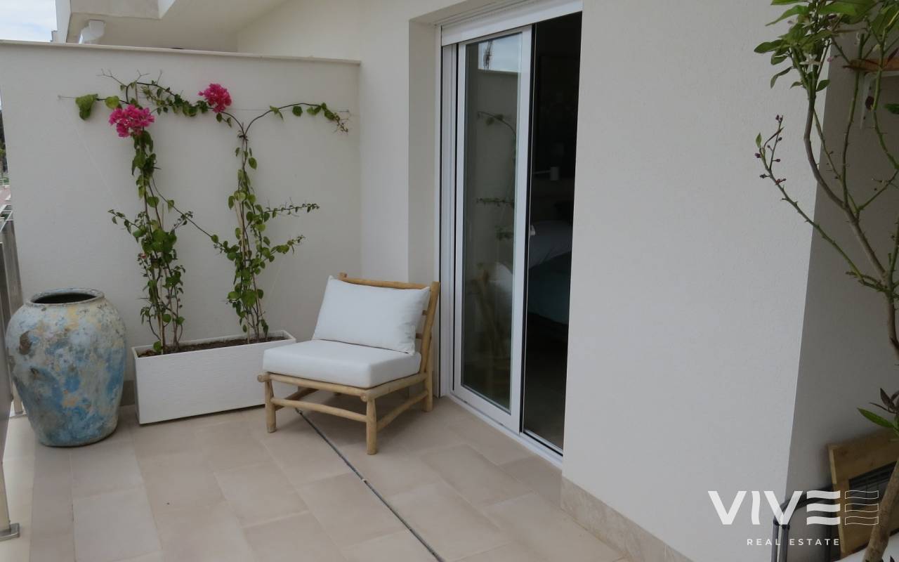 This recently built apartment is located in the quiet neighbourhood of El Raso, which is part of the popular seaside resort of Guardamar del Segura. The lively centre has numerous facilities such as shops, restaurants, bars, speciality shops and a beautiful nature park with a walking route that leads you to the charming harbour. This pleasant centre also offers a beautiful sandy beach. Its central location means you are not far from numerous other lovely cities, golf courses, shopping centres and so much more. It is the perfect combination for a wonderful sunny holiday or a permanent home. The housing estate where the apartment is located was built only recently and is truly a place to relax and unwind. It also has numerous extras that will give you a real feeling of luxury. The apartment itself is on the first floor and can be reached by stairs or lift. Upon entering, you are welcomed by a spacious living room with an open kitchen. From the living room, you have access to the cosy terrace with a view over the communal garden of the urbanisation. Furthermore, you will find the master bedroom with ensuite bathroom and access to the terrace, a family bathroom, second bedroom and a small storage/laundry room. This house has air conditioning (hot/cold), electric shutters, an intercom, electric sun awning, camera surveillance throughout the urbanisation and is being sold partly furnished. Don't hesitate and book a viewing quickly! Suma: (to be allocated) Community fees: 900 euros/year