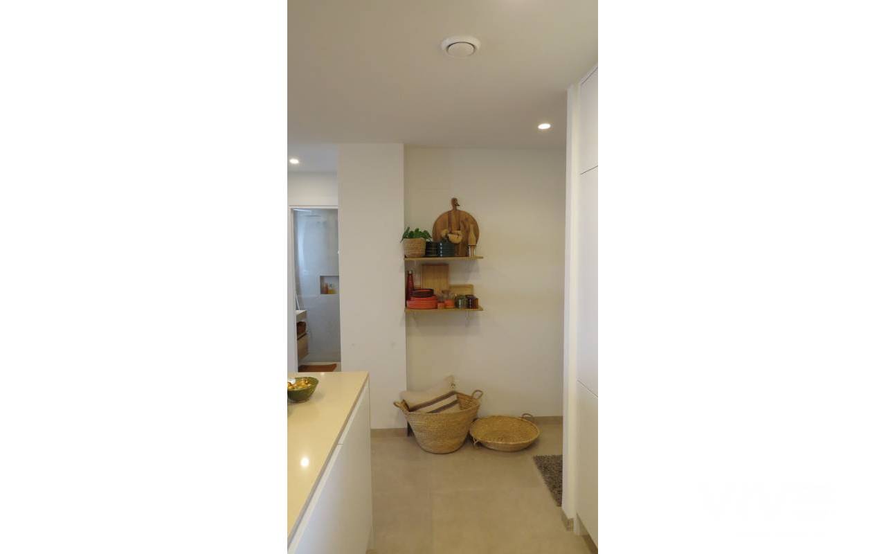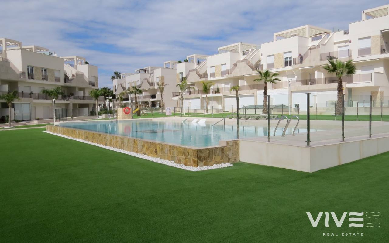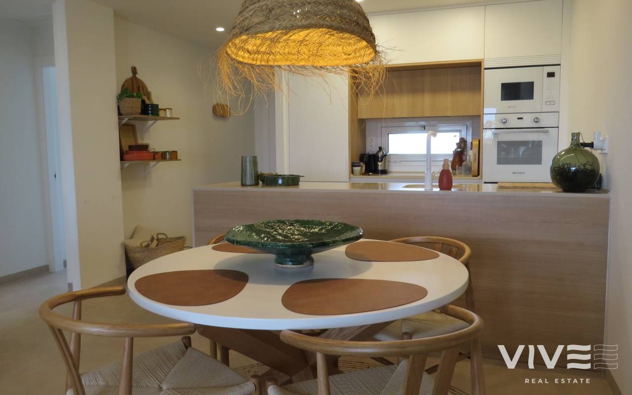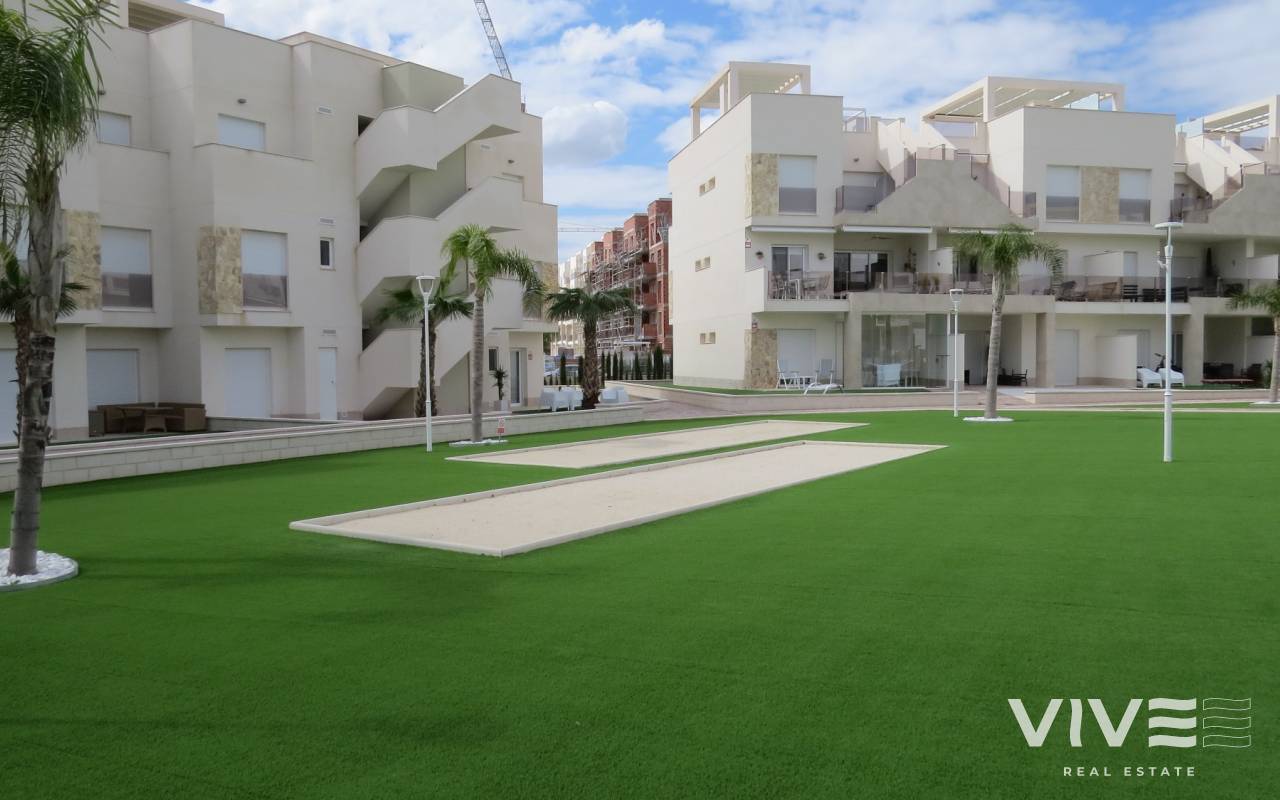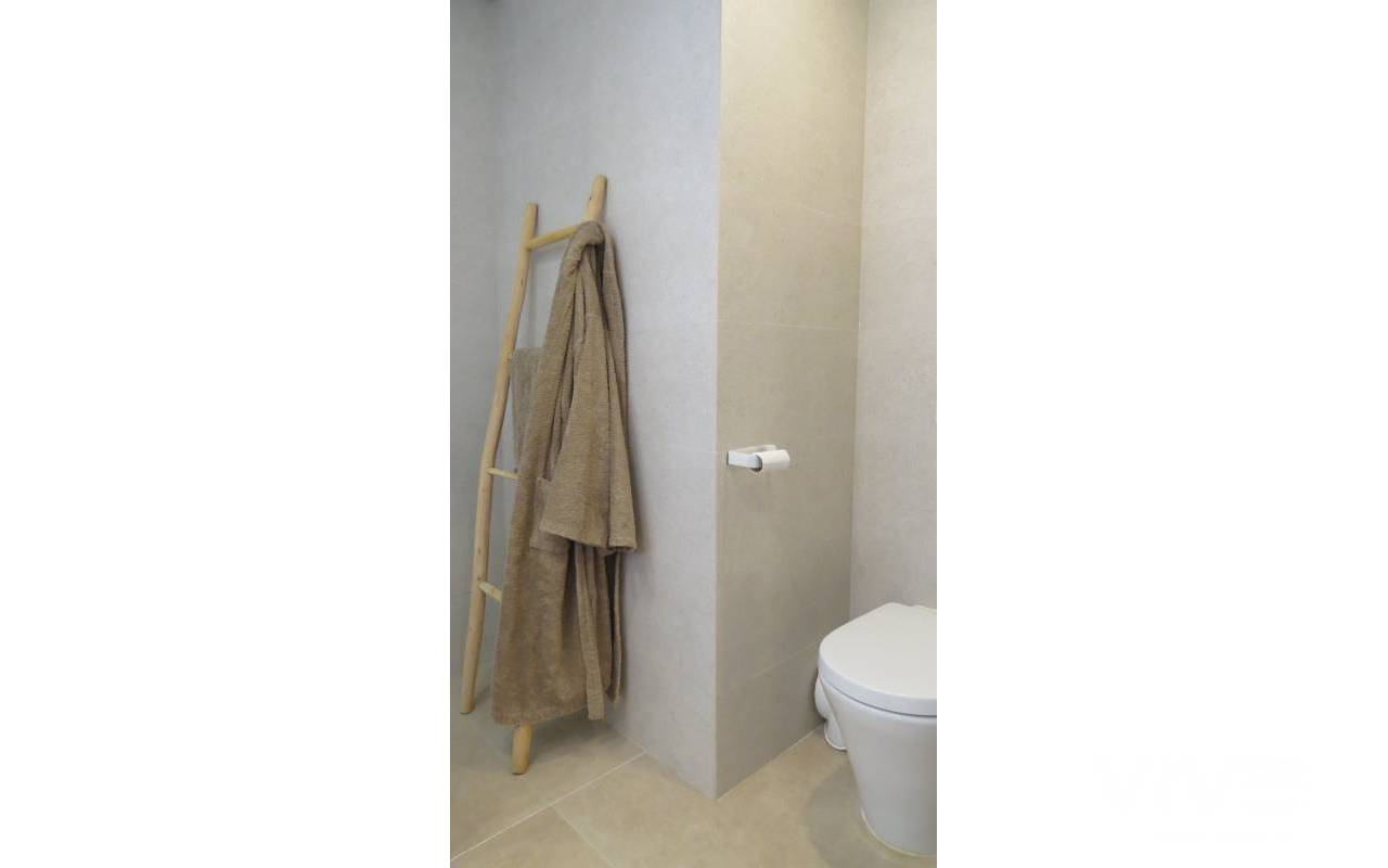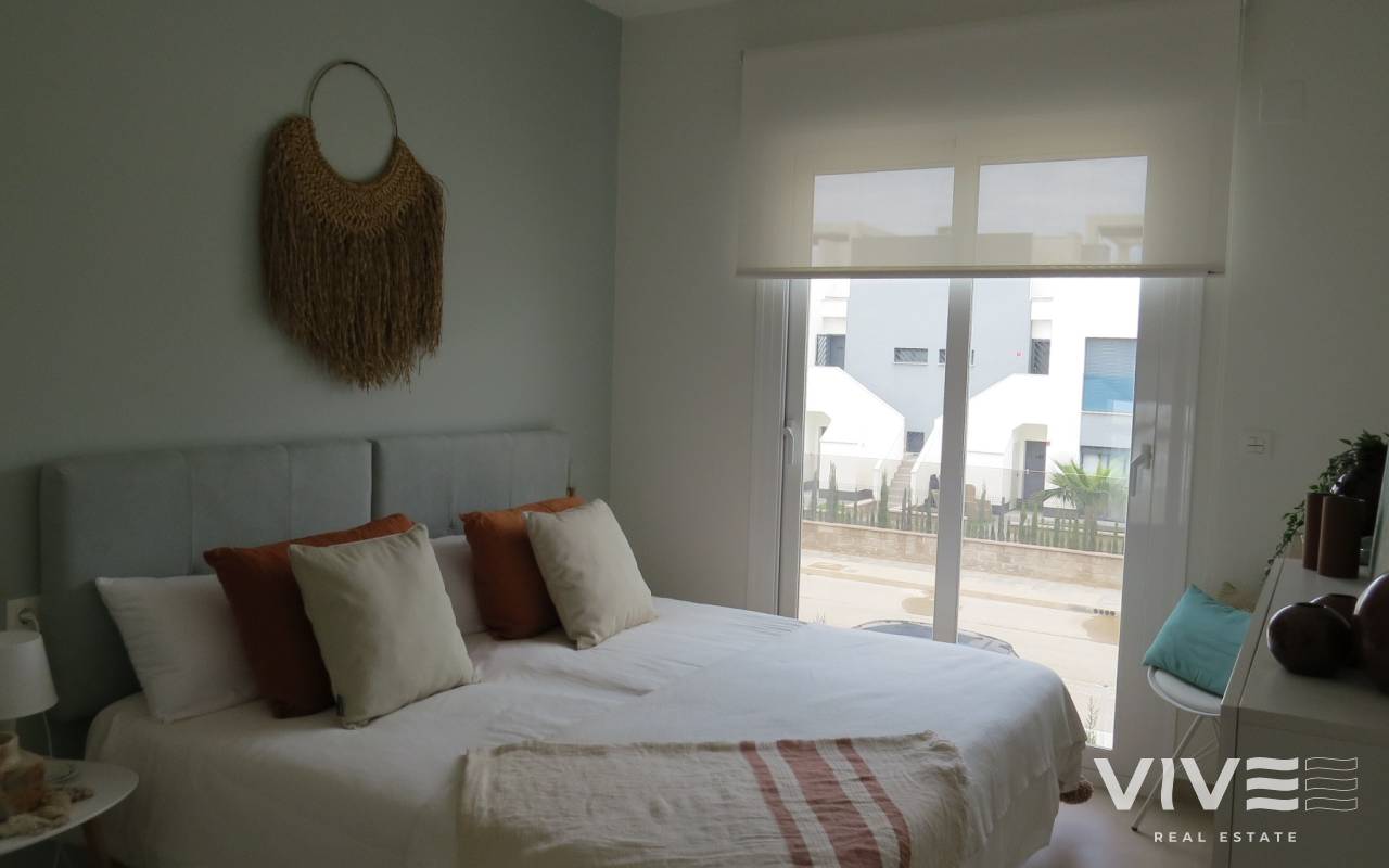 This recently built apartment is located in the quiet neighbourhood of El Raso, which is part of the popular seaside resort of Guardamar del Segura. The lively centre has numerous facilities such as shops, restaurants, bars, speciality shops and a beautiful nature park with a walking route that leads you to the charming harbour. This pleasant centre also offers a beautiful sandy beach. Its central location means you are not far from numerous other lovely cities, golf courses, shopping centres and so much more. It is the perfect combination for a wonderful sunny holiday or a permanent home. The housing estate where the apartment is located was built only recently and is truly a place to relax and unwind. It also has numerous extras that will give you a real feeling of luxury. The apartment itself is on the first floor and can be reached by stairs or lift. Upon entering, you are welcomed by a spacious living room with an open kitchen. From the living room, you have access to the cosy terrace with a view over the communal garden of the urbanisation. Furthermore, you will find the master bedroom with ensuite bathroom and access to the terrace, a family bathroom, second bedroom and a small storage/laundry room. This house has air conditioning (hot/cold), electric shutters, an intercom, electric sun awning, camera surveillance throughout the urbanisation and is being sold partly furnished. Don't hesitate and book a viewing quickly! Suma: (to be allocated) Community fees: 900 euros/year