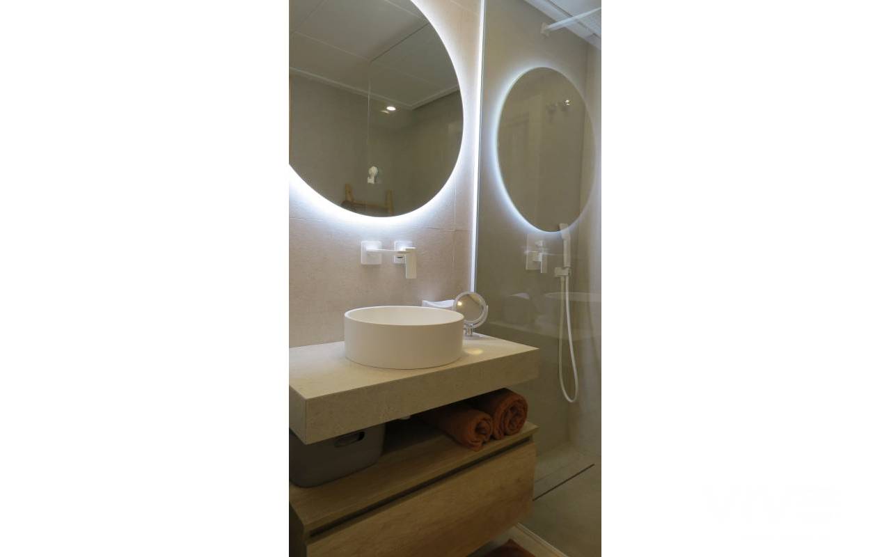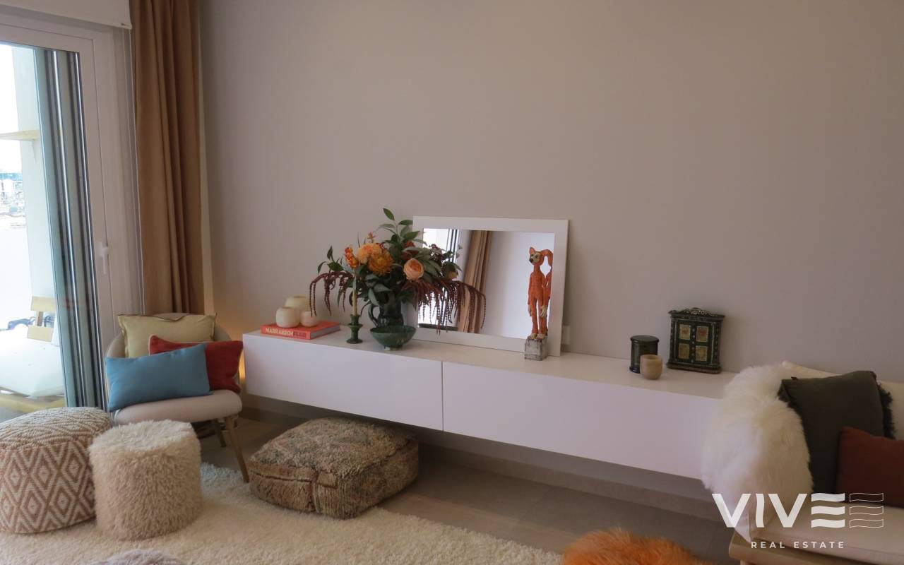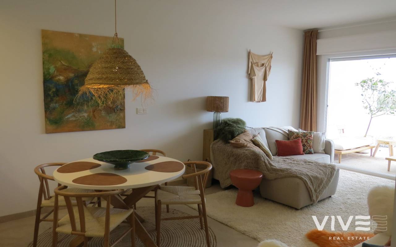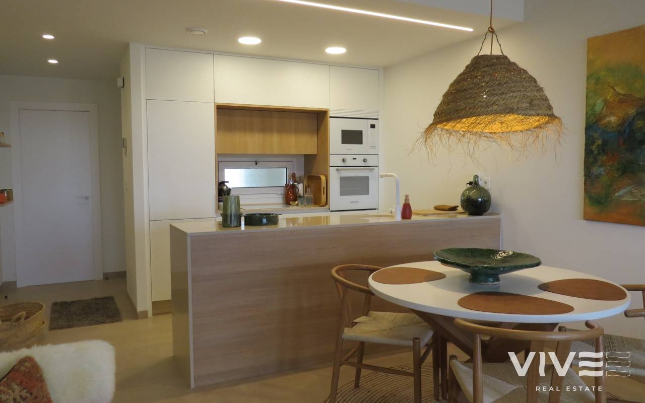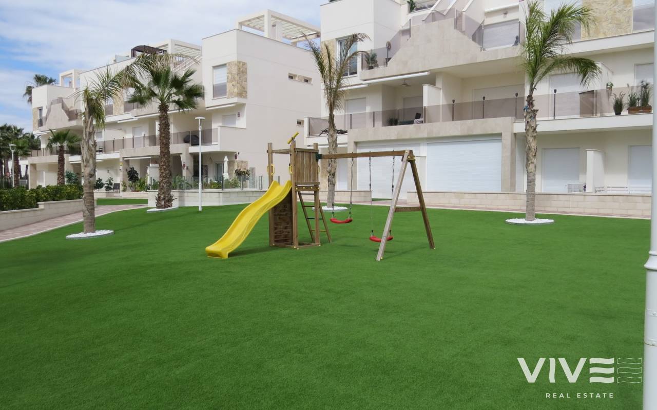 This recently built apartment is located in the quiet neighbourhood of El Raso, which is part of the popular seaside resort of Guardamar del Segura. The lively centre has numerous facilities such as shops, restaurants, bars, speciality shops and a beautiful nature park with a walking route that leads you to the charming harbour. This pleasant centre also offers a beautiful sandy beach. Its central location means you are not far from numerous other lovely cities, golf courses, shopping centres and so much more. It is the perfect combination for a wonderful sunny holiday or a permanent home. The housing estate where the apartment is located was built only recently and is truly a place to relax and unwind. It also has numerous extras that will give you a real feeling of luxury. The apartment itself is on the first floor and can be reached by stairs or lift. Upon entering, you are welcomed by a spacious living room with an open kitchen. From the living room, you have access to the cosy terrace with a view over the communal garden of the urbanisation. Furthermore, you will find the master bedroom with ensuite bathroom and access to the terrace, a family bathroom, second bedroom and a small storage/laundry room. This house has air conditioning (hot/cold), electric shutters, an intercom, electric sun awning, camera surveillance throughout the urbanisation and is being sold partly furnished. Don't hesitate and book a viewing quickly! Suma: (to be allocated) Community fees: 900 euros/year