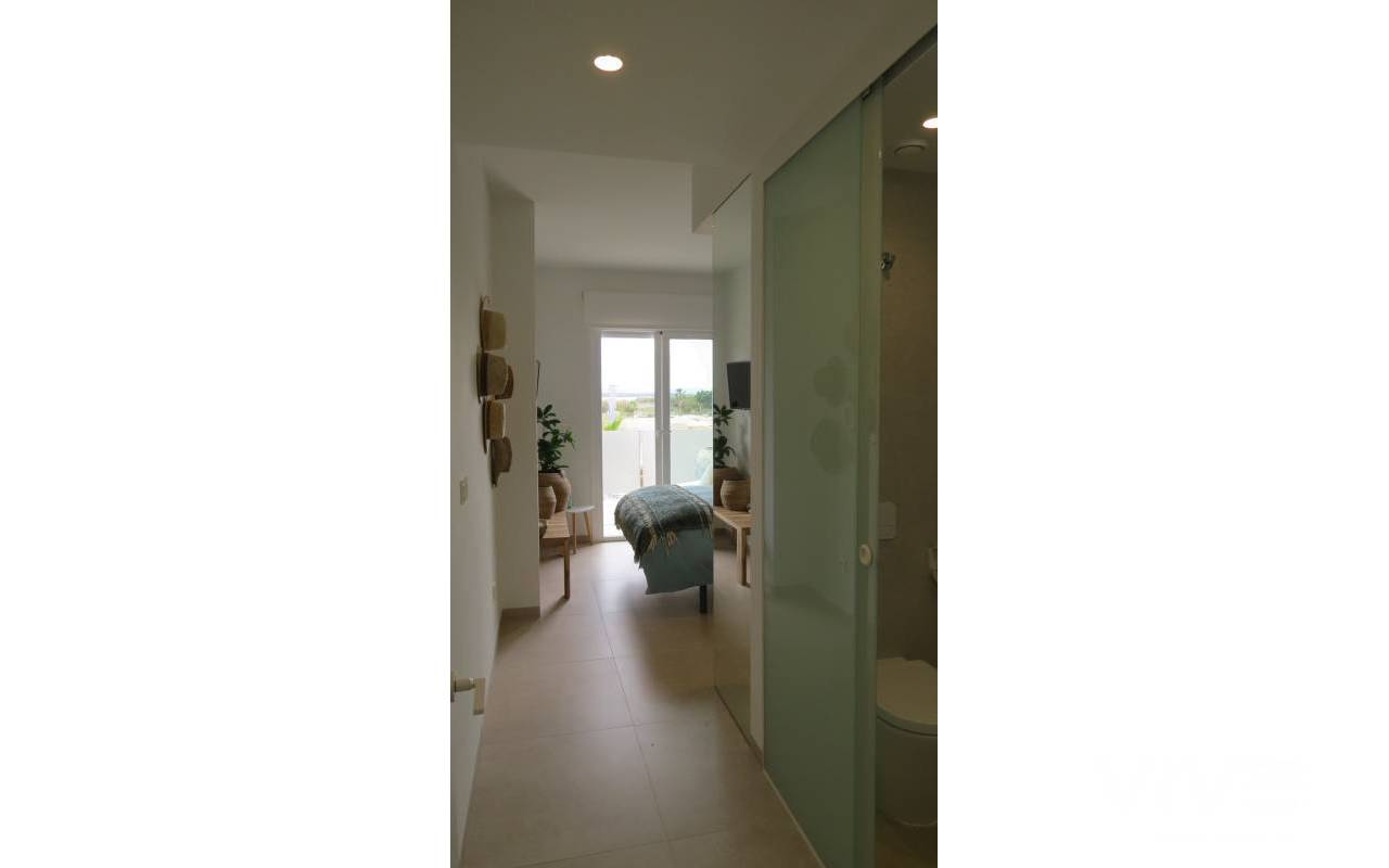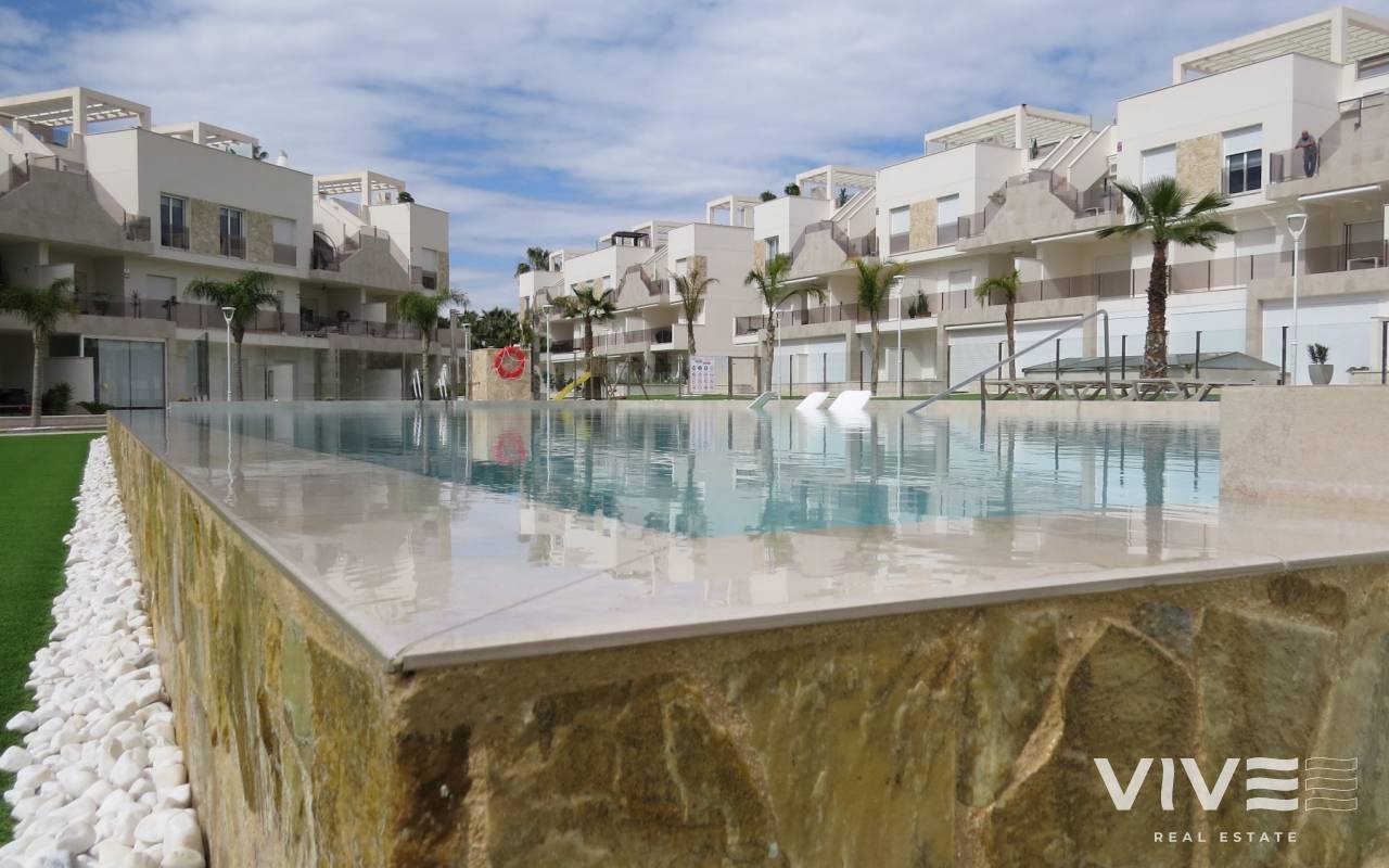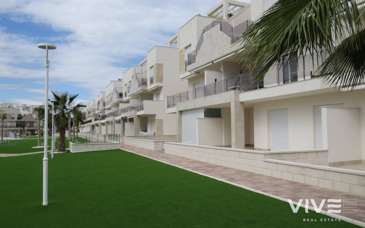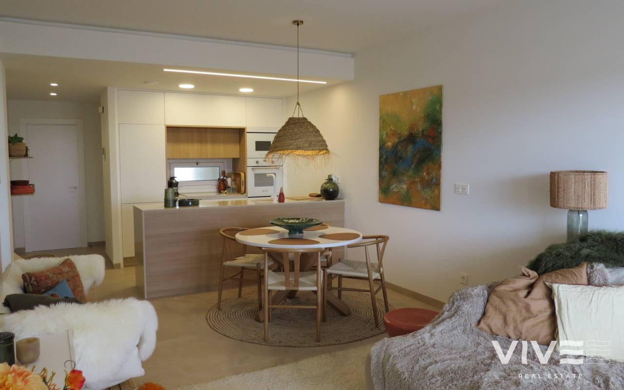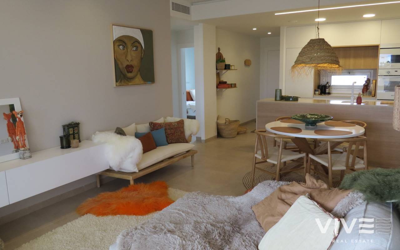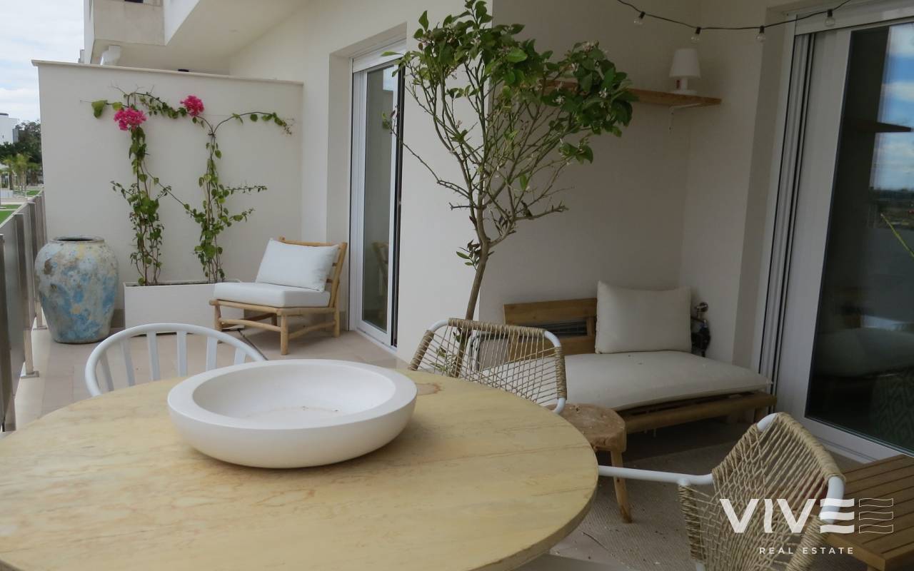 This recently built apartment is located in the quiet neighbourhood of El Raso, which is part of the popular seaside resort of Guardamar del Segura. The lively centre has numerous facilities such as shops, restaurants, bars, speciality shops and a beautiful nature park with a walking route that leads you to the charming harbour. This pleasant centre also offers a beautiful sandy beach. Its central location means you are not far from numerous other lovely cities, golf courses, shopping centres and so much more. It is the perfect combination for a wonderful sunny holiday or a permanent home. The housing estate where the apartment is located was built only recently and is truly a place to relax and unwind. It also has numerous extras that will give you a real feeling of luxury. The apartment itself is on the first floor and can be reached by stairs or lift. Upon entering, you are welcomed by a spacious living room with an open kitchen. From the living room, you have access to the cosy terrace with a view over the communal garden of the urbanisation. Furthermore, you will find the master bedroom with ensuite bathroom and access to the terrace, a family bathroom, second bedroom and a small storage/laundry room. This house has air conditioning (hot/cold), electric shutters, an intercom, electric sun awning, camera surveillance throughout the urbanisation and is being sold partly furnished. Don't hesitate and book a viewing quickly! Suma: (to be allocated) Community fees: 900 euros/year