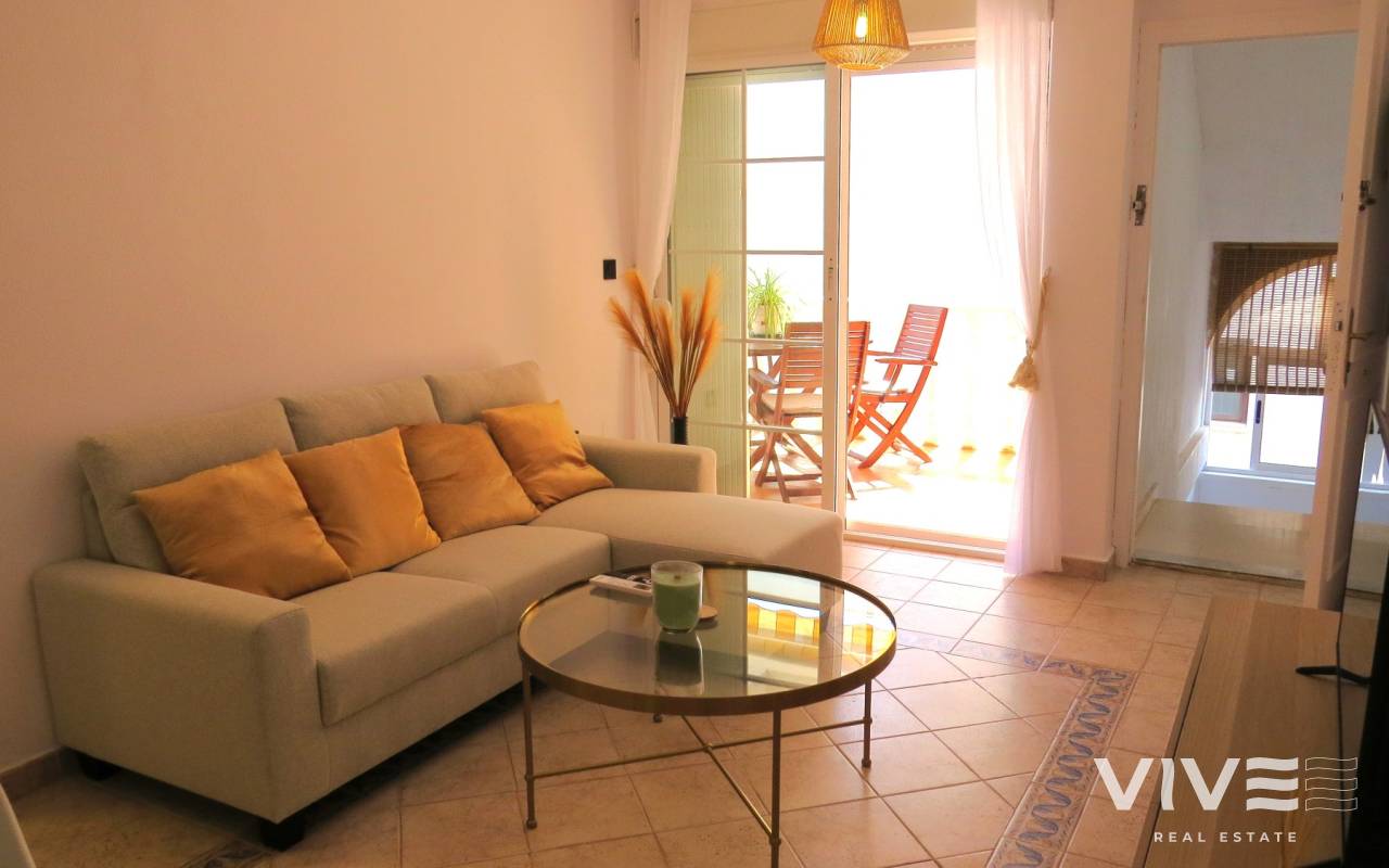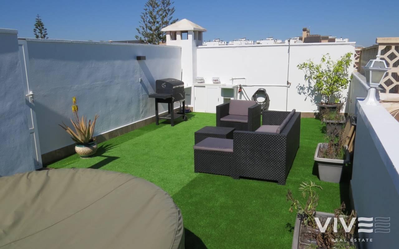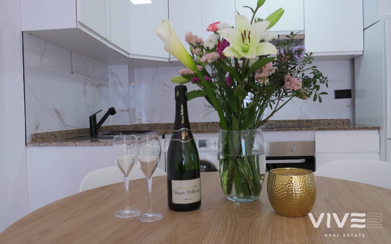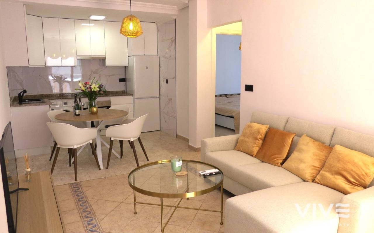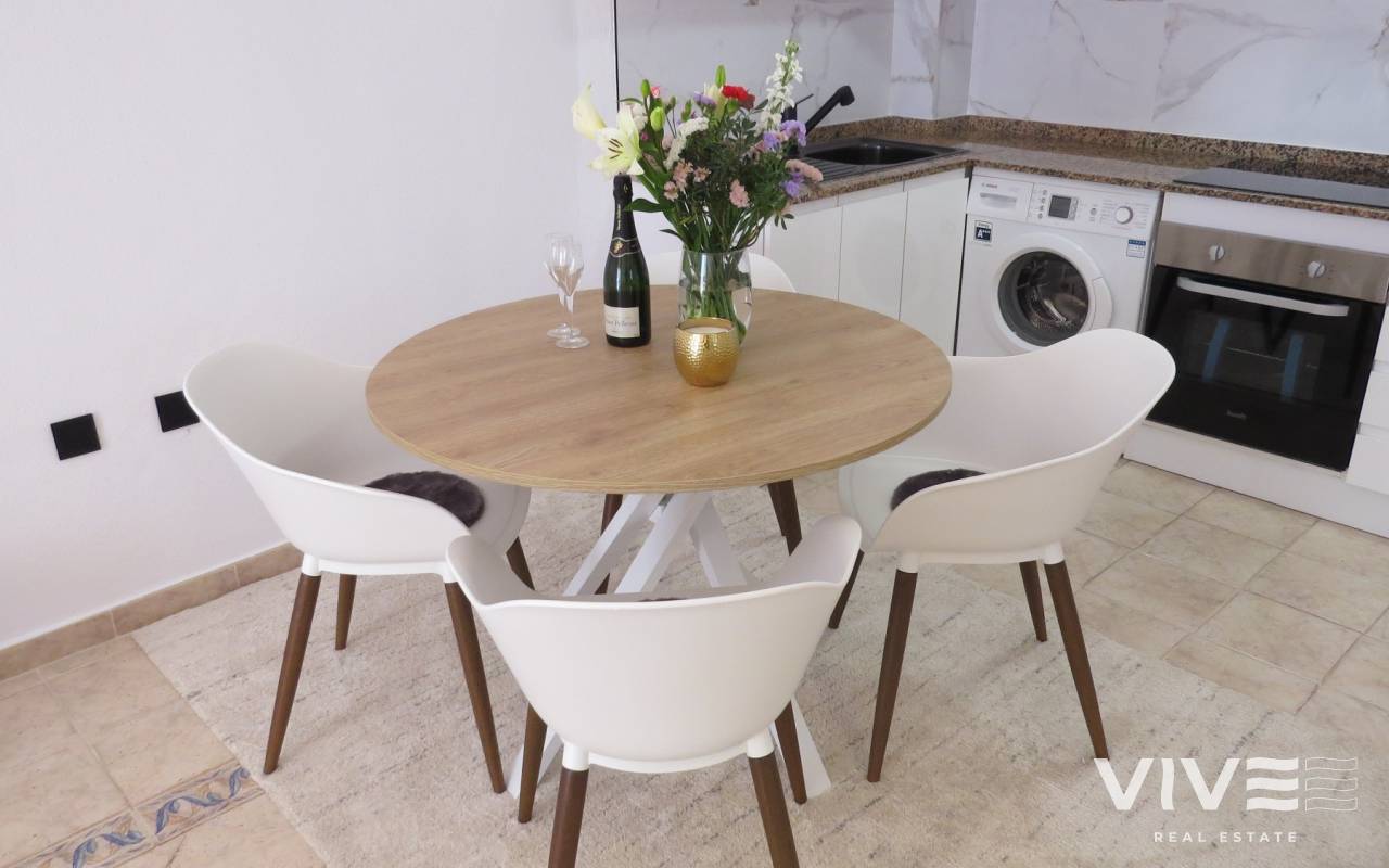 This recently renovated apartment offers a great location in the heart of the La Zenia area, where everything is within easy reach. Shops, bars, restaurants, specialty shops, La Zenia Boulevard shopping centre, and so much more... and of course the beautiful sandy beaches that are only a few minutes' walk away! In addition, the Orihuela Costa region on the southern Costa Blanca has many other charming towns, seaside resorts, golf courses, nature reserves, etc. to offer. The apartment itself is located on the first floor. Upon entering the property, you are welcomed by a cosy living room with an open kitchen. The living room gives direct access to a covered terrace with sun awnings. This property also offers two double bedrooms and a family bathroom. The sun-drenched private solarium is accessible via the staircase and offers plenty of extra outdoor space to enjoy the Spanish climate. This property also has many additional advantages that make it even more attractive! It has been recently renovated with a new kitchen and bathroom, new air conditioning (hot/cold), new electrical appliances and has been completely repainted. What's more, it is sold fully furnished, including garden furniture and a jacuzzi! In short, the perfect holiday home or permanent residence READY TO MOVE IN! Contact us quickly for a visit! Suma: 150 euro/year Community fees: 100 euro/year