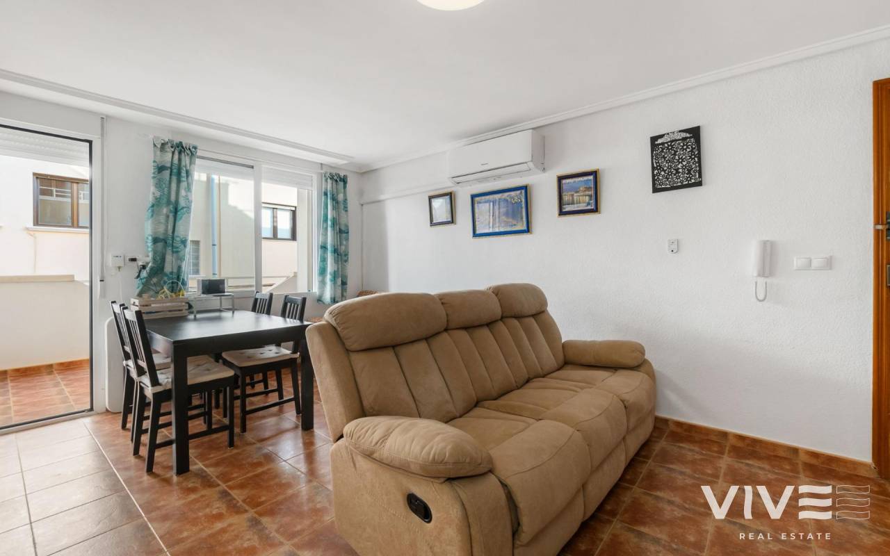 Apartment in La Mata, in a perfect location, situated just 300m from La Mata beach. The first floor apartment, with a surface area of 68m2, is distributed as follows: living-dining room with access to the terrace of about 8m2, large fully equipped open-plan kitchen, three bedrooms and a full and spacious bathroom with a bathtub. Air conditioning installed in the living room. Sold furnished. Communal solarium with sea views. The building has no lift. Very central, with all services on foot.