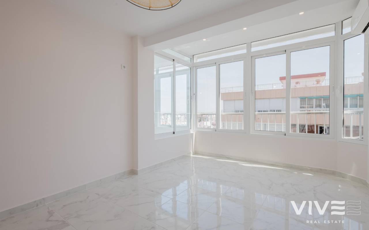 Luxury beachfront penthouse with sea views and 3 bathrooms in Torrevieja!Discover this magnificent opportunity to live in a fully renovated penthouse in one of the most sought-after locations on the Costa Blanca, in Torrevieja, Alicante. Priced at €345,000, this exclusive property offers comfort, spaciousness and an unbeatable location overlooking the Mediterranean Sea.With a built area of approximately 110 m², this property stands out for its modern and functional design. It has 3 spacious bedrooms, 3 full bathrooms, an elegant separate kitchen, and a spacious living-dining room, ideal for everyday comfort or entertaining. In addition, it has a glazed terrace of about 15 m² with side sea views, perfect for enjoying the sunny climate all year round. It is sold unfurnished, allowing you to personalise each space to your liking.Located in a building constructed in 1978, this penthouse is situated on the beachfront of Playa del Acequión, with direct private access to the beach and access to a communal swimming pool. Just a few metres away is Playa de los Náufragos, famous for its fine sand, calm waters and family atmosphere.The area has all the amenities you could need supermarkets, pharmacies, shopping centres, bars, restaurants and excellent connections to Alicante Airport, just 40 minutes away. Torrevieja is synonymous with quality of life, with a privileged climate offering more than 300 days of sunshine a year.Nearby tourist attractions include the Lagunas de La Mata y Torrevieja Natural Park, the Paseo Marítimo, the marina, the food market, and destinations such as La Zenia Boulevard (10 minutes away), Guardamar del Segura (15 minutes away) and Orihuela Costa (20 minutes away).This penthouse represents much more than just a home it is the Mediterranean lifestyle at its finest. Contact us today and make this dream your new home!