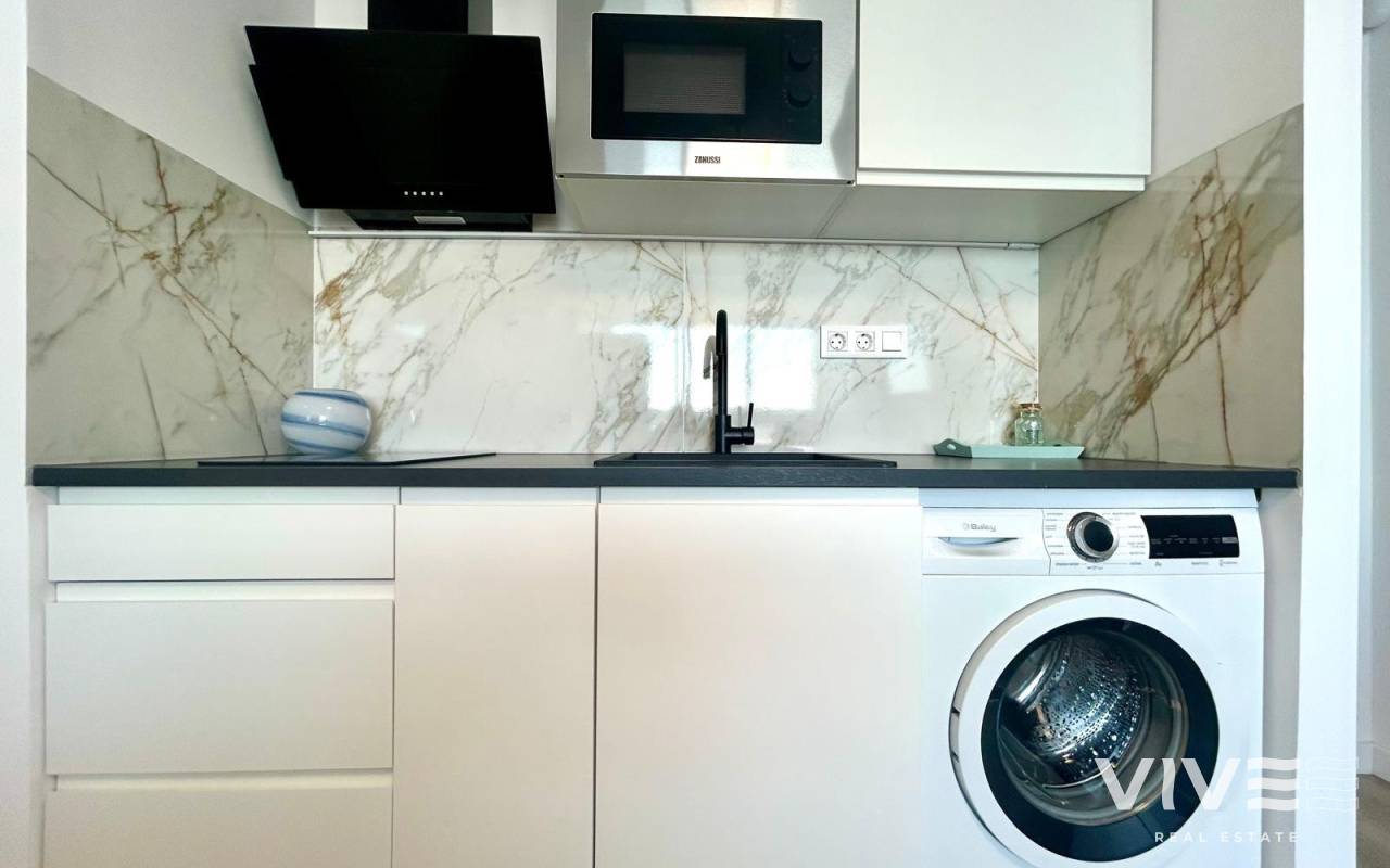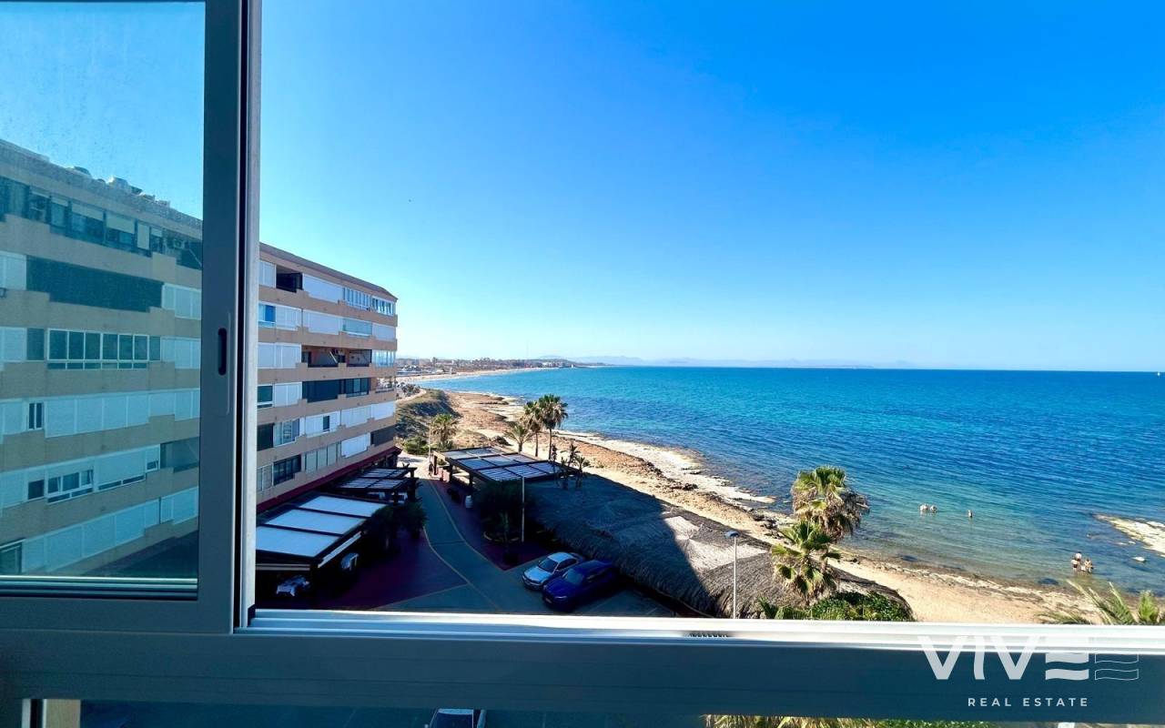 Apartment in a prime location in Cabo Cervera, just 50 meters from the beach. Recently renovated, with brand new furniture and appliances. Located on the third floor, northeast-facing. The 36 m² apartment has one bedroom, a full bathroom, an open-plan kitchen, and a living-dining room with magnificent sea views. The building has an elevator. A sports center with tennis courts and a paid pool is within walking distance. Surrounded by all amenities.