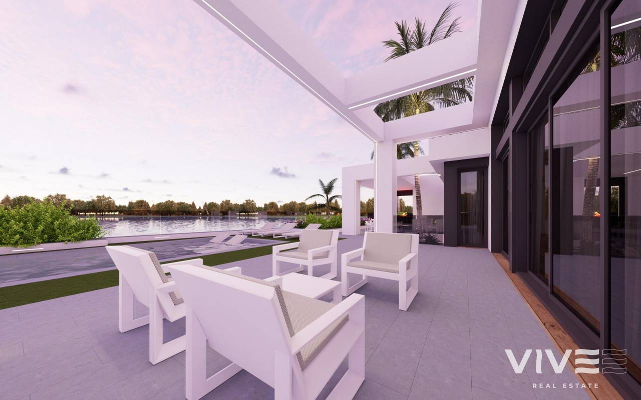 Frontline Lake Villas in Santa Rosalía Lake Resort, Murcia New-Build Luxury Villas in a Unique Mediterranean Resort Discover an exclusive collection of newly built villas in Santa Rosalía Lake and Life Resort, a premier private gated development located in the Region of Murcia. These luxurious homes are set on the front line of the resort’s stunning artificial lake, just 4 km from the beaches of the Mar Menor and close to the vibrant coastal town of Los Alcázares. Contemporary Design and Premium Comfort Each villa is designed on a single level plus a spacious basement and a rooftop solarium. With 4 bedrooms, 5 bathrooms, and 1 guest toilet, these homes offer an ideal layout for family living or entertaining. The open-plan kitchen and living-dining area lead to generous outdoor spaces, including a private garden with a pool, two English patios for cross ventilation at basement, and an expansive solarium with spectacular lake views. Notable features include: Fully equipped kitchen with modern appliances Finished garden with artificial grass, palm tree, shrubs, and drip irrigation system Air conditioning via ducted system 6 solar panels included for energy efficiency Bathrooms furnished with cabinets, mirrors, and shower screens Basement with utility room, bathroom, and technical room Private parking space for two vehicles Exclusive Amenities in Santa Rosalía Lake and Life Resort This exceptional resort spans 126,000 m² of landscaped green areas with walking and cycling paths, paddle and tennis courts, mini-golf, dog parks, sports facilities, leisure zones, and a clubhouse. The central attraction is a crystal-clear artificial lake of nearly 17,000 m², complete with white-sand beaches, palm trees, and two islands—one featuring a lakeside bar. Several beach bars are also spread around the lake, offering a true Mediterranean-Caribbean fusion experience. Prime Location with Excellent Connectivity Santa Rosalía Lake Resort enjoys a strategic position on the Costa Cálida, offering quick access to the region’s best attractions: Beaches of Mar Menor: 4 km Los Alcázares (town center and marina): 4 km Roda Golf and La Serena Golf: 3–5 km Cartagena city center: 15 km Murcia International Airport (RMU): 22 km Zenia Boulevard Shopping Center: 25 km Your Dream Villa Awaits in the Heart of Costa Cálida Live the ultimate lifestyle in one of the most innovative resorts in Spain. Contact us today to learn more about these frontline lake villas and schedule your visit.