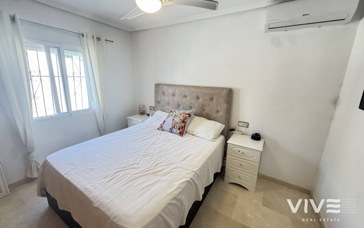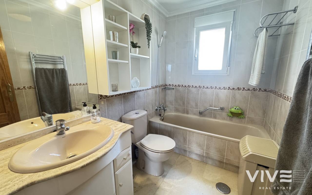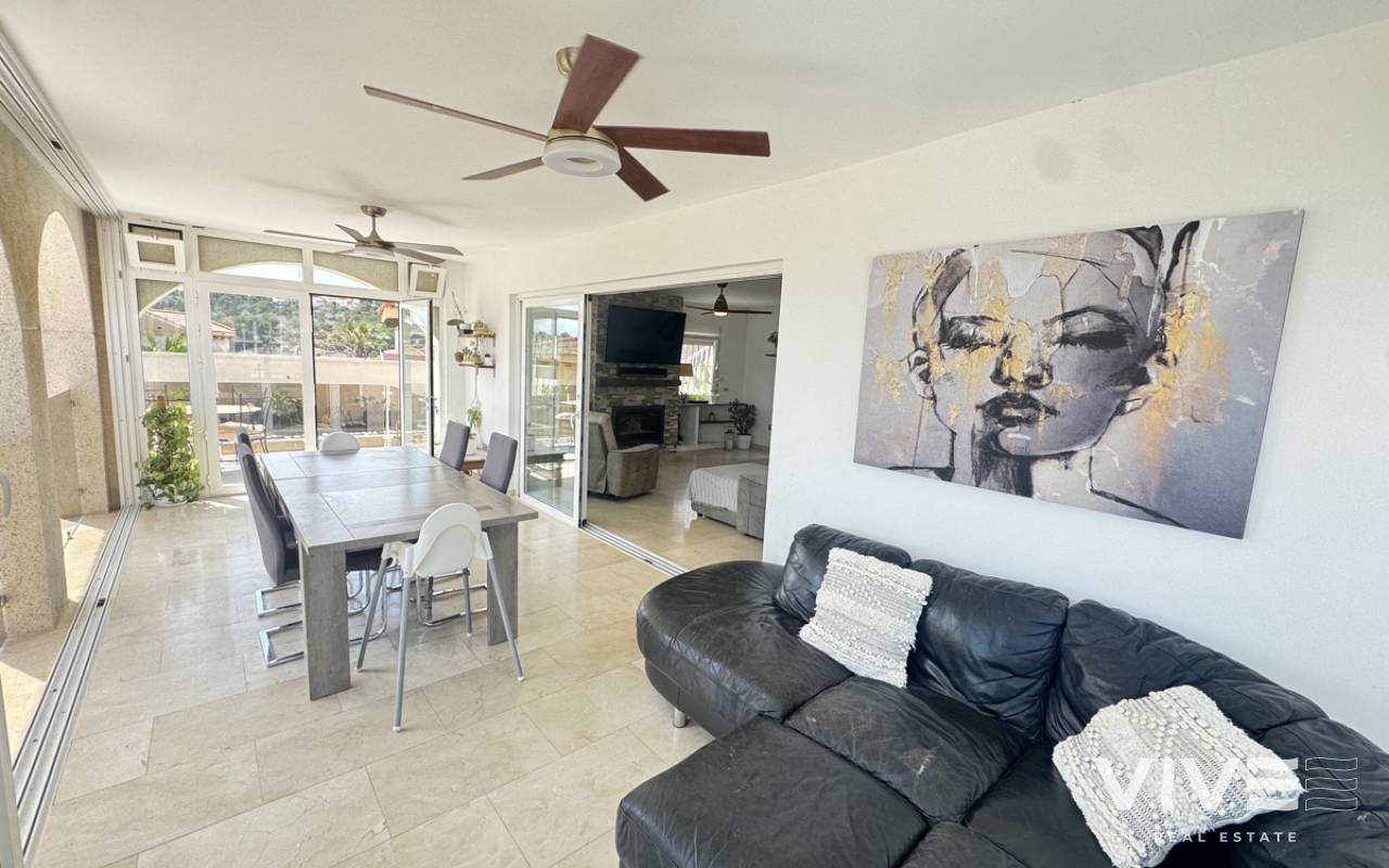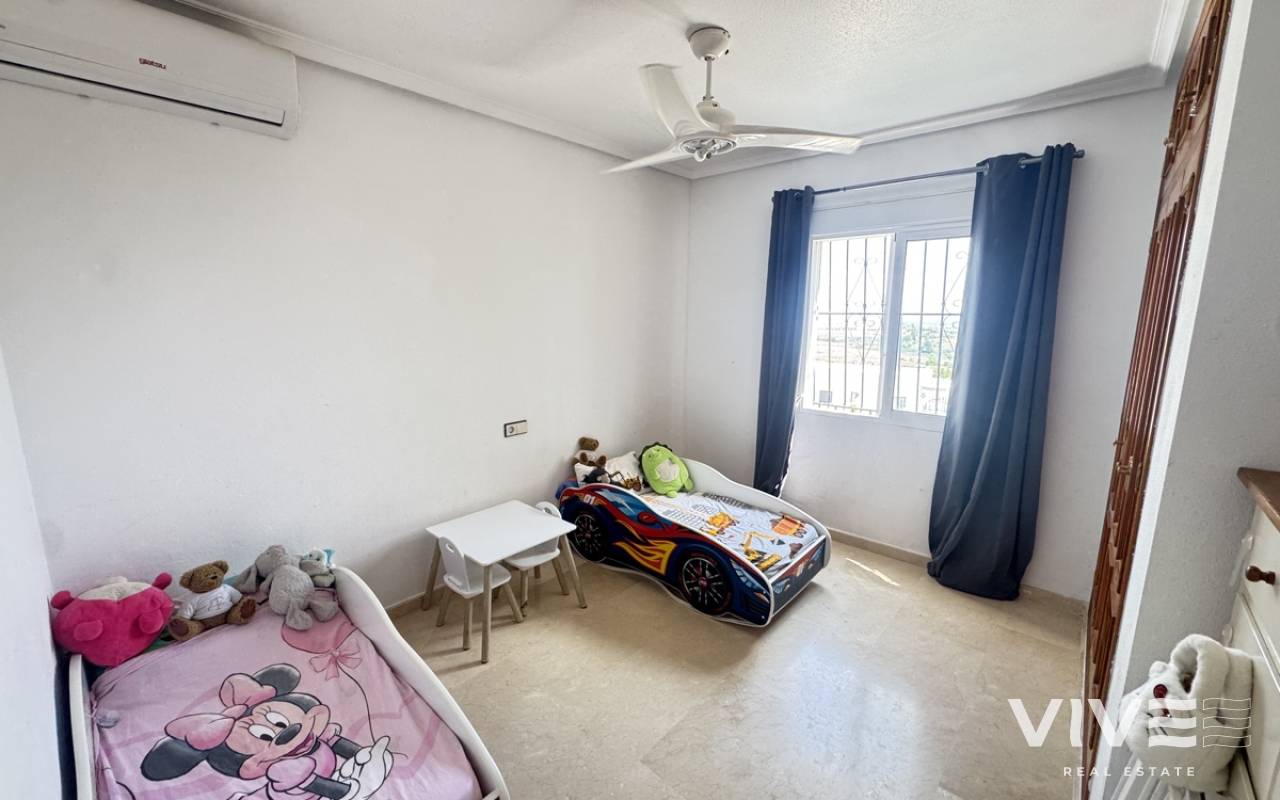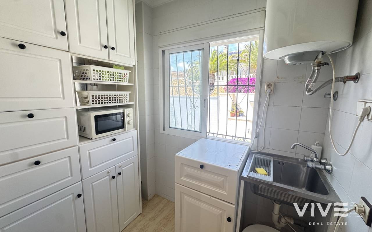 Stunning Villa with Panoramic Views. Discover the ultimate living experience in this stunning villa, situated on a vast 967m2 plot in the exclusive Villas Maria urbanization, Ciudad de las Comuniciones, San Miguel de Salinas. Offering Panoramic Views and Spacious Living This impressive property boasts breathtaking, sweeping views of the salt lake and Mediterranean Sea from the lounge and adjacent terrace, offering a truly unique perspective. With three levels and a garage, this villa provides ample space for relaxation and entertainment. Interior - Spacious lounge/dining area with fireplace and direct access to the garden - Separate kitchen with utility area and appliances. - 3 double/twin bedrooms and family bathroom on the main floor - Main bedroom with private sun terrace and stunning views - Additional large attic-style bedroom with multi-use area Modernized Lower Floor - Large laundry room with direct access to the garden - Bedroom, office, and additional storage area providing flexibility and functionality Garden and Pool Potential - Large garden with potential for landscaping and private pool installation - Bounded by two streets and a footpath, offering added privacy and potential for future development - Tiled garden and large fish pond at the main entrance, creating a serene ambiance Prime Location - 15-minute drive to the beautiful white sand beaches of Mil Palmeras, Campoamor, and La Zenia - 5-minute drive to the town center of San Miguel de Salinas, with its charming shops and restaurants