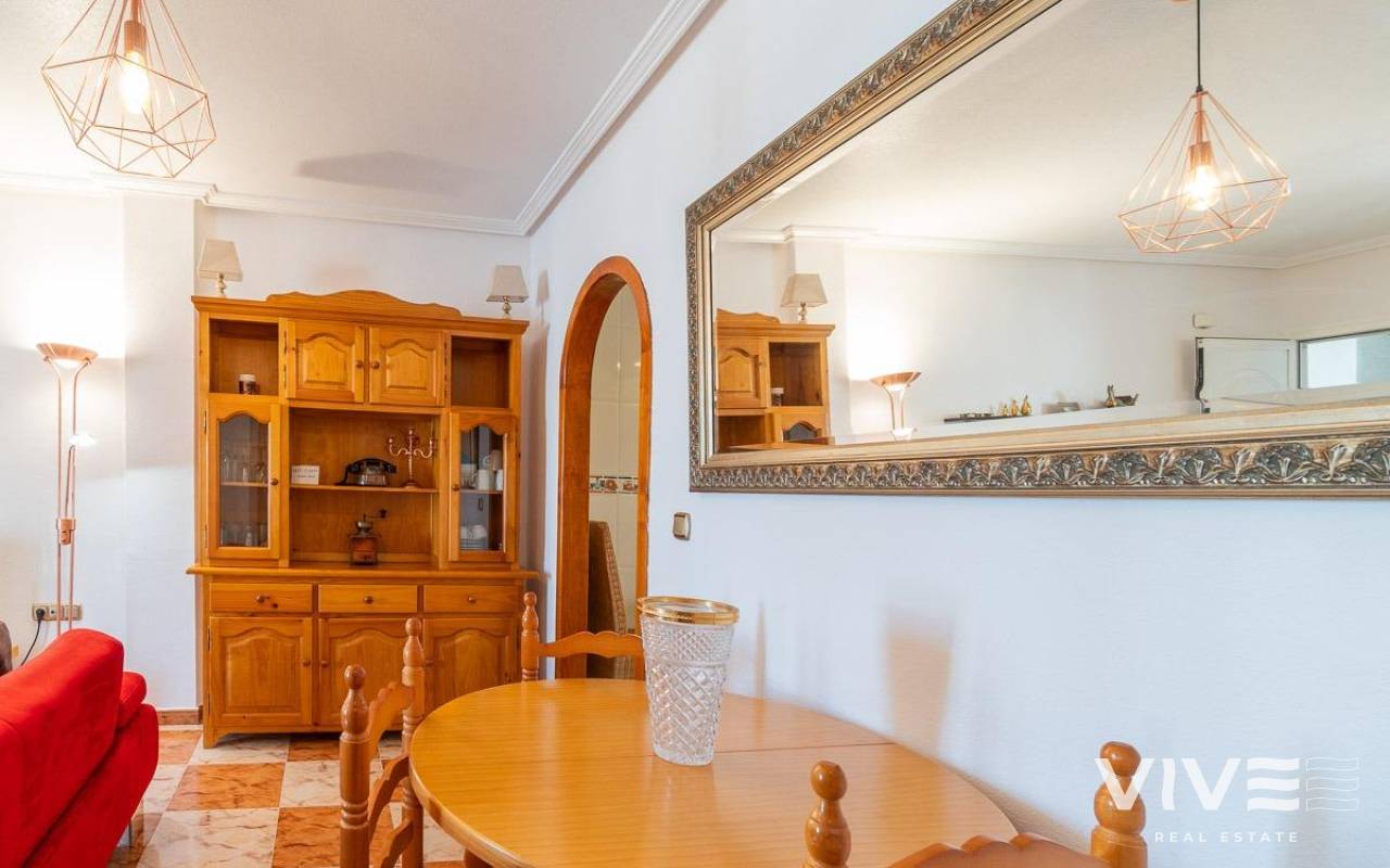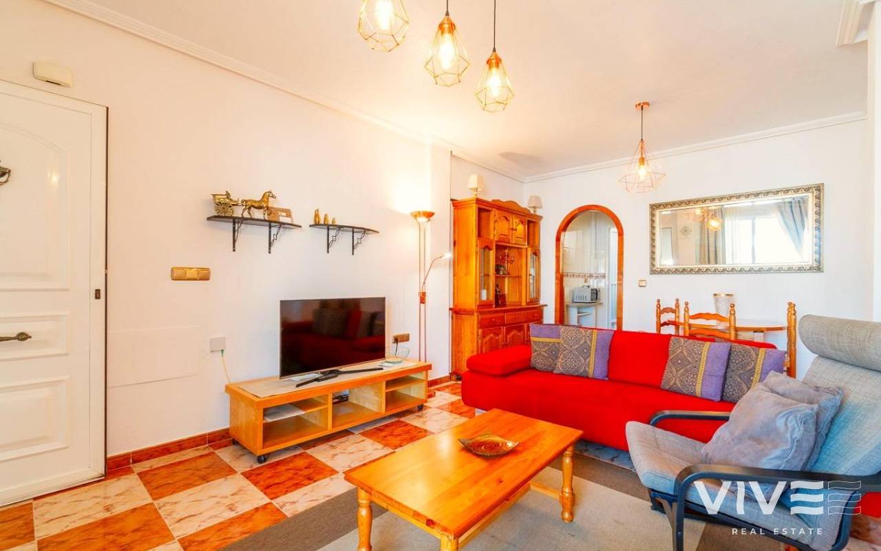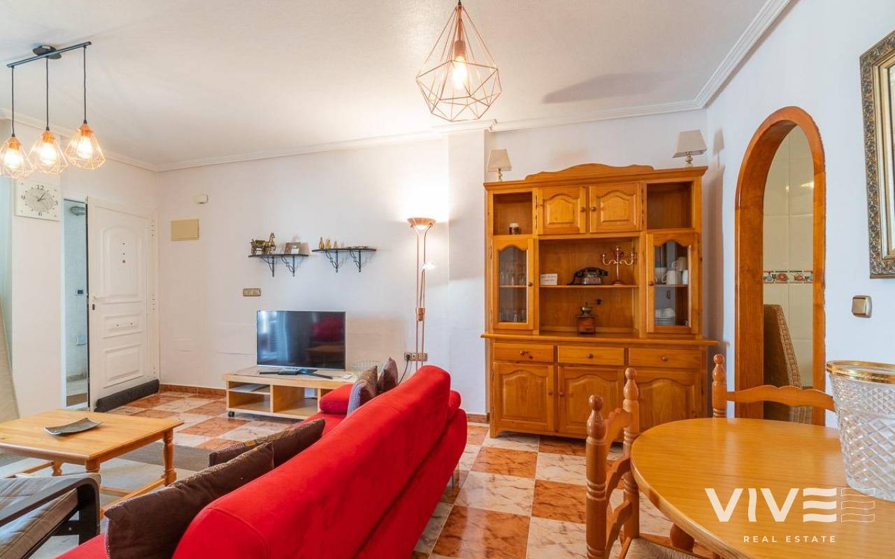 Discover this cozy first-floor apartment located in the peaceful and sought-after area of Las Filipinas, in Orihuela Costa, just minutes from the prestigious Villamartín golf course. Its excellent southwest orientation ensures natural light throughout the day.. . The property offers 2 bedrooms, 1 full bathroom, an independent and fully equipped kitchen, a utility/laundry room, and a bright living room that opens onto a spacious and charming terrace—perfect for enjoying the Mediterranean climate all year round.. . The apartment is sold fully furnished and equipped, ready to move in. It features split air conditioning, built-in wardrobes, electric water heater, and double-glazed aluminum windows, all designed for maximum comfort.. . It has been successfully rented both for long-term and holiday lets, demonstrating its excellent investment potential. Additionally, it has a valid tourist license, allowing for immediate rental income with full legal compliance.. . Located in a quiet and well-maintained residential complex with green areas and a communal pool, it offers an ideal setting for both year-round living and holiday stays.. . All essential services are nearby, including supermarkets, schools, restaurants, shopping centers, hospitals, and of course, the beautiful beaches of Orihuela Costa just a short drive away.. .