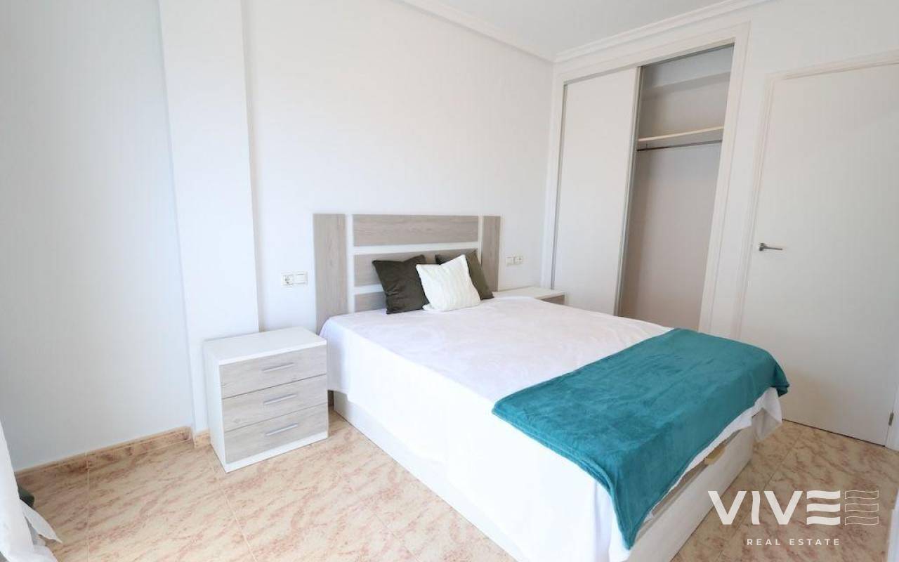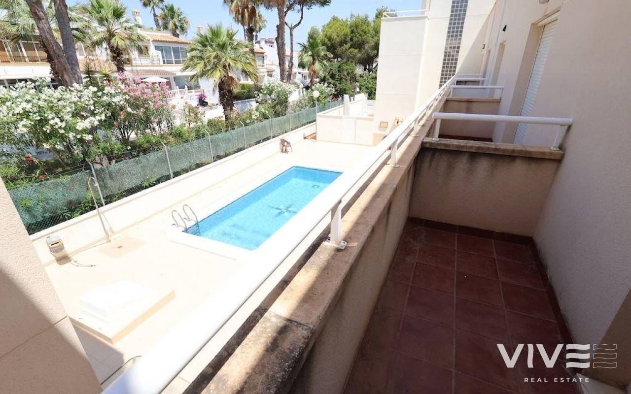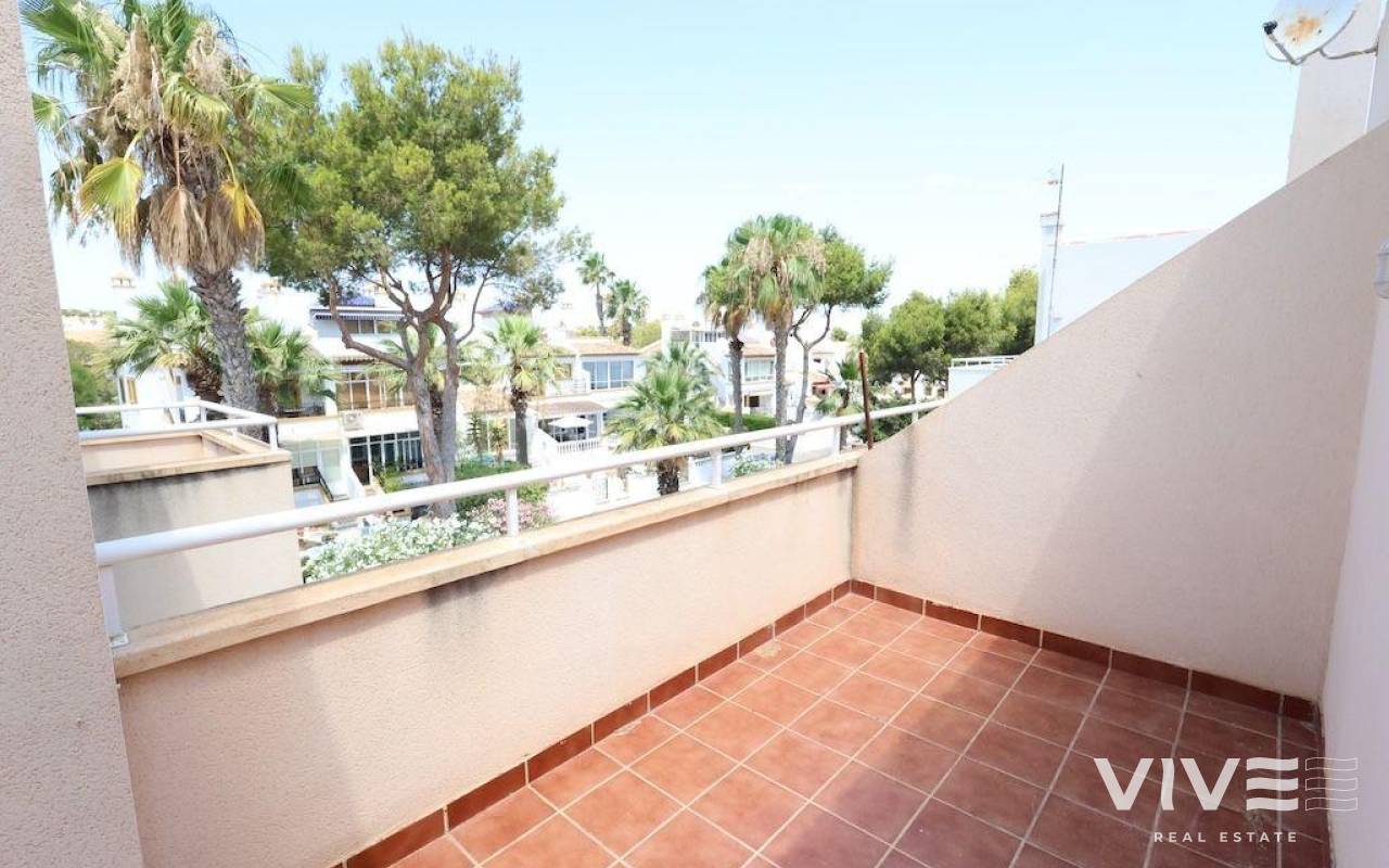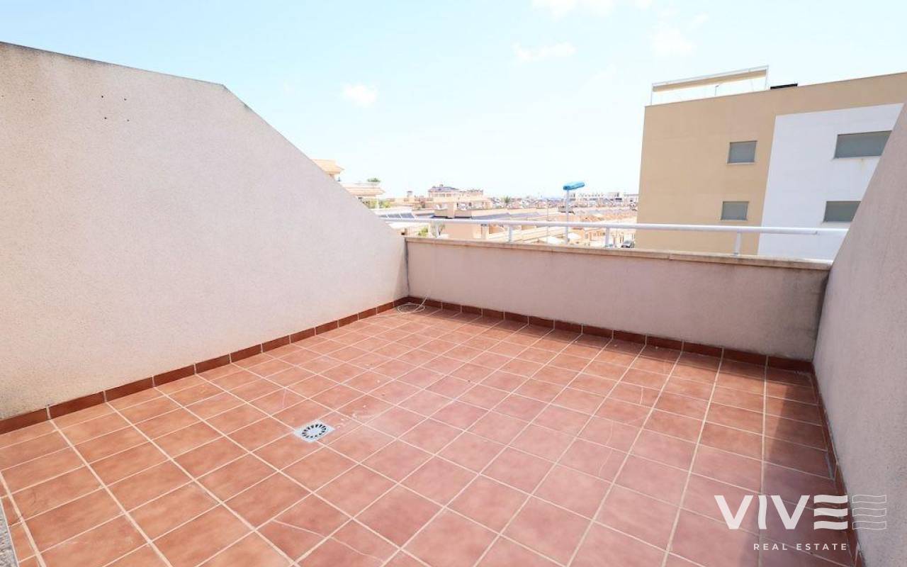 This 89 m² duplex is located in a quiet residential area of Villamartín, ideal as both a permanent residence and a holiday home. The property features 3 bedrooms – one of which is on the ground floor – 2 full bathrooms, a guest toilet, and a spacious private solarium.. . The master bedroom, situated on the upper floor, includes an en-suite bathroom and a private walk-in closet. On the ground floor, you'll find a tiled front garden of approximately 20 m² with a parking space, a front terrace, a bright living-dining area, an independent kitchen, a guest toilet, and one bedroom. The rear patio provides direct access to the communal swimming pool – a significant added value.. . The upper floor hosts the other two bedrooms and two bathrooms, and on the top floor, there’s a large private solarium, perfect for enjoying the sun all year round.. . Conveniently located close to all amenities, including supermarkets, restaurants, golf courses, and just a few minutes’ drive from the beaches of Orihuela Costa.. .