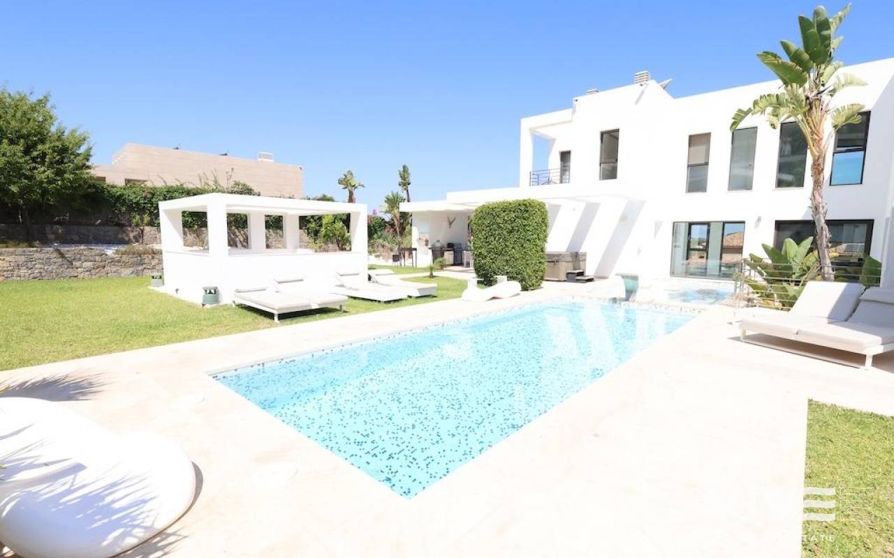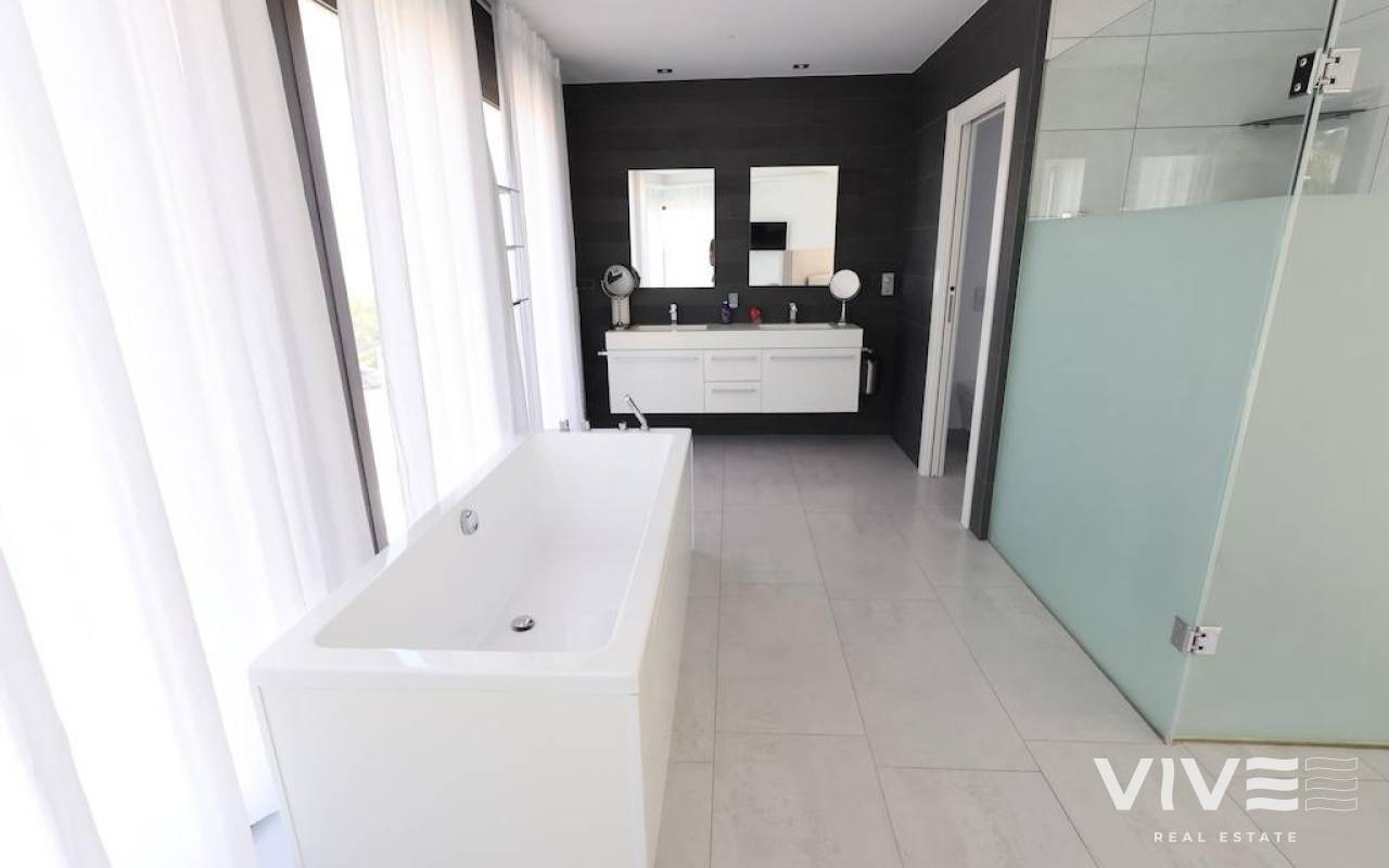 Discover the essence of modern luxury at Villa High, a stunning residence located in the exclusive Monte Olimpo residential area of Jávea. With 521 m2 of built area spread over three levels, this property is a benchmark of architectural elegance, absolute comfort, and cutting-edge technology.. . The villa offers five en-suite bedrooms, each designed to guarantee privacy and maximum well-being. Its open-plan living space visually connects with the Mediterranean Sea and the imposing Montgó Mountain, creating a unique atmosphere where natural light and views take center stage. The fluid indoor-outdoor layout amplifies the feeling of exclusivity and harmony.. . Upstairs, an elegant loft with panoramic views provides the perfect space to work or unwind, ideal for those seeking to combine productivity with tranquility. The home also features a private spa with a heated pool and hammam, offering a sanctuary of relaxation without leaving home.. . The exterior of Villa High is a true oasis of privacy and comfort. Two strategically positioned pools blend seamlessly into the surroundings, while an outdoor jacuzzi invites you to relax under the stars. The summer kitchen with barbecue, accompanied by elegant chill-out areas, offers the perfect setting to enjoy the Mediterranean climate, cuisine, and lifestyle at its finest.. . On the lower floor, the private spa redefines daily wellness with a heated pool, hammam, fully equipped gym, and a multifunctional leisure room, turning every day into an experience of relaxation and self-care.. . Villa High is equipped with the latest technology: a home automation system, Sonos sound, an 18 kW solar system with batteries, an electric vehicle charger, comprehensive air conditioning, and a private garage. A home that combines sustainability, design, and sophistication in one of the most desirable locations on the Costa Blanca.