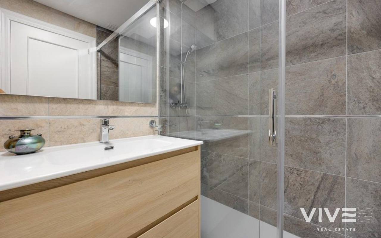 We present this modern, fully renovated apartment. Located in one of the most well-known residential areas of Dehesa de Campoamor, in the Aguamarina area, just 300 meters from the beach. Very bright, the apartment consists of two bedrooms, one bathroom, a separate kitchen, and a large terrace overlooking the green areas of the complex. Ideal for enjoying a vacation or living year-round.~Fully furnished, with brand new furniture. The separate kitchen has new appliances. It has air conditioning in all rooms and parquet floors, providing warmth and comfort year-round.~The south-facing terrace is perfect for watching the sunrise over the sea or relaxing in the afternoon with the sea breeze.~Located in a quiet and exclusive area, surrounded by nature and Mediterranean vegetation, with all services within walking distance: cafes, restaurants, supermarkets, shops, and a modern marina, providing comfort and quality of life.~