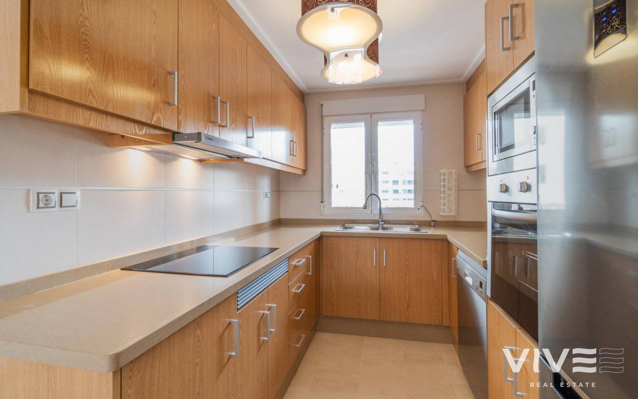Your ideal retreat in Orihuela Costa!. . Introducing this bright, south-facing 65m² apartment, perfect for enjoying the sun all year round. It's ready to move into and offers all the amenities you need to create your own home by the sea. Located in the Vista Azul XII residential complex, it boasts high-quality finishes.. . It features two double bedrooms, a full bathroom, an open kitchen, a spacious living-dining room, and a 20m² terrace, ideal for breakfast al fresco or relaxing after a day at the beach. The apartment is sold unfurnished, allowing you to decorate it to your liking.. . For your maximum comfort, it features underfloor heating throughout, perfect for the cooler months, as well as ducted air conditioning (hot/cold). The price includes a 16m² private parking space, ensuring your comfort and security.. . The development offers 3 communal pools, one of which is indoor and includes a sauna, for year-round enjoyment, regardless of the season.. . Located just 3 km from the sea, you'll have access to some of the best beaches on the Costa Blanca, as well as all the services, shops, and leisure options of the Orihuela Costa, including several golf courses less than 10 minutes by car and the largest shopping center in the province of Alicante, La Zenia Boulevard.. . Don't miss this opportunity to live close to the sea, with all the amenities and a privileged climate.. . Contact us for a visit and start imagining your new life!