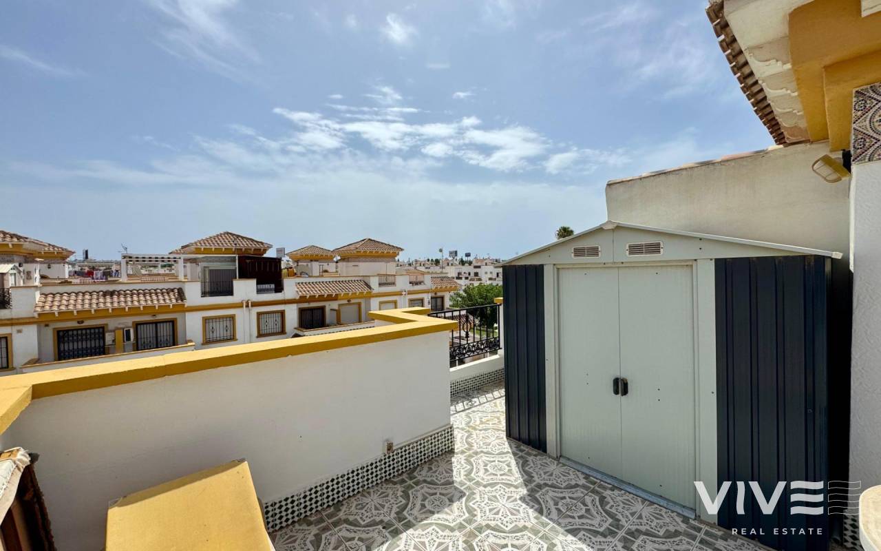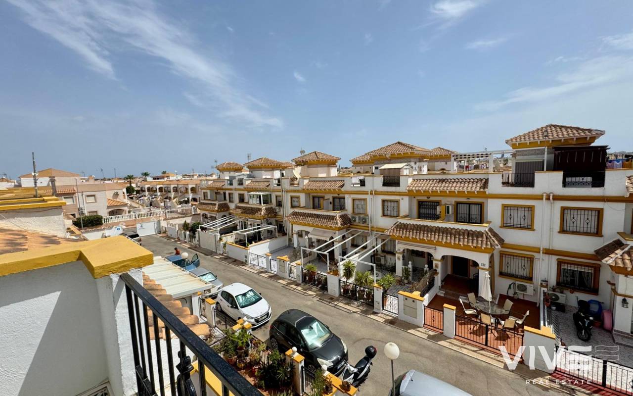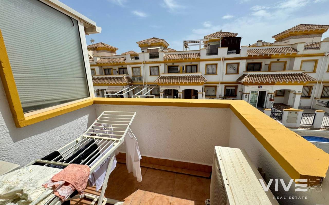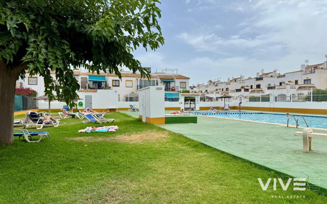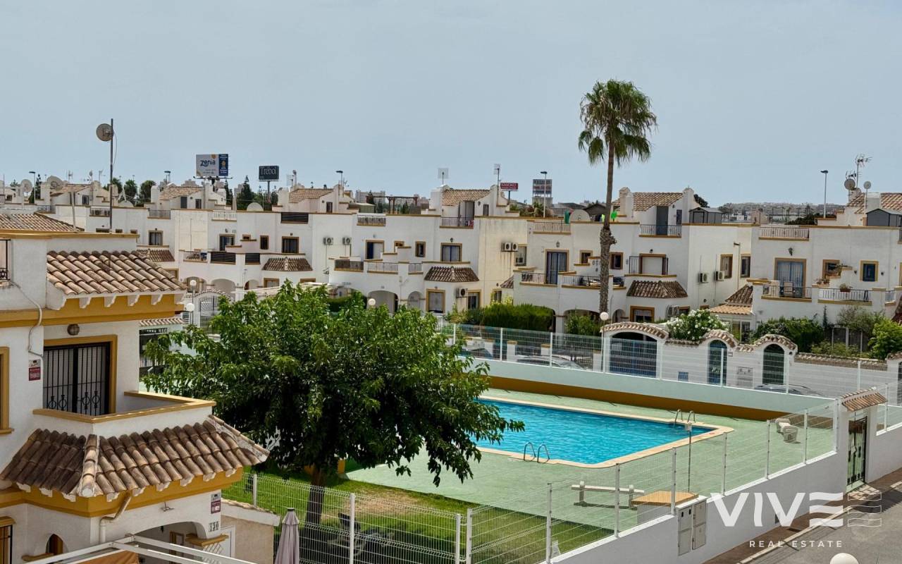 Duplex Townhouse in Torrevieja – 3 Bedrooms, Garden, Patio, Solarium & Communal Pool. Beautiful duplex-style townhouse for sale in one of the most sought-after areas of Torrevieja ready to move in.. . ???? Layout:. . 3 bright and spacious bedrooms. . 2 full bathrooms. . Private front garden. . Rear patio, perfect for outdoor dining or laundry area. . Private solarium to enjoy the sun all year round. . ???? Extras included:. . Air conditioning. . . Well-designed outdoor spaces. . ???? Located in a private residential complex with:. . Communal swimming pool. . Security cameras. . Peaceful and family-friendly environment. . ???? Close to supermarkets, shopping centers, public transport, schools, and the best beaches in the area.. . ✅ Ideal as a permanent residence, holiday home, or investment with high rental potential.. . ???? Contact us for more information or to schedule a viewing. Don’t miss out on this opportunity!. .