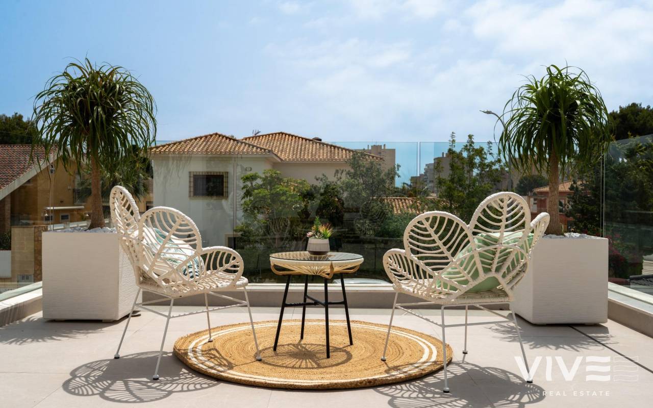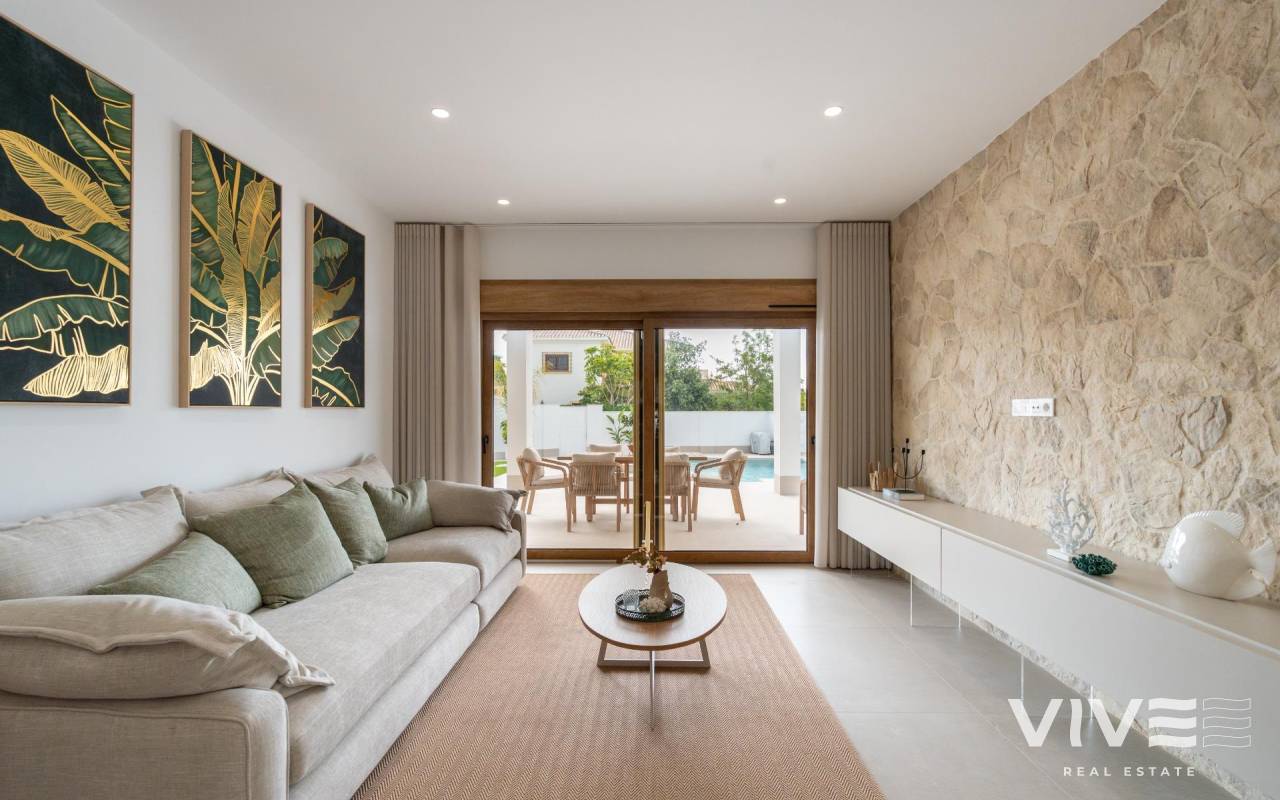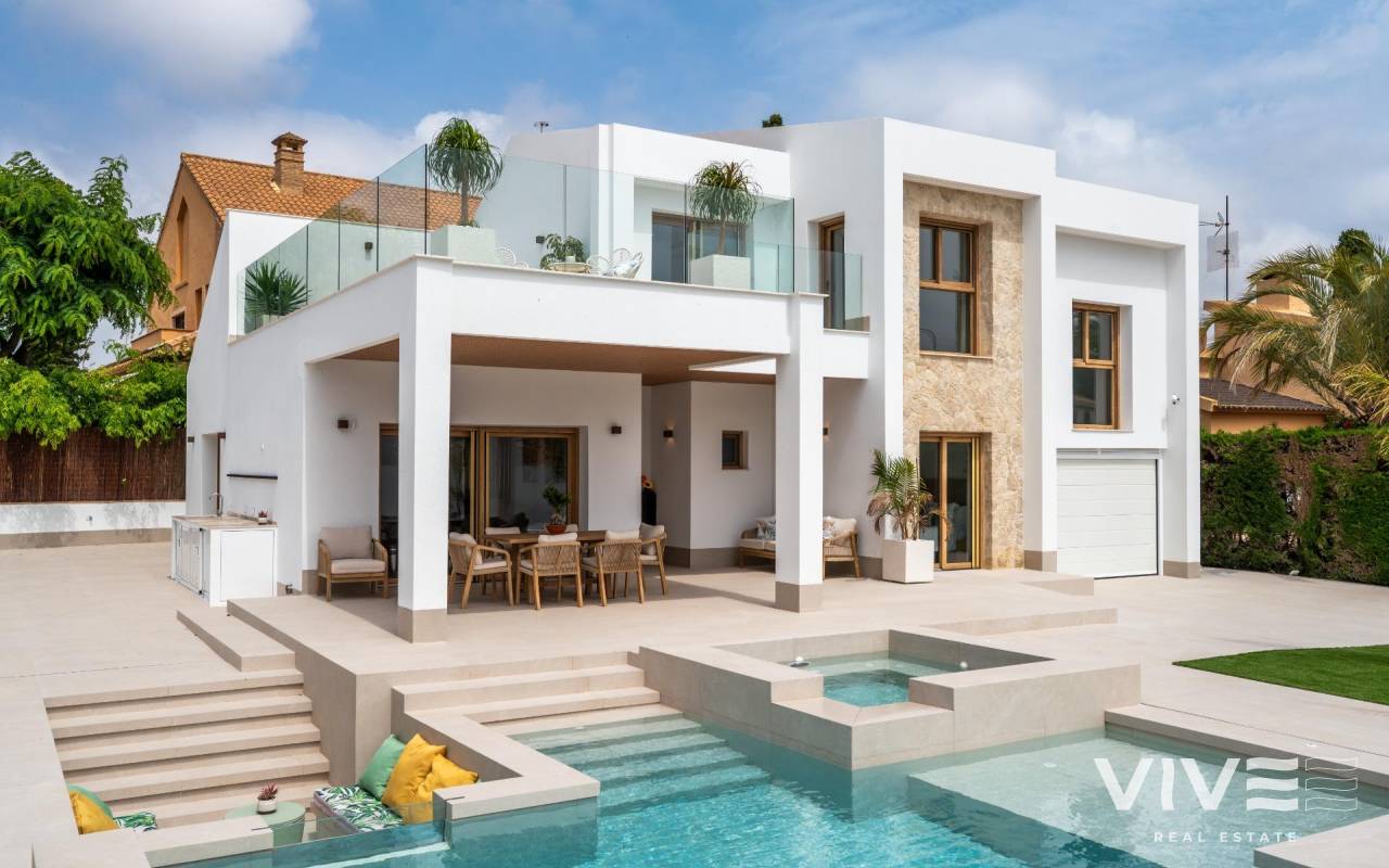 Villa Crystal Sea is located in an exceptional setting that combines quality beaches, a healthy climate, and extensive services—ideal for enjoying comfort and quality of life near the sea. Just 800 meters away are the popular Cala de Campoamor and Playa de los Diez Picos. The area stands out for its privacy and tranquility. Additionally, it offers close access to protected natural spaces such as Sierra Escalona, with its pine forests and trails, as well as routes between the salt flats of San Pedro del Pinatar and Torrevieja, renowned for their biodiversity and unique landscapes.~Located in one of the quietest neighborhoods in the area, this villa offers exclusive access to a private sports zone for residents, which includes paddle tennis, tennis, football, and basketball courts, as well as several swimming pools. The property sits on a 676 m² plot and features a 227 m² house distributed across two floors. Inside, it offers four double bedrooms, five full bathrooms, and a spacious openplan living room, kitchen, and dining area measuring over 50 m². The home is equipped with an energy-efficient aerothermal system. The kitchen is fully furnished and equipped, standing out for its elegant and functional design. It features a large island decorated with wood slats, integrated Bosch appliances, and carefully designed lighting that combines spotlights and LED strips to enhance both practicality and aesthetics. Its layout creates a perfect balance between style and utility. A hidden door in the kitchen provides access to the laundry area, garage, and exterior bathroom, which is considered such due to its easy access from the back entrance.~With excellent natural light throughout, the home is especially notable for its bright and spacious living-dining room, enhanced by large windows that offer visual continuity with the outdoors. The flooring, with its seamless style both indoors and outdoors, reinforces the sense of openness and extends the space toward the impressive pool area. The villa comes completed furnished and equipped, with carefully designed details in each room, including a walk-in closet in the master bedroom. The bathrooms feature exclusive, custom designs, with electric towel warmers in all except the exterior bathroom. Lighting is a key element of the home, with spotlights and LED strips throughout, reflecting the distinctive style of Rodrigo Homes and offering a complete experience of comfort, design, and functionality.~The spectacular outdoor area includes two porches, a 47 m² pool with an integrated jacuzzi and beach-style sunbathing area, and an elegant chill-out zone directly connected to the pool. The entire setting is enhanced with strategically placed LED lighting across all areas, including illuminated steps that create a cos y ambiance at night. On the first floor, there is a spacious solarium, perfect for relaxing and enjoying the surroundings. As a final touch, the villa features a large outdoor kitchen, ideal for sharing unforgettable moments with family and friends. This villa has been designed with the utmost attention to detail in every space, with the aim of creating a unique and elegant environment—turning it into a true dream home for its future residents.~