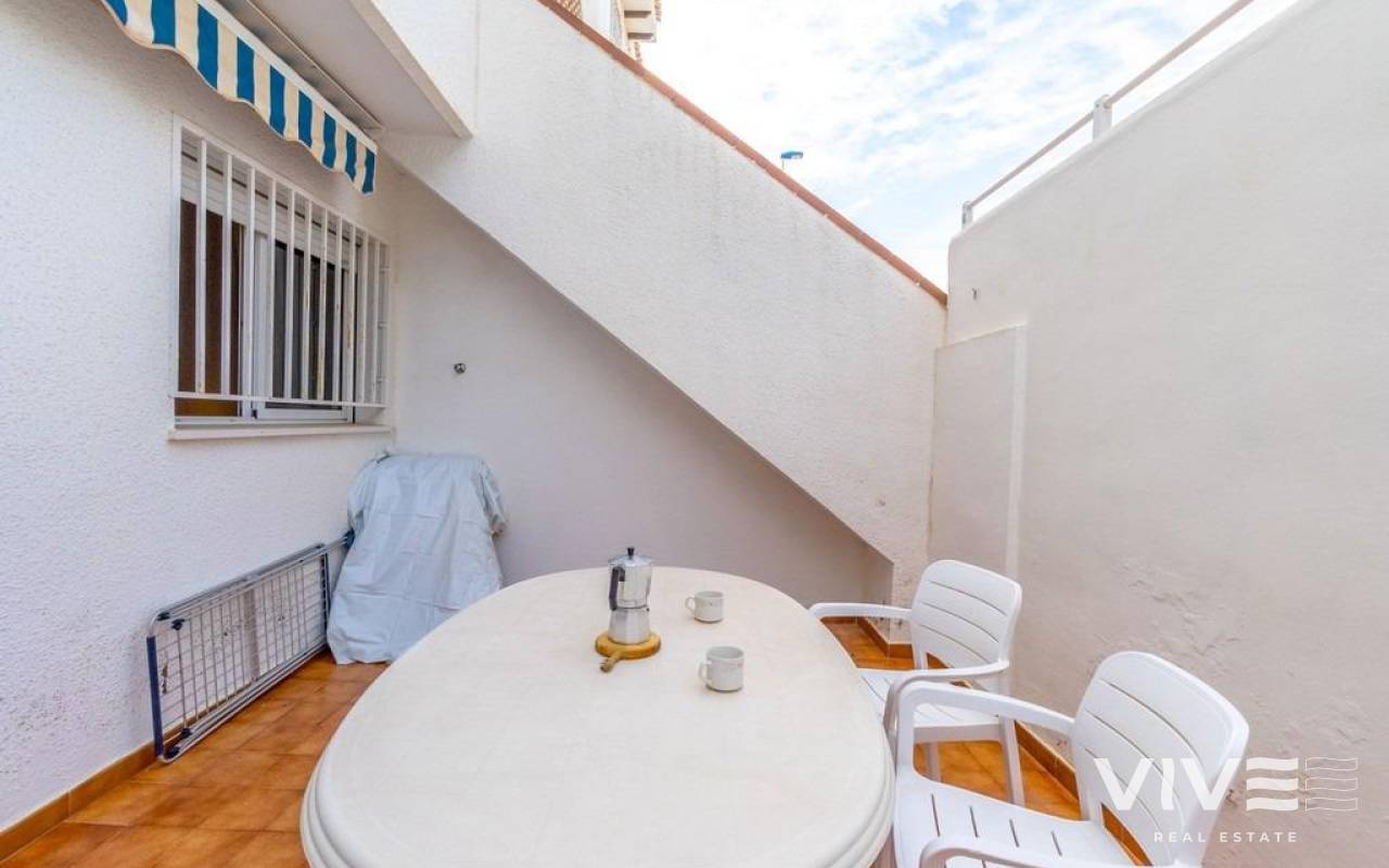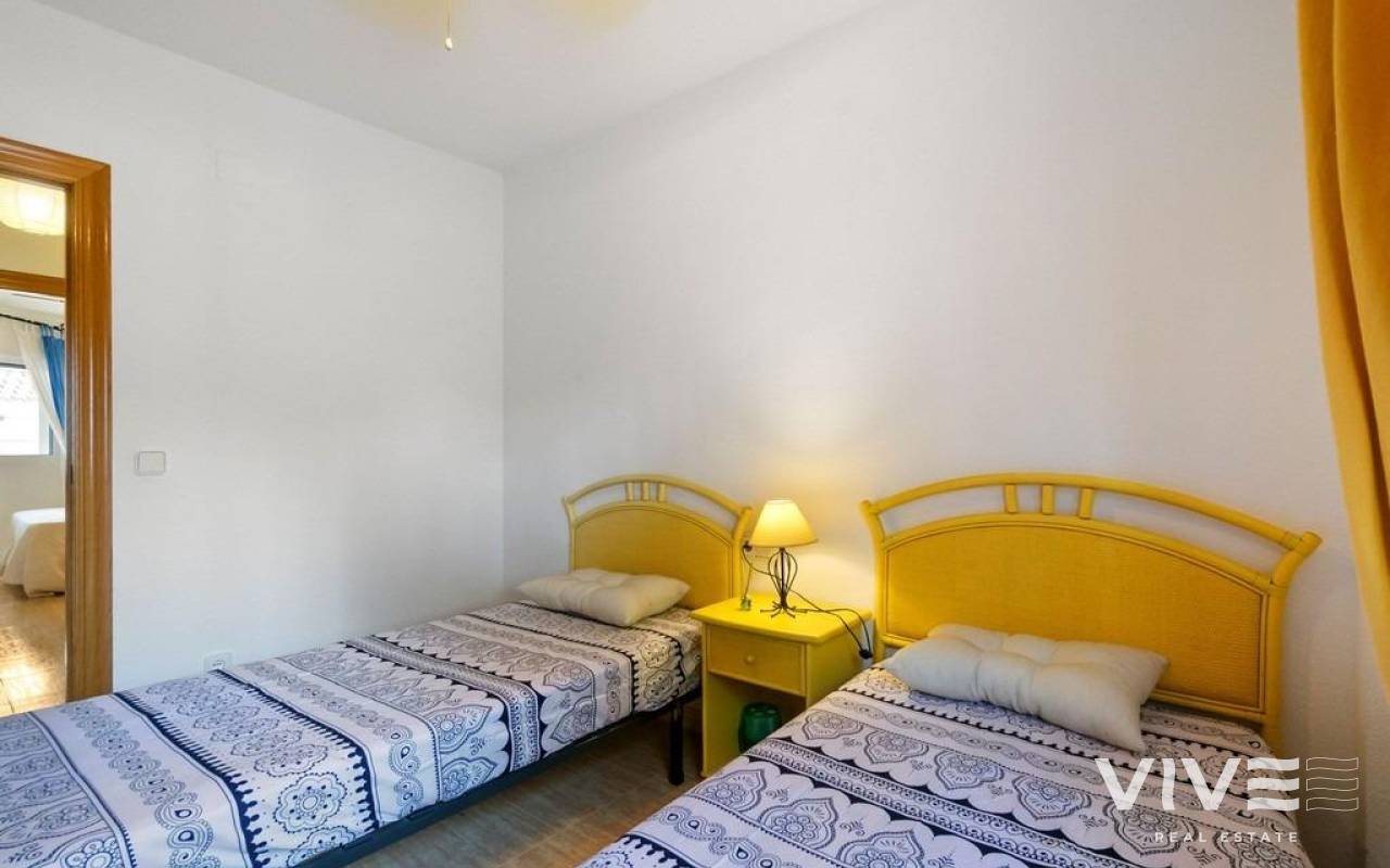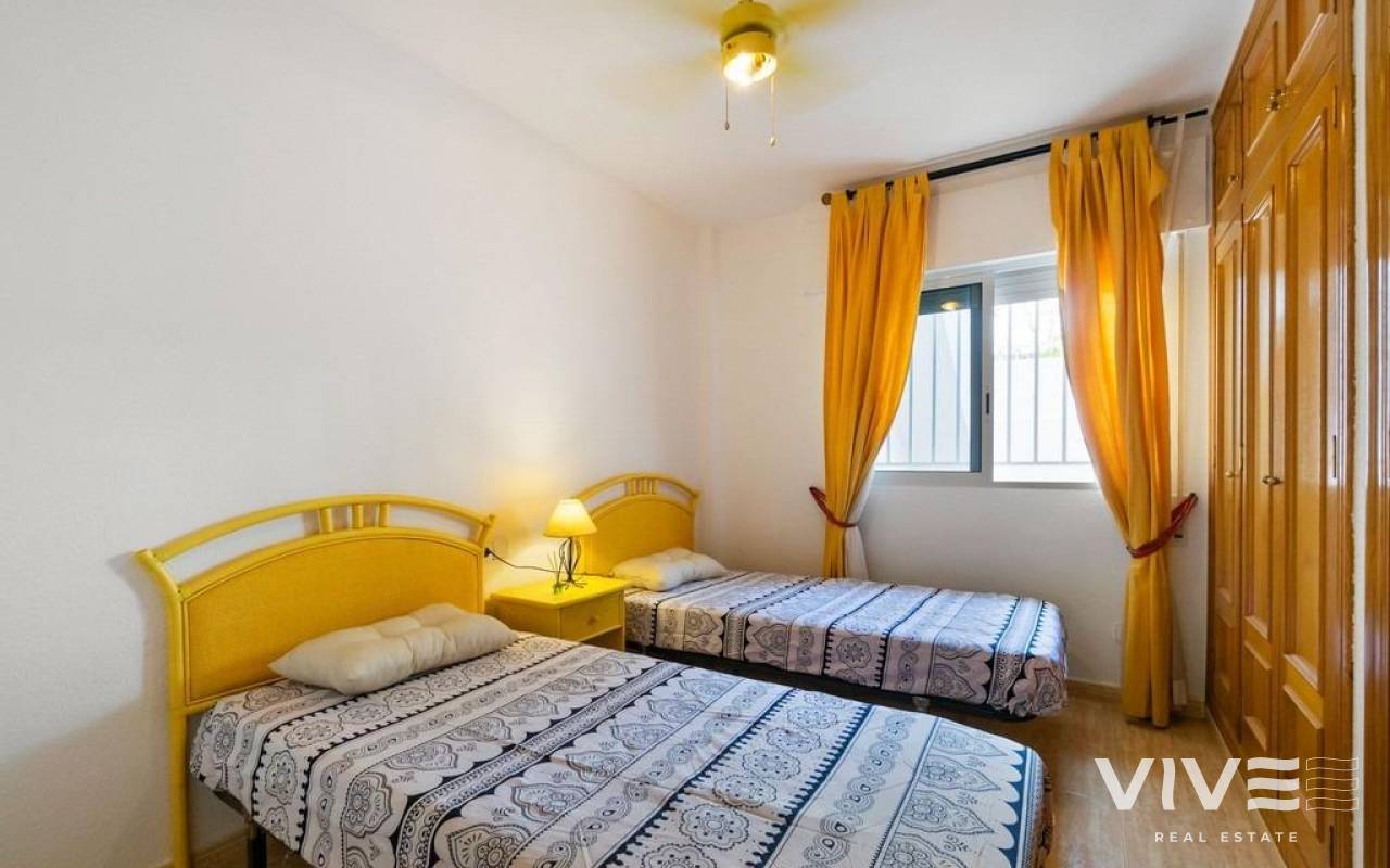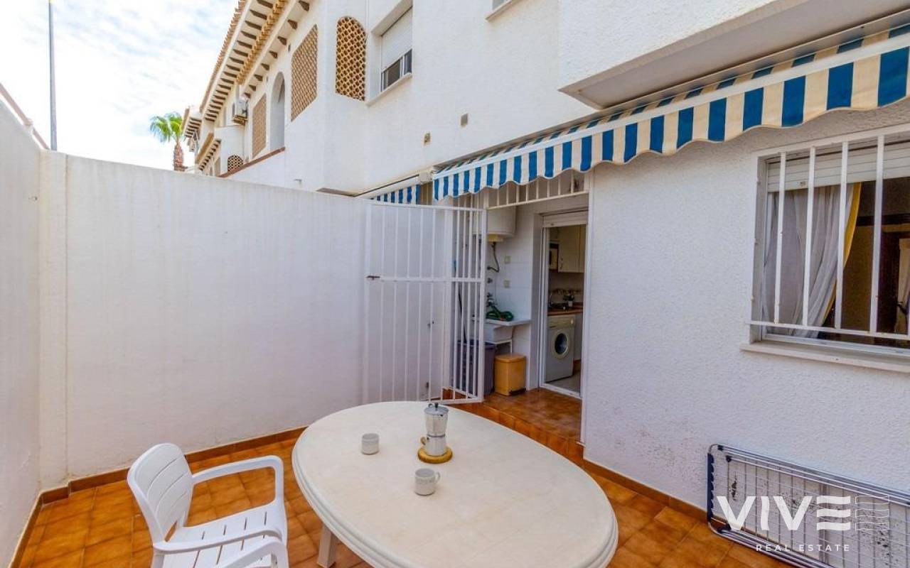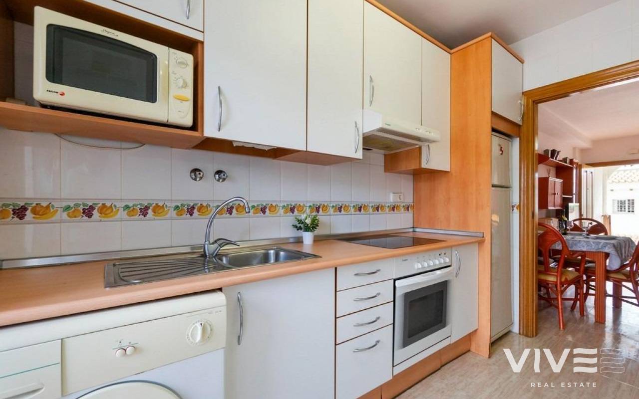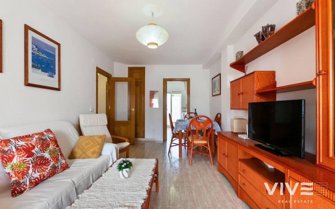 Charming Ground Floor Apartment Just 200 Meters from the Beach~~Welcome to this beautiful and cozy apartment located in the exclusive Residencial Aguamarina — a traditional Mediterranean complex with white façades, spacious green areas, and a magnificent communal pool.~~Situated on the ground floor, this property features 2 bedrooms, 1 full bathroom, a large sunny terrace perfect for enjoying the climate all year round, and a rear patio that offers extra space and comfort.~~The location is unbeatable: just 200 meters from the sandy beach of Aguamarina and within walking distance to all essential services — supermarket, pharmacy, health center, restaurants, and the picturesque seaside promenade.~~An excellent choice both for holidays and for year-round living on the Mediterranean coast.