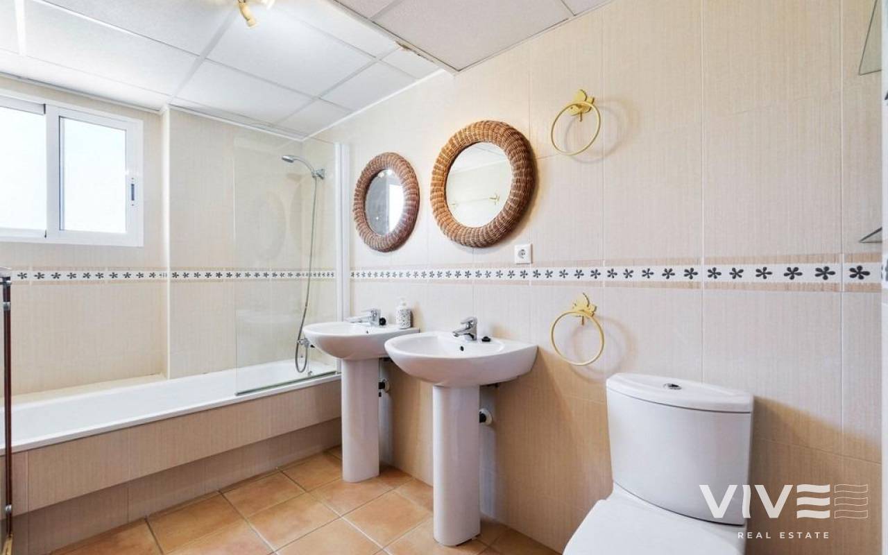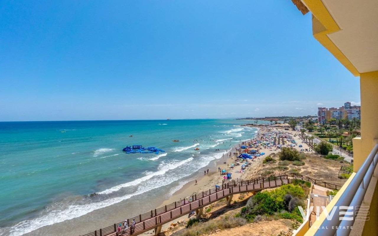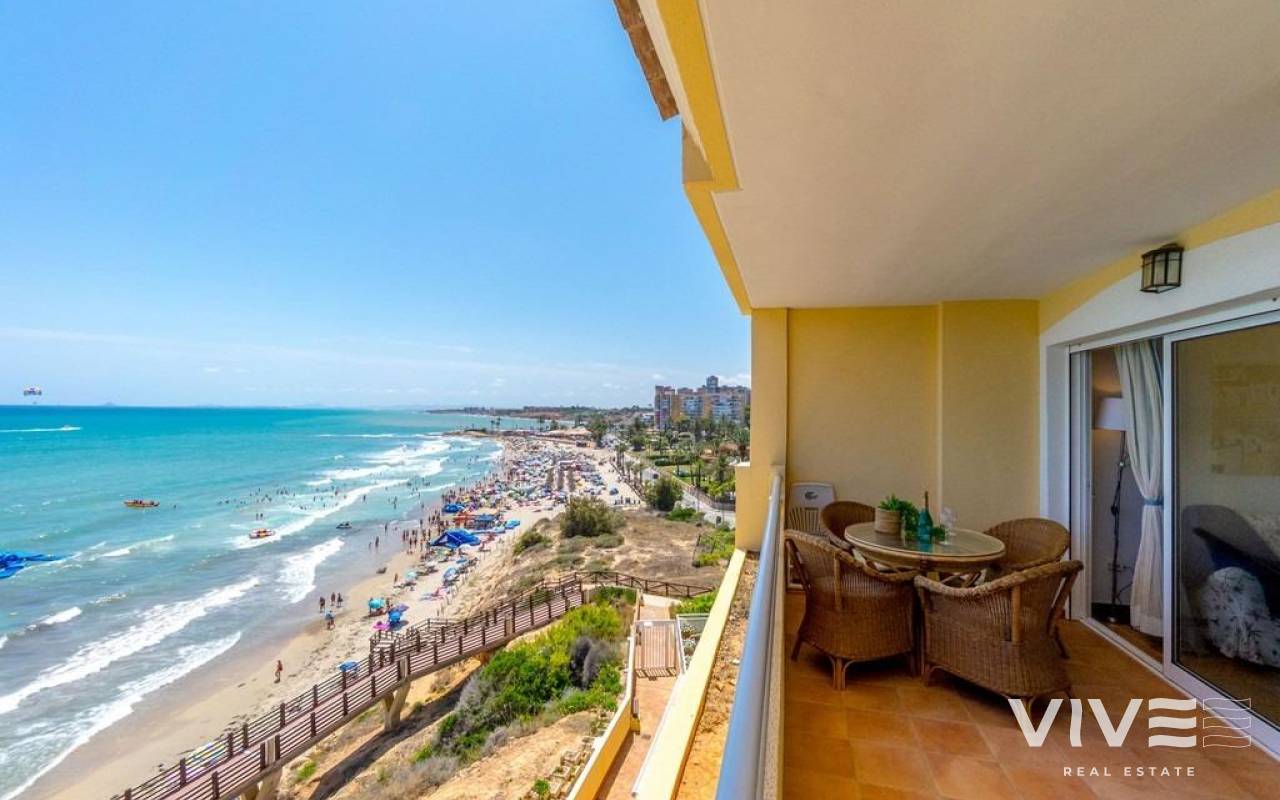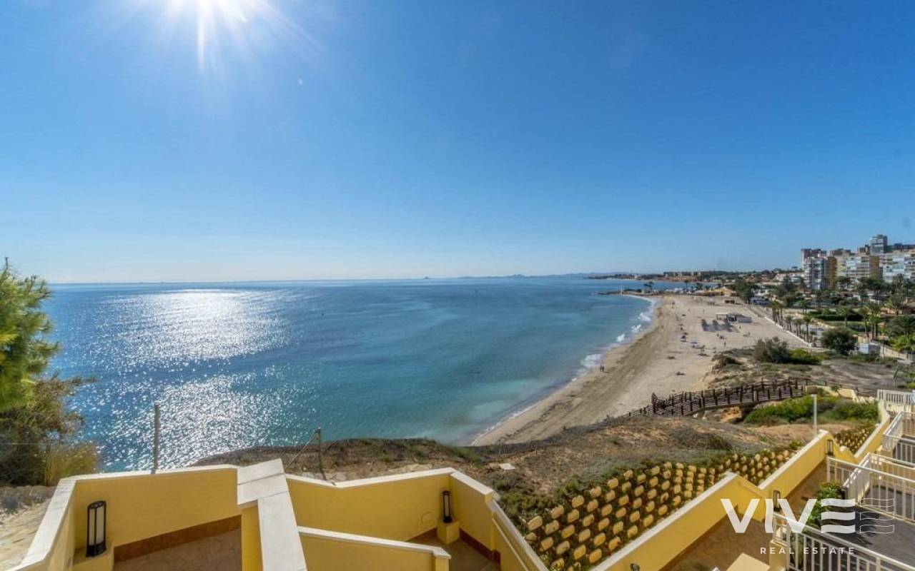We present this spectacular seafront apartment/duplex, located in a prime location in Dehesa de Campoamor, boasting stunning panoramic views of the Mediterranean Sea and direct access to two beautiful beaches.~~With 119 m² built over two floors, this property offers everything you need to enjoy comfort and the beauty of coastal living. It features 3 spacious bedrooms, 3 full bathrooms, and a large fully equipped kitchen, perfect for everyday use or entertaining guests.~~The apartment includes two terraces with front-line sea views, where every sunrise and sunset becomes a magical experience. It also comes with a private parking space, a real asset in this sought-after area.~~Situated next to the Campoamor promenade and just steps away from all services, restaurants, shops, and leisure areas, this duplex is an exclusive opportunity to live by the sea or invest in one of the best locations on the coast.