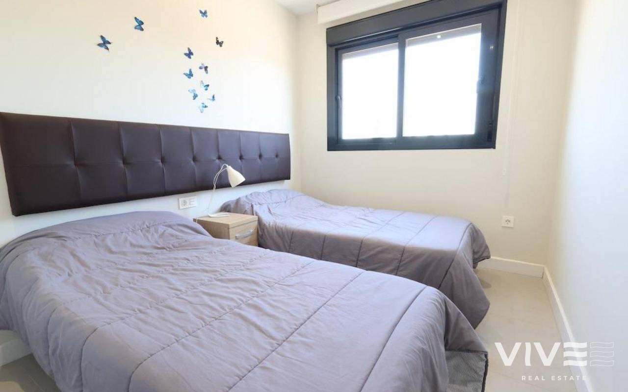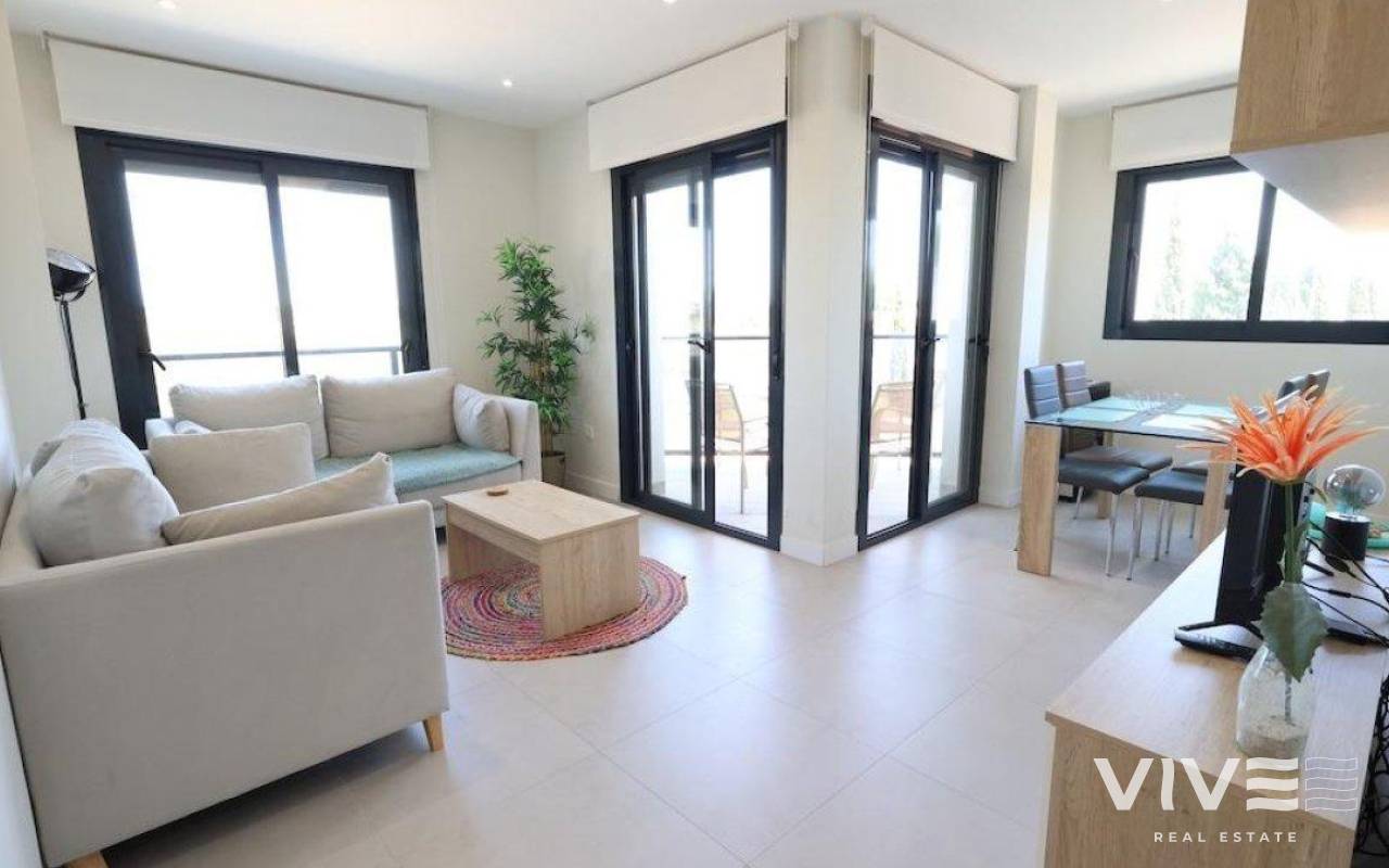 A modern, well-designed apartment fully adapted for wheelchair access – yet perfect for anyone who values comfort, space and convenience in a great location.. . 2 spacious bedrooms with built-in wardrobes. 2 bathrooms, one fully accessible. Kitchen with lowered worktop and open space beneath. Includes dishwasher and washing machine. . ???? Bright living room with terrace and open views. Central air conditioning and heating. Fully furnished and equipped exept for personal belongings. ???? Shared amenities:. Rooftop pool with sea and landscape views. BBQ area and lounge furniture. Social lounge on the ground floor. Communal parking spaces beside the building. . ???? Location:. . Just 1 km from the Mar Menor beaches. 5-minute drive to Dos Mares Shopping Center. Private physiotherapy/osteopathy clinic on site