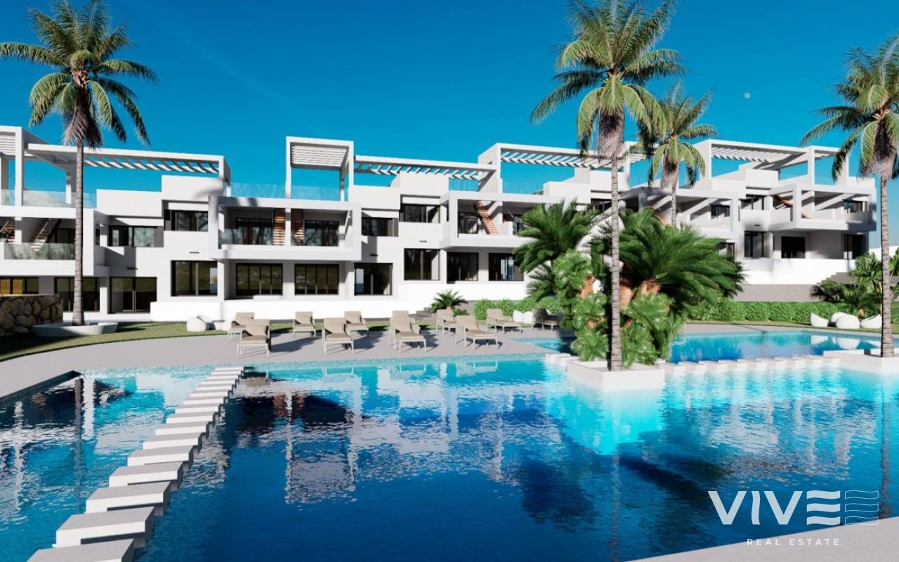 NEW BUILD RESIDENTIAL COMPLEX IN FINESTRAT New Build residential complex in Finestrat located in one of the best areas to live in the Costa Blanca. New Build complex consists of 20 bungalows with 2 bedrooms and 2 bathrooms with access to the common areas and swimming pool. Ground floor bungalows have 131 m² built area, distributed in a spacious living-dining room with open kitchen, 2 large bedrooms and 2 complete bathrooms, plus 2 terraces of 31.40 m² and 25.35 m². The top floor bungalows have 178.51 m² built area, distributed in 2 spacious bedrooms, 2 bathrooms, a living-dining room with open-plan kitchen, a terrace of 18.31 m² and a magnificent solarium of 85.82 m² All the bungalows comes with parking space. The properties have magnificent views of the sea and the Benidorm skyline. Finestrat located in the Marina Baixa region of the Costa Blanca, close to neighbouring Benidorm and about 40 kilometres from the city of Alicante and the international airport. Benidorm is just a five-minute drive from the properties and offers all the services you would need including shops, bars, restaurants, supermarkets, banks, pharmacies and several private international schools. Close to the beaches of Levante, Poniente and Cala de Finestrat, with more than 6km in length that are among the best in Europe awarded by the European Union with Blue Flags. All leisure services such as the theme parks of Aqua Natura, Terra Mítica, Terra Natura, Aqualandia and Mundomar, Sierra Cortina and Villaitana Golf courses, hiking and climbing in Puig Campana an incomparable natural setting or enjoy of nautical sports.