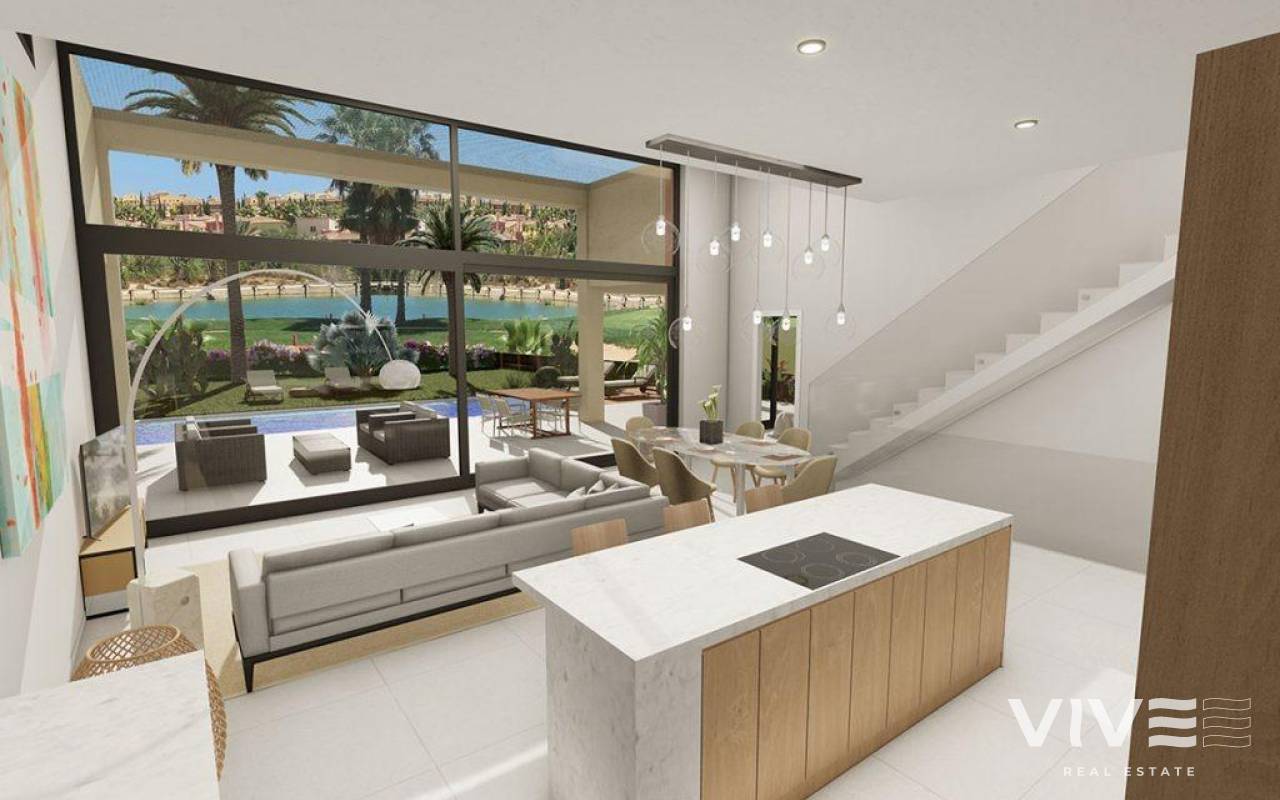 STUNNING NEW BUILD VILLAS IN DESERT SPRINGS RESORT A limited selection of luxurious four-bedroom fairway frontage Villas that afford stunning views across the championship Indiana course and mountain ranges beyond. Privacy is afforded via a gated front courtyard, private parking and perimeter fencing. An extensive roof top lounge and terraces, deep shady verandas with a built-in BBQ, a manicured private garden with swimming pool overlooking the golf course, ensure that the exterior presents a wealth of opportunity to enjoy the long lazy summer days and glorious star-filled evenings. Inside, contemporary design and natural light, showcasing an overall feel of space, are the outstanding characteristics of a sophisticated interior that offers a stylish home with modern appeal. Features include an internal reception area that opens into an extensive open plan living/dining room and kitchen with ‘level through’ floor, onto the covered verandas, private landscaped garden and swimming pool to offer a combined interior/ exterior living and dining space, designed to be used as one in the region’s specially privileged climate. Located on the first floor, the master bedroom with en-suite has direct access to the extensive roof top lounge and terrace. There are two further bedrooms with en-suite on the ground floor, one with direct access to the extensive veranda and swimming pool as well as a fourth bedroom with separate bathroom. Downstairs the vast lower ground floor presents a games room, cinema room, wine cellar, office, utility room and fifth bathroom. Luxurious finishes include attractively tiled bathrooms, an open plan kitchen with ‘Silestone’ worktops, with integrated appliances, ceramic hob and cooker hood. Double glazing, mirrored wardrobes to bedrooms with high quality ‘Roca’ or ‘Porcelnosa’ sanitary ware and fittings throughout. A mechanical ventilation system to lower, ground and first floor and photovoltaic panels connected to the hot water cylinder with individually controlled hot/cold air-conditioning units to the living room and bedrooms, cater fully for all temperature control requirements. USB ports in all rooms with high-speed internet connectivity.