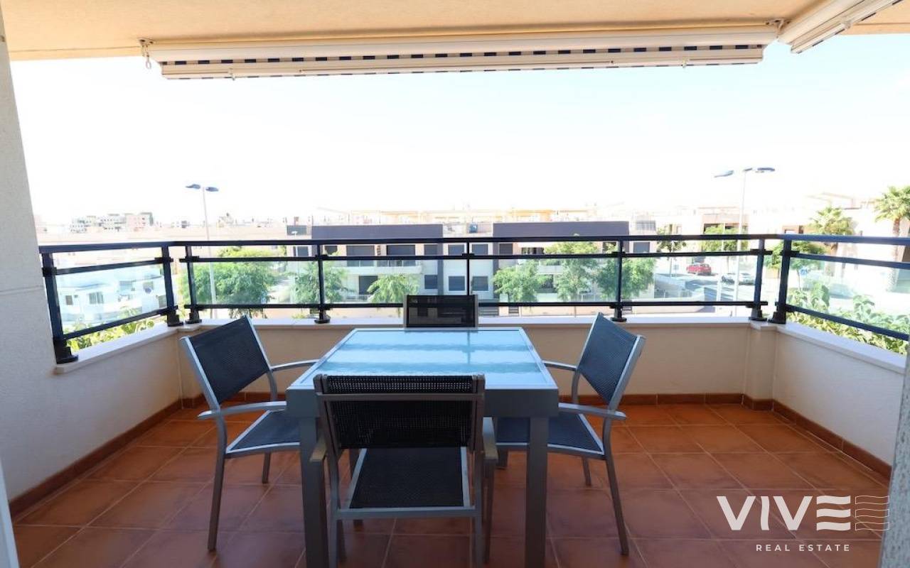Mil Palmeras – Penthouse with Sea Views Just 150 Meters from the Beach. . Located in the exclusive Río Mar XI residential complex, this bright south-facing penthouse enjoys a privileged location just 150 meters from the sea. The property offers 98 m2 distributed across 2 bedrooms, a full bathroom, an open-plan kitchen, and a spacious living-dining area with access to a terrace boasting stunning sea views.. . It includes a spectacular private solarium of 59 m2, fully equipped with a barbecue area, shower, storage room, and awnings — perfect for enjoying the Mediterranean climate all year round.. . The property is sold fully furnished with air conditioning, and includes a large parking space and a storage room in the price.. . The residential complex features beautifully landscaped gardens, a children's play area, tennis court, and a stunning communal swimming pool with direct access to the beach.. . An excellent opportunity as a permanent residence, holiday home, or investment in one of the most sought-after areas of the Costa Blanca.