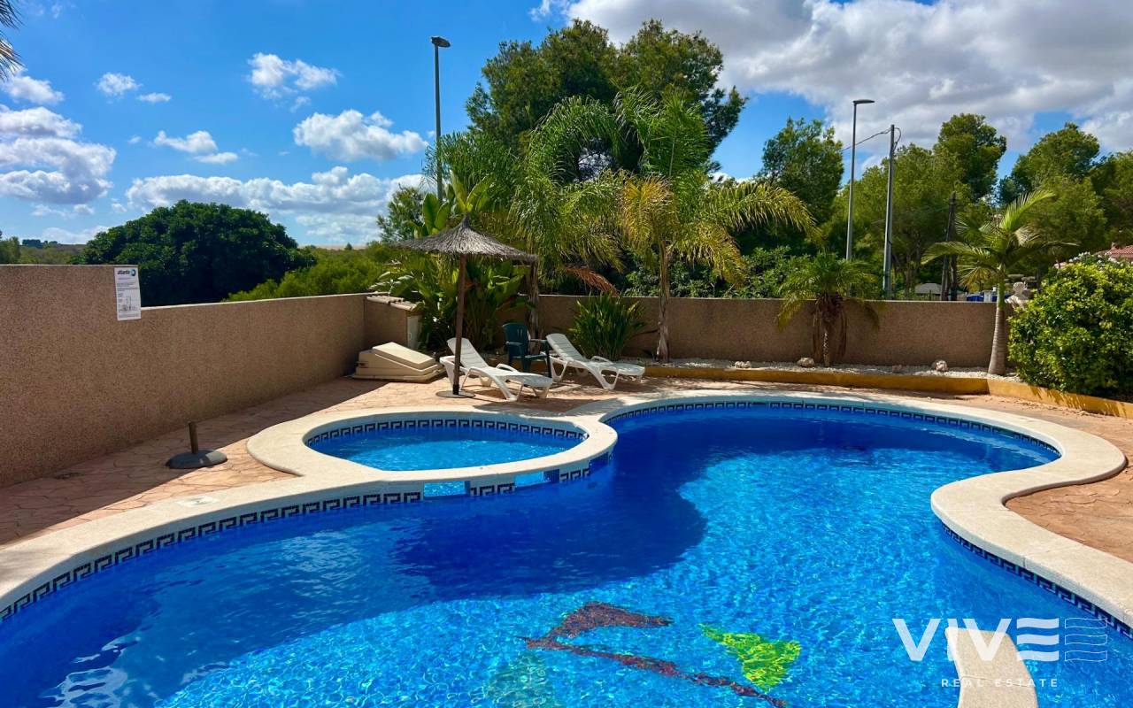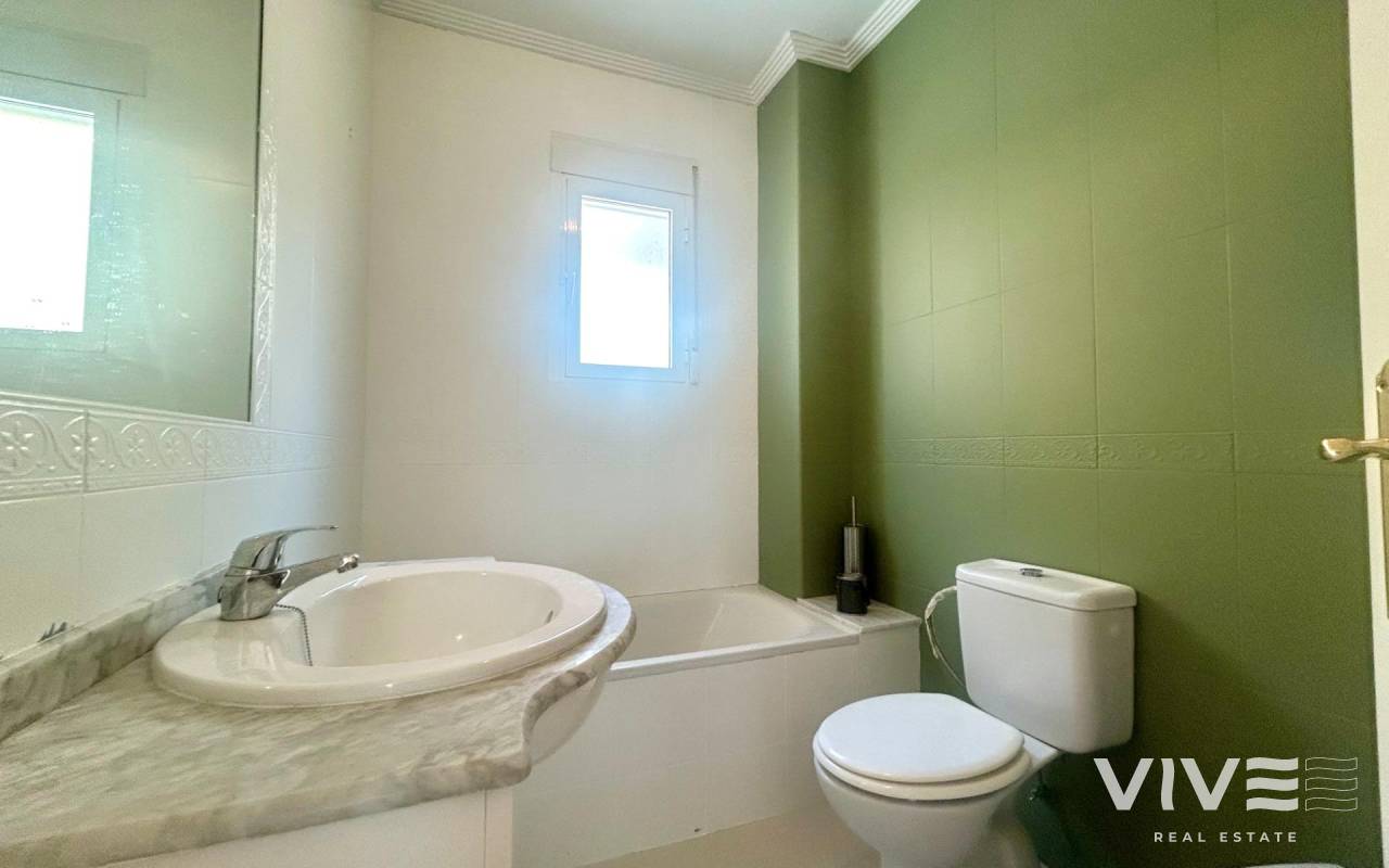 Townhouse Triplex for Sale in Montemar Urbanization, next to La Finca Golf in Algorfa (Costa Blanca)~Discover this beautiful triplex townhouse for sale in Algorfa, located in the exclusive Montemar urbanization, just a short walk from the prestigious La Finca Golf Resort. A privileged location on the Costa Blanca, perfect both for holidays and for year-round living.~The property is distributed over several levels:~Ground floor: spacious private garage with direct internal access to the house.~First floor: bright living-dining room, open-plan kitchen, bathroom, and two terraces, one of them with lovely views of the green area.~Second floor: two bedrooms, a complete bathroom, and another terrace with open views.~Top floor: large and sunny private solarium, ideal for relaxing and enjoying the Mediterranean climate with beautiful views of the natural surroundings.~The residential complex offers a communal swimming pool and is set in a peaceful area, close to all amenities, shops, and only a short drive to the beaches of Guardamar del Segura and Torrevieja.~This triplex for sale in Montemar – Algorfa combines comfort, a great location, and an unbeatable environment to enjoy the Mediterranean lifestyle.