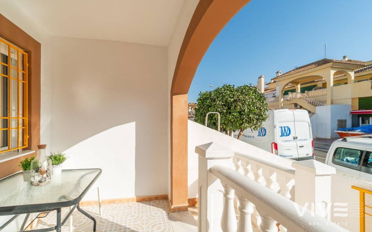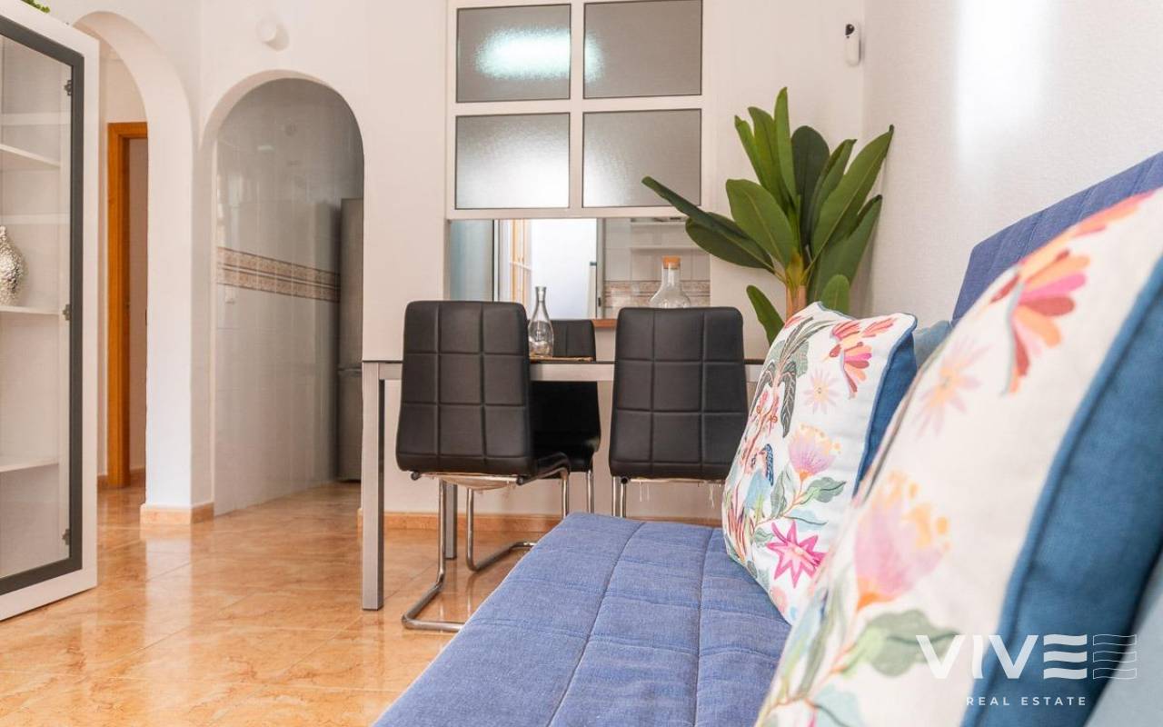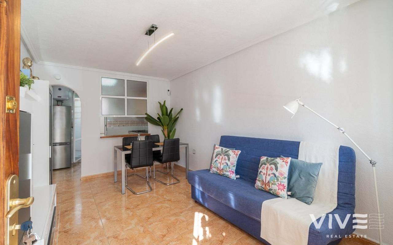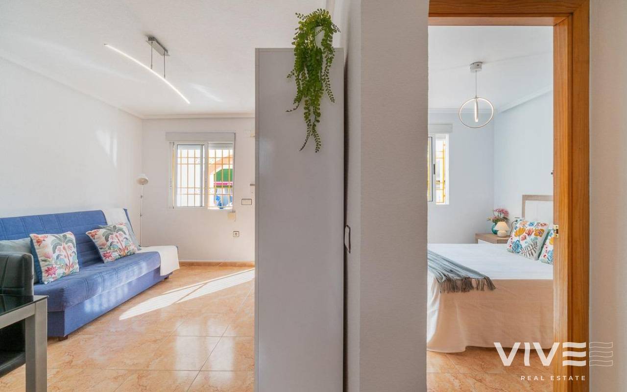 Discover this charming townhouse in Altos del Limonar, one of the most sought-after areas of Torrevieja to live all year round thanks to its peaceful atmosphere, excellent location, and wide range of nearby services. The property is located in a private residential complex with a communal pool and green areas, perfect for enjoying the Mediterranean climate in a safe and well-kept environment.. . The house features private parking within the plot, a cozy front porch, and upon entering, a spacious living-dining room connected to an independent kitchen. At the back, there is a private patio with a spiral staircase leading to a private solarium, ideal for relaxing or as extra outdoor space. It also offers two bedrooms, a bathroom, and east-west orientation, ensuring natural light throughout the day.. . The location is excellent: next to schools and institutes, very close to the Natural Park of the Salt Lakes of Torrevieja, surrounded by shopping centers, and with easy access to the extension of the new areas of Torrevieja.. . Thanks to all these features, this property is ideal both as a permanent residence and as a holiday or seasonal rental, especially attractive for teachers and professionals working in the nearby educational centers.