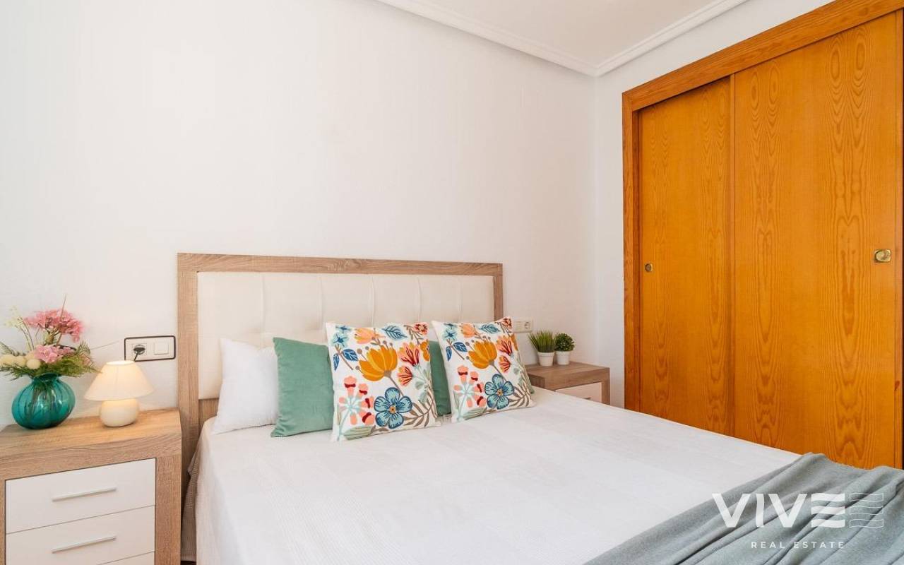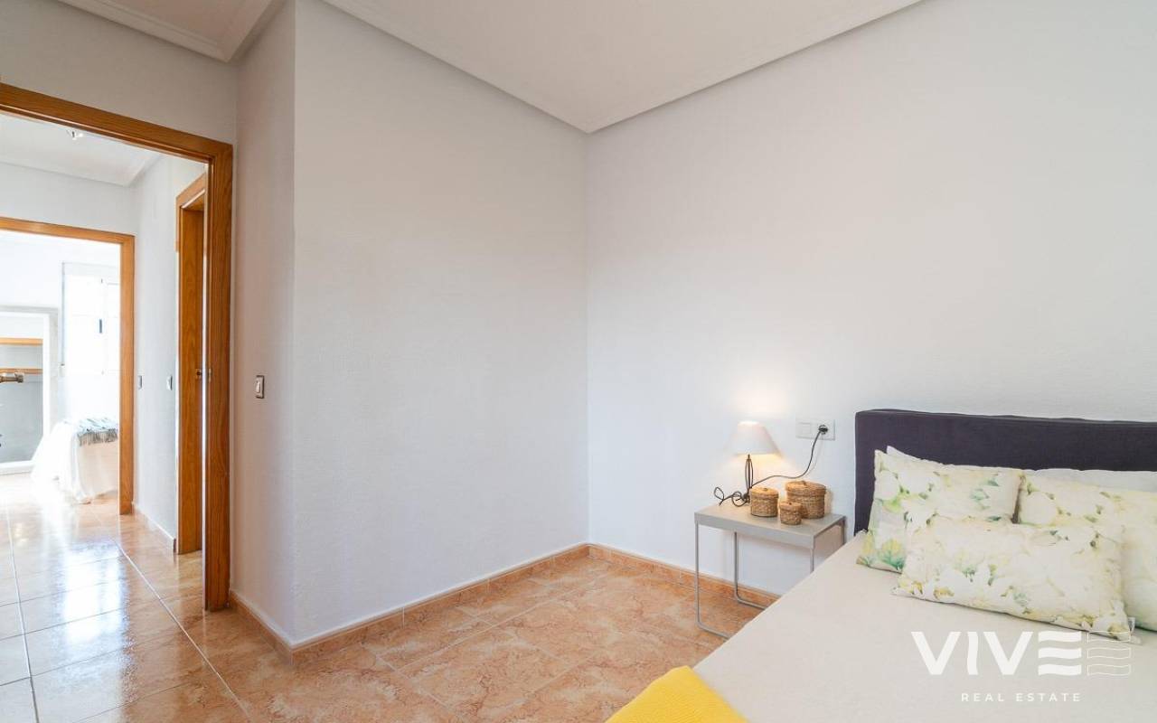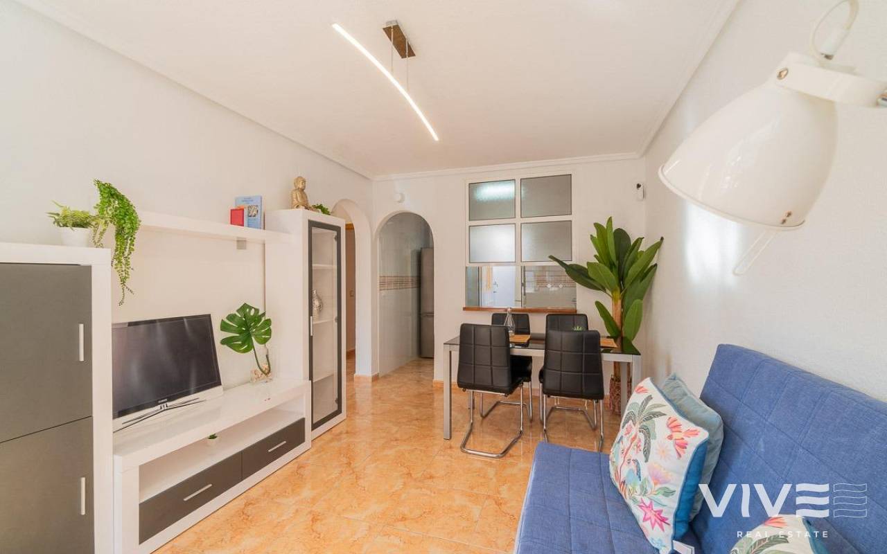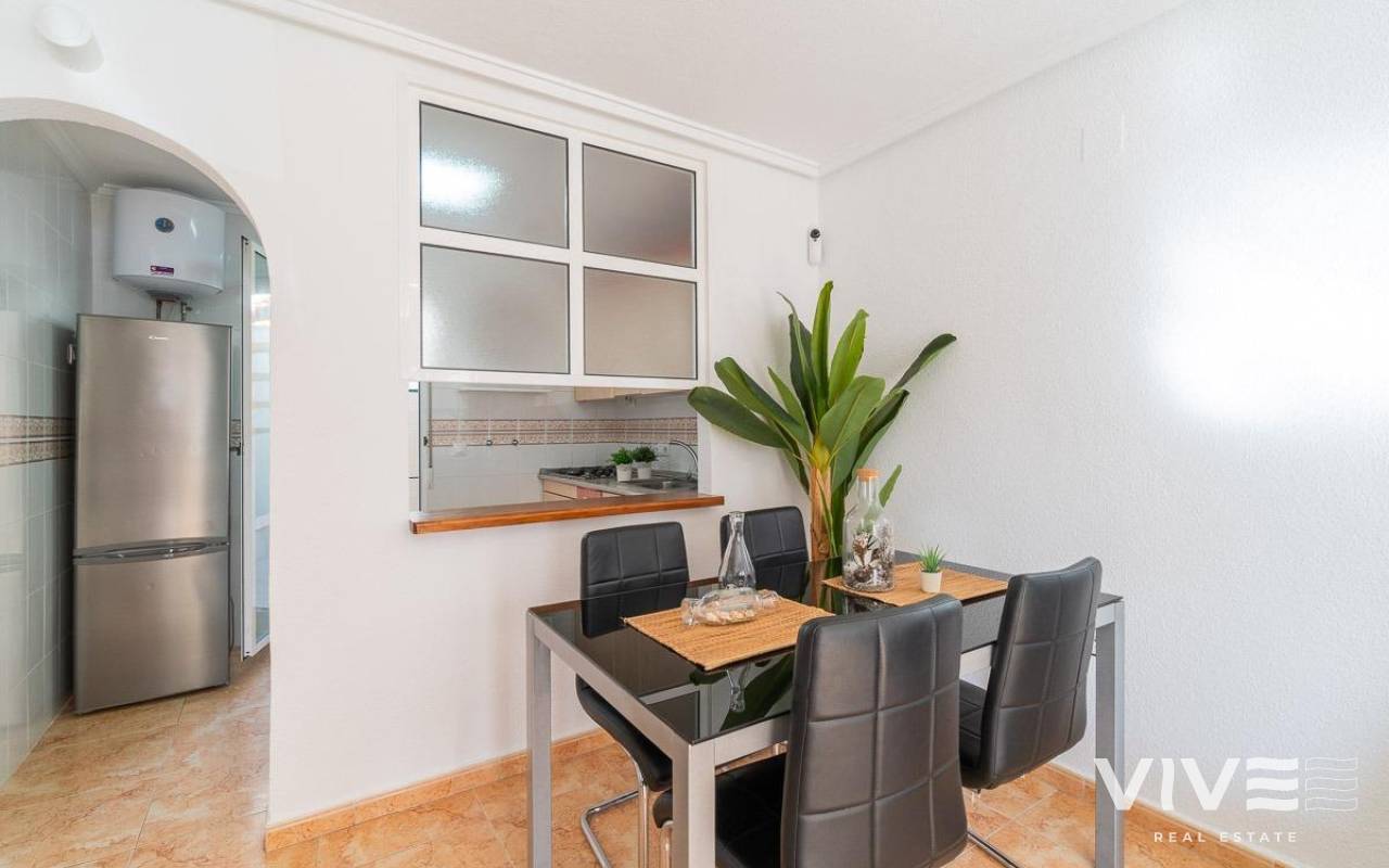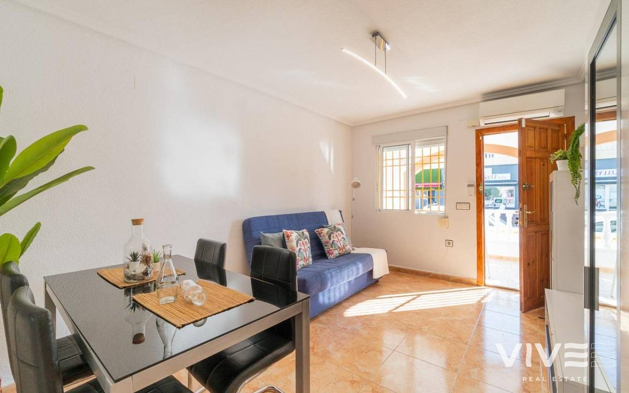 Discover this charming townhouse in Altos del Limonar, one of the most sought-after areas of Torrevieja to live all year round thanks to its peaceful atmosphere, excellent location, and wide range of nearby services. The property is located in a private residential complex with a communal pool and green areas, perfect for enjoying the Mediterranean climate in a safe and well-kept environment.. . The house features private parking within the plot, a cozy front porch, and upon entering, a spacious living-dining room connected to an independent kitchen. At the back, there is a private patio with a spiral staircase leading to a private solarium, ideal for relaxing or as extra outdoor space. It also offers two bedrooms, a bathroom, and east-west orientation, ensuring natural light throughout the day.. . The location is excellent: next to schools and institutes, very close to the Natural Park of the Salt Lakes of Torrevieja, surrounded by shopping centers, and with easy access to the extension of the new areas of Torrevieja.. . Thanks to all these features, this property is ideal both as a permanent residence and as a holiday or seasonal rental, especially attractive for teachers and professionals working in the nearby educational centers.