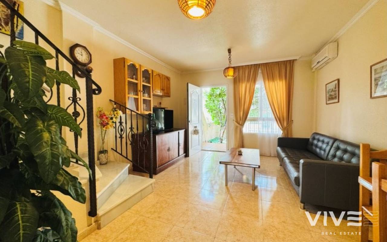 We present this magnificent duplex property located in one of Torrevieja's most sought-after areas: Aguas Nuevas. With a constructed area of 85 m², this home offers comfort, style, and a prime location, ideal for both permanent and vacation residences. ???? Home layout:3 spacious, bright, and well-spaced bedrooms, perfect for families or guests. 2 full bathrooms, in excellent condition, with modern finishes. South-facing. Fully equipped, functional kitchen with direct access to the backyard. Spacious, tastefully decorated living-dining room with access to the front terrace. 2 terraces (one on the ground floor and one upstairs), ideal for enjoying the Mediterranean climate. Private backyard, perfect for al fresco dining, a barbecue area, or simply relaxing.  Condition and amenities:Very well-maintained home, ready to move into. Sold fully furnished, with quality furniture in perfect condition. Air conditioning is installed in all rooms.  Common Areas:It is part of a quiet and safe residential area, surrounded by greenery. It has a beautiful communal pool, perfect for cooling off in the summer and socializing.  Location:Located in Aguas Nuevas, a highly sought-after residential area due to its proximity to all amenities: Supermarkets, shopping centers, pharmacies, and restaurants are just minutes away. Bus stops and easy access to the national highway. Less than 10 minutes by car from the beaches of La Mata and Los Locos. This duplex represents a unique opportunity to enjoy Mediterranean life with all the amenities. Whether as a permanent residence, a vacation home, or a rental investment, this property has it all!