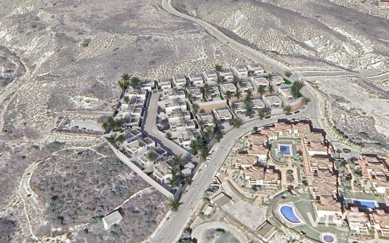Modern New Build Villas with Private Pool in Valle del Este, Vera, Almería Exclusive Private Residential of 33 Independent Villas Discover a unique collection of 33 new build villas located in a secure private residence in Valle del Este, Vera, Almería. Positioned next to the prestigious Valle del Este Resort and Valle del Este Golf Course, this development offers the perfect blend of nature, tranquility and resort style living. Designed on a single level, each villa offers maximum comfort and functional living, ideal for both permanent residence and holiday investment. Contemporary Design on One Level with Solarium and Pool These beautifully planned homes feature 3 bedrooms and 2 bathrooms, a spacious open plan living area and seamless indoor outdoor connection. Every villa includes a private solarium, private swimming pool and independent plot with landscaped areas. Key features include: Fully fitted kitchen with appliances Modern bathrooms with vanity units and shower screens Private swimming pool with night lighting and saltwater system Private solarium and pergola Motorised gate and private parking Pre installation for ducted air conditioning Prime Location Near Beach, Golf and Services Valle del Este is one of the most desirable residential areas in the Levante Almeriense, known for its peaceful surroundings, high quality golf facilities, natural landscapes and excellent Mediterranean weather. Vera is internationally recognised for its natural beaches and crystal clear waters, offering over 6 km of coastline including Las Marinas Bolaga, Puerto Rey, El Playazo and Quitapellejos. Also nearby are top coastal towns like Mojácar and Garrucha, famous for their charming beaches, marinas, restaurants and leisure options. Distances to Main Points of Interest Valle del Este Golf 0.3 km Beaches of Vera 7 km Mojácar and Garrucha less than 10 km Almería Airport 75 km (45 minutes) Corvera Murcia Airport 140 km (1 hour 30 minutes) Alicante Airport 200 km (2 hours) The area is perfectly connected by the Mediterranean motorway A7, providing fast access to services, shops, beach clubs, marinas, sports areas and cultural attractions in the region. Enjoy Luxury Mediterranean Living in Vera Experience the perfect balance of modern design, privacy and resort lifestyle in one of the most attractive areas of Almería. Contact us today for full details, availability and viewing arrangements and secure your dream villa in Valle del Este.