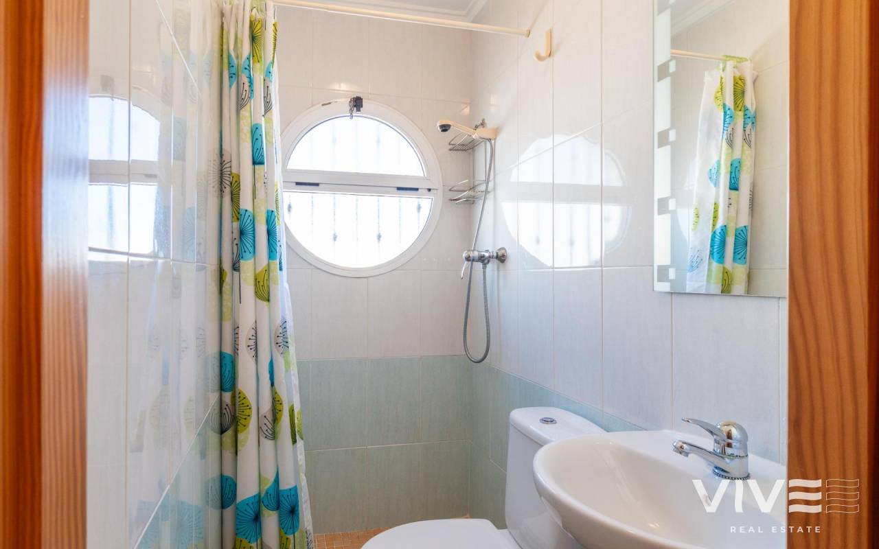 Discover this wonderful property located in the sought-after Playa Flamenca area. This charming two-bedroom, two-bathroom quad offers the perfect balance of comfort and style, making it ideal for both living and investment, just minutes from La Zenia Boulevard shopping center and the beautiful beaches of Orihuela Costa.. . With a constructed area of 63 m2 and an impressive 45 m2 east-facing private terrace, you can enjoy the sun all day long. Only 1500 meters from the sea, you'll have easy access to the best beaches in the region. The property comes fully furnished and includes modern amenities such as air conditioning, a convenient laundry room, and an automatic garden irrigation system.. . On the ground floor, you'll find the living/dining room, a fully equipped kitchen, a laundry room, the master bedroom, and a full bathroom.. . The first floor comprises the second bedroom with access to a private terrace and the second bathroom.. . The property also boasts a communal swimming pool, perfect for sunny days! Let's not forget to mention that you can park your car directly within the property, providing added security for your vehicle.. . The location is unbeatable: nearby you'll find buses that easily connect to other important destinations, as well as shopping centers for all your daily needs, and medical services available thanks to nearby hospitals.. . If you're looking for a high quality of life by the sea or simply want to make a secure investment, inquire about it today!