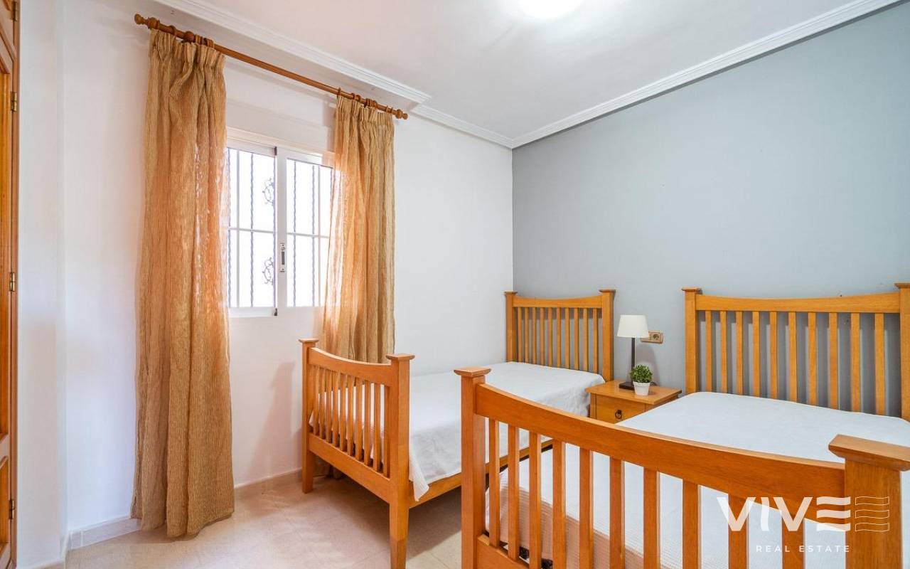 This apartment, located in the Altos de Cabo Roig Urbanization, very close to VillaMartin, in Pinada Golf Phase II, right at the confluence of the municipalities of Orihuela Costa and San Miguel de Salinas, and with good transport links to both, is the ideal opportunity.. . The apartment's location guarantees easy access to the area's highlights: the beaches of Cabo Roig and Campoamor, the area's most popular restaurants, and bus stops very close to the building entrance, making a car unnecessary. It's also within walking distance of shopping and leisure centers, with supermarkets, ATMs, bars, and restaurants where you can enjoy international cuisine: Chinese, Italian, Indian, tapas, and more. And if you have school-aged children, the property is near the El Limonar International Bilingual School, ensuring they can receive a quality education just a short distance from home.. . The property is located near the Villamartin Golf Course, but is also famous in the area for its three other golf courses: Las Ramblas, Campoamor, and Las Colinas. The well-known Playa Flamenca market, held every Saturday, is also worth a visit, offering the chance to mingle with the diverse nationalities (Swedes, English, Germans, Spaniards, Belgians, among others) that enrich our coast.. . In addition, it has very easy access to Torrevieja, Alicante, Murcia, and Cartagena via the AP-7 and N-332 highways, with direct connections to the airports of Alicante (approx. 40 km) and Murcia (approx. 40 km). There is ample street parking for residents, with open and well-maintained spaces, and there are also communal parking spaces within the building complex, with direct access to the property's private garden from the communal parking area. The neighborhood and area are quiet and friendly, with a communal pool and gardens open year-round, where you can enjoy the sun and family activities every day of the year.. . The apartment is located on the ground floor, making it perfect for people with mobility difficulties or who cannot climb many stairs. It has a large garden of over 70 m2, ideal for a barbecue area and garden, overlooking the park and the green area of the promenade, offering open views of the trees. The property also features a large back patio within the house, which can be used as a laundry and drying area or for children to play in their own private yard.. . It has a beautiful living-dining room, a separate kitchen so you can cook without unpleasant odors affecting the rest of the house, a laundry room (as mentioned) next to the back patio, a good-sized front balcony for enjoying the outdoors while remaining inside, with direct access to the large private garden, two spacious bedrooms with built-in wardrobes, and a full bathroom.. . Key features include the large plot of land, which offers ample space for play areas, a private garden, and many other options for enjoying the outdoors with your family. Both the bedrooms and living room are bright and airy, and all the rooms have exterior views.. . The house is in excellent condition and comes furnished, so by customizing it to your personal taste, it can become the perfect home for year-round living with your family or for generating rental income. It's well worth a visit to explore all its possibilities.