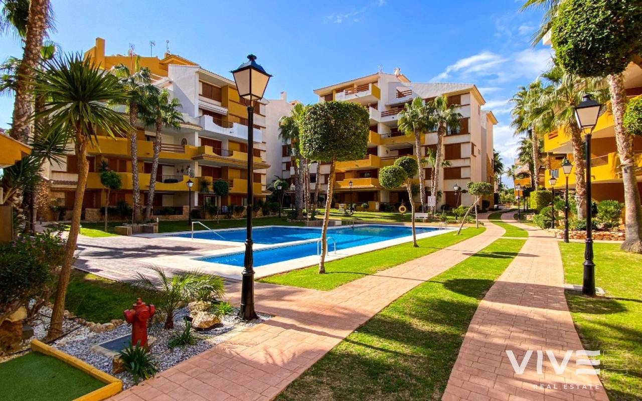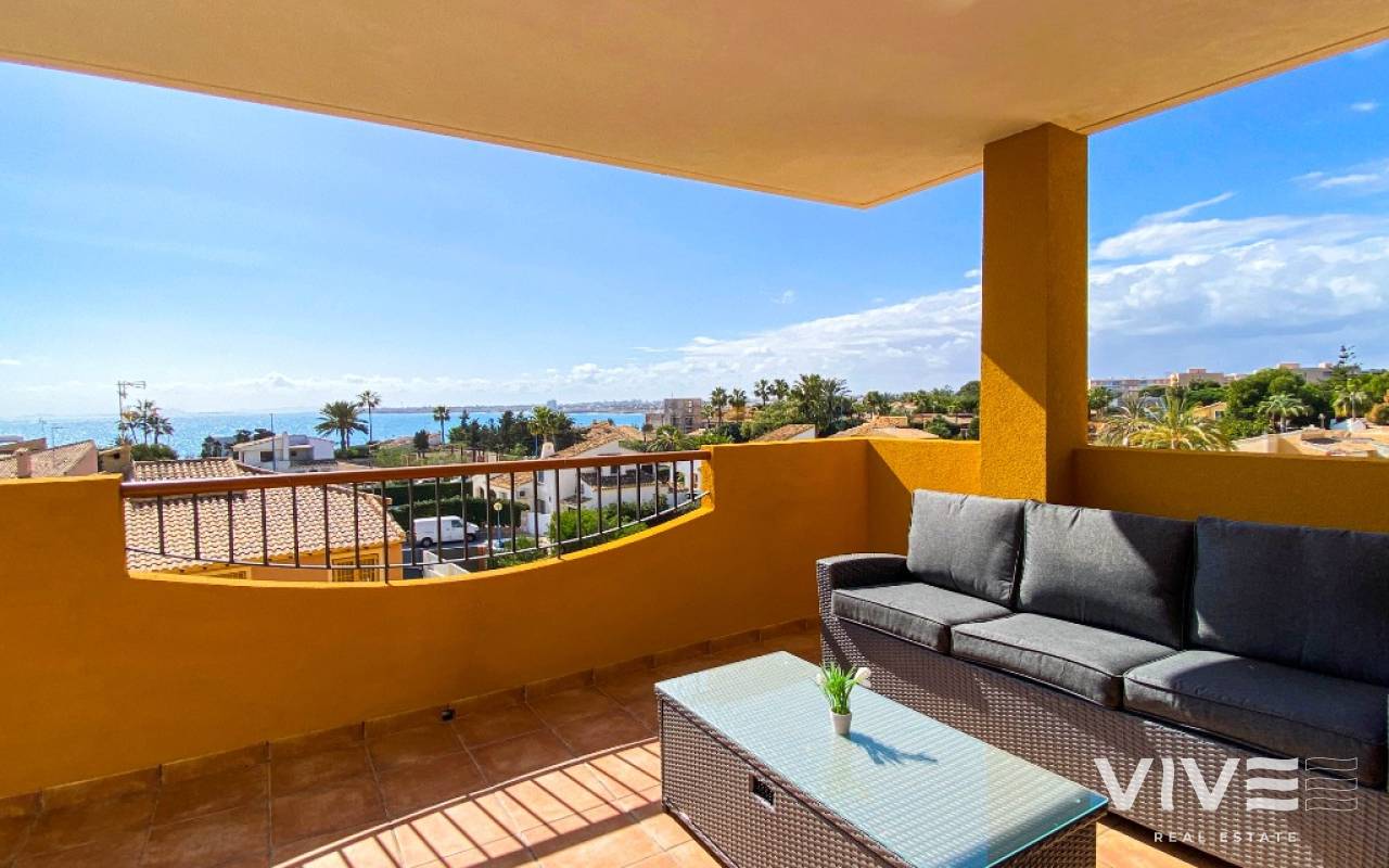 We offer for short term rent a delightful apartment in the complex La Recoleta, Punta Prima. The apartment consists of 3 bedrooms, 2 bathrooms (one of which is a suite), a fully equipped open kitchen and a spacious sunny living room with a balcony overlooking the unforgettable scenery of the Mediterranean Sea and cozy Spanish flavor.The Recoleta is under 24-hour security and is considered one of the most beautiful in Punta Prima. Swimming pools, green areas and an abundance of tropical plants are perfect for an exquisite vacation. Just a few minutes walk the sandy beaches of Punta Prima and a wide range of services - from shops and supermarkets to entertainment venues such as bars, restaurants and the largest shopping center La Zenia Boulevard. Within a radius of several kilometers are the famous golf clubs of Las Colinas and Campoamor.