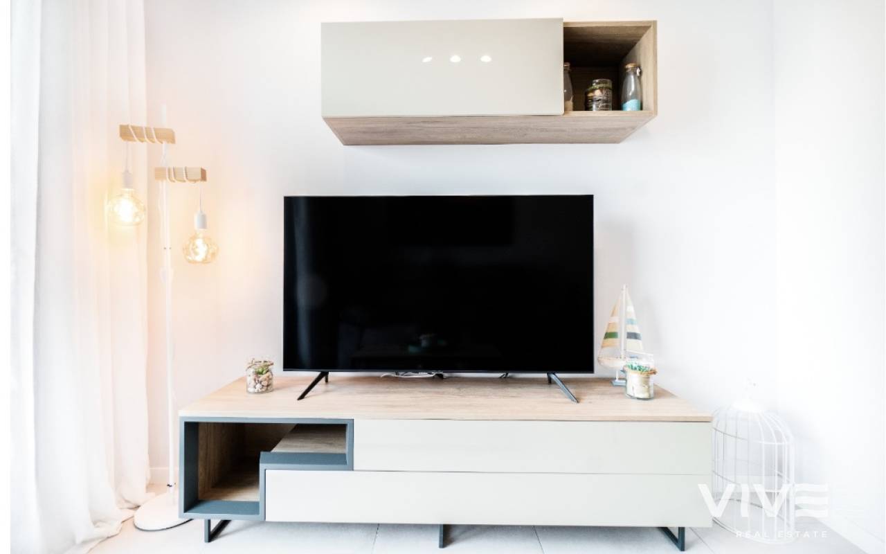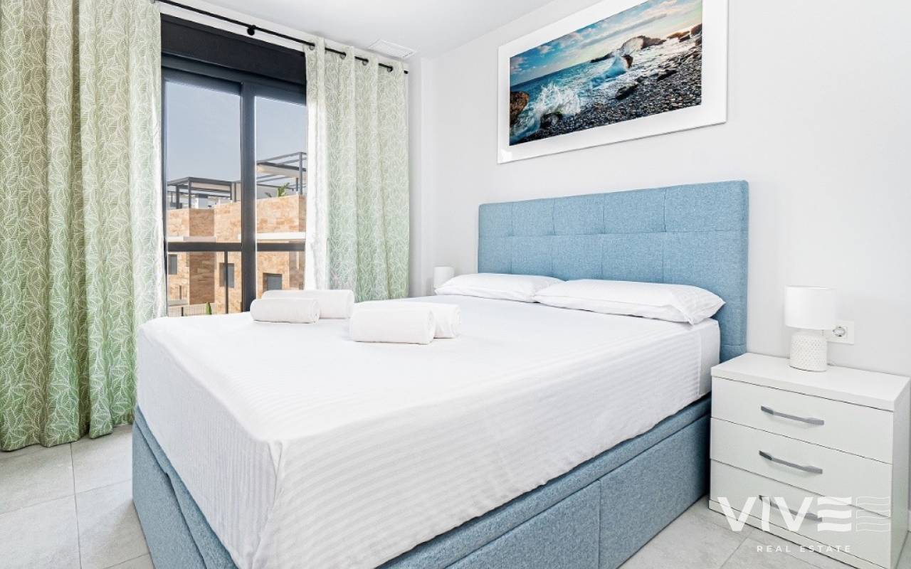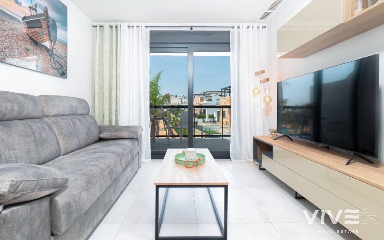 We offer an apartment for sale in the charming area of Mil Palmeras.This brand new property is part of a prestigious estate that impresses not only with its location, but also with its high standard of finishing. The apartment has 2 bedrooms, 2 bathrooms, american style kitchen, a terrace overlooking the pool and solarium.Mil Palmeras is a quiet development belonging to the town of Pilar de la Horadada. In the summer season, it is a popular place for tourists and vacationers.It is also a great starting point to diversify your daily sunbathing thanks to its close proximity to Mil Palmeras beach and Torrevieja and Orihuela Costa. This means that we are talking about an ideal place for lovers of nature and peace.