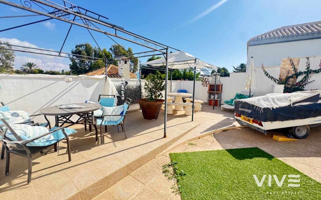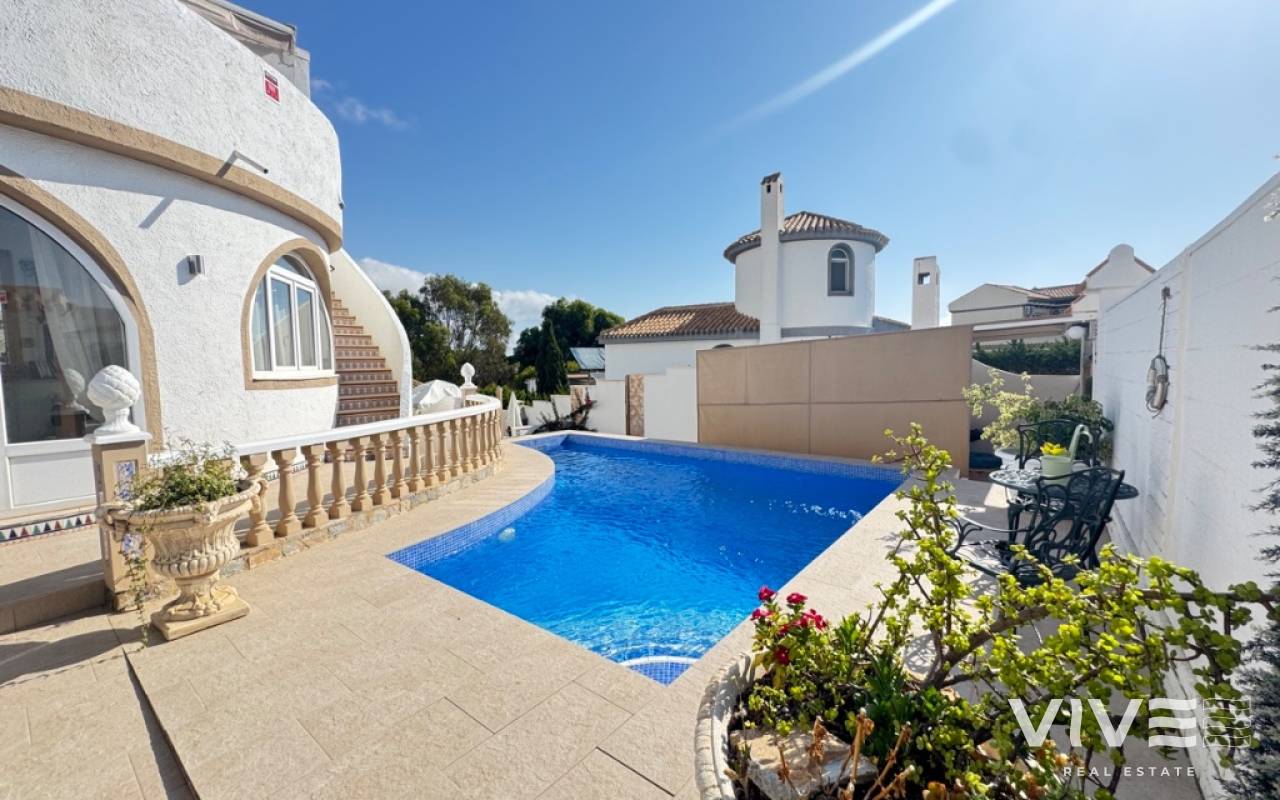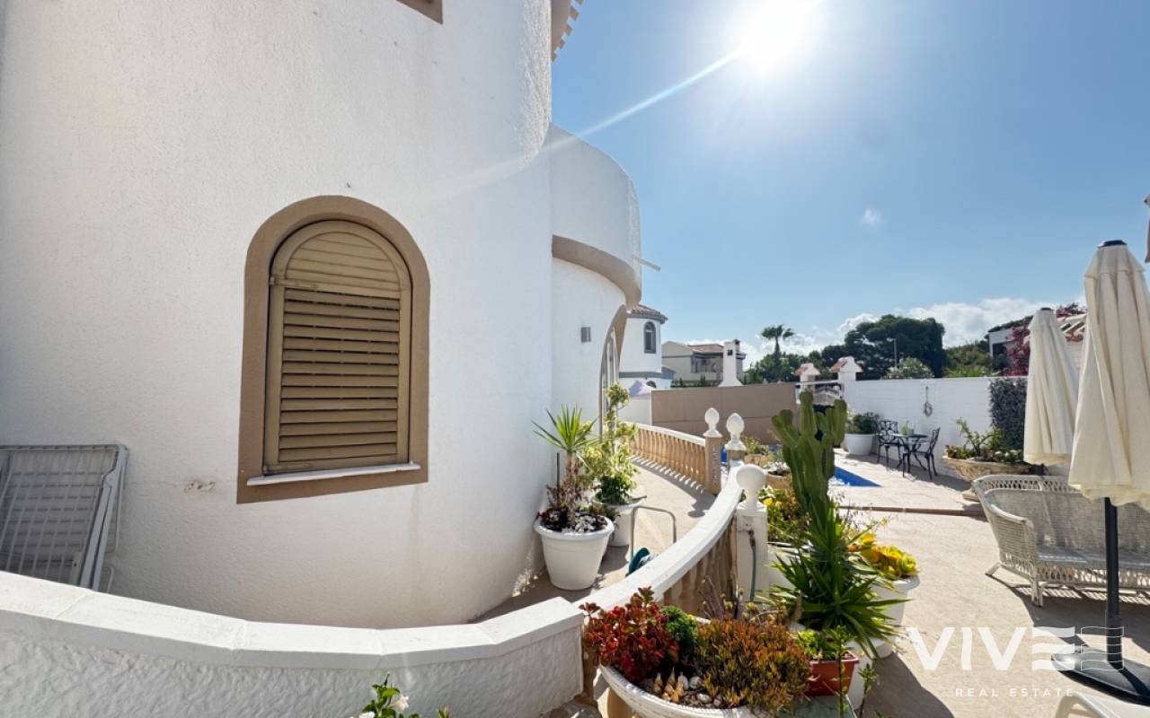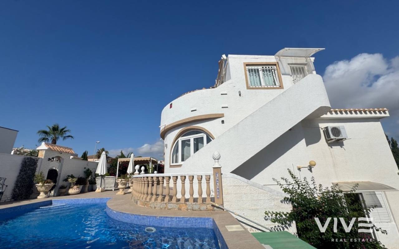 For sale 4 bedroom detached villa in La Zenia, Orihuela Costa.The property has: 4-bedrooms, 3-bathrooms perfectly positioned beachside in La Zenia, Orihuela Costa. 4 spacious bedrooms, each with ample storage - 2 bedrooms on the main floor, perfect for family living - 1 guest bedroom in the underbuild, offering additional living space - 1 master bedroom on the top floor, with access via an external staircase - 3 bathrooms, - Private garden with multiple terraces, perfect for relaxation and outdoor dining. Private pool, offering a refreshing spot to cool off and enjoy the surroundings Beachside Living: - Direct access to La Zenia Beach, with its golden sands and crystal-clear waters. Relaxed and peaceful atmosphere, perfect for those seeking a tranquil coastal lifestyle Ideal for: - Families seeking a spacious and comfortable living space - Couples looking for a romantic and relaxing beach side retreat Don't miss the opportunity to own this luxurious beach side villa in La Zenia.