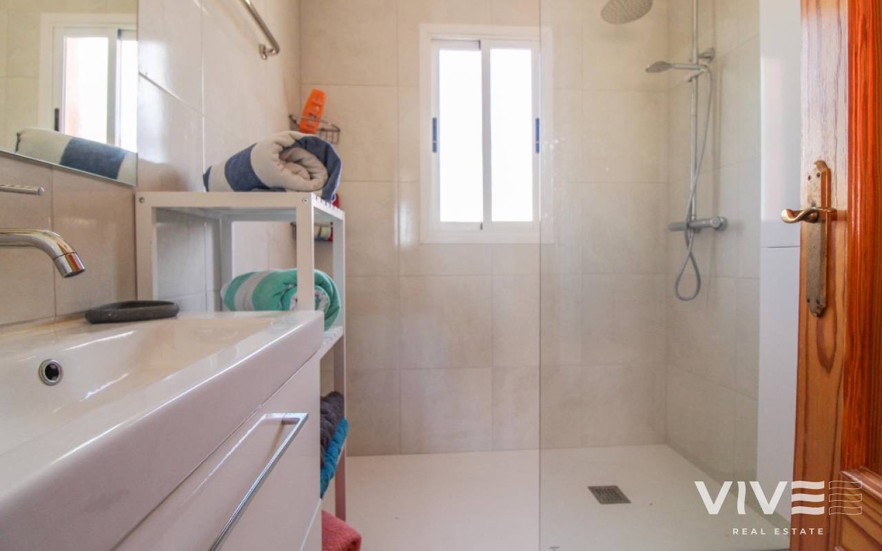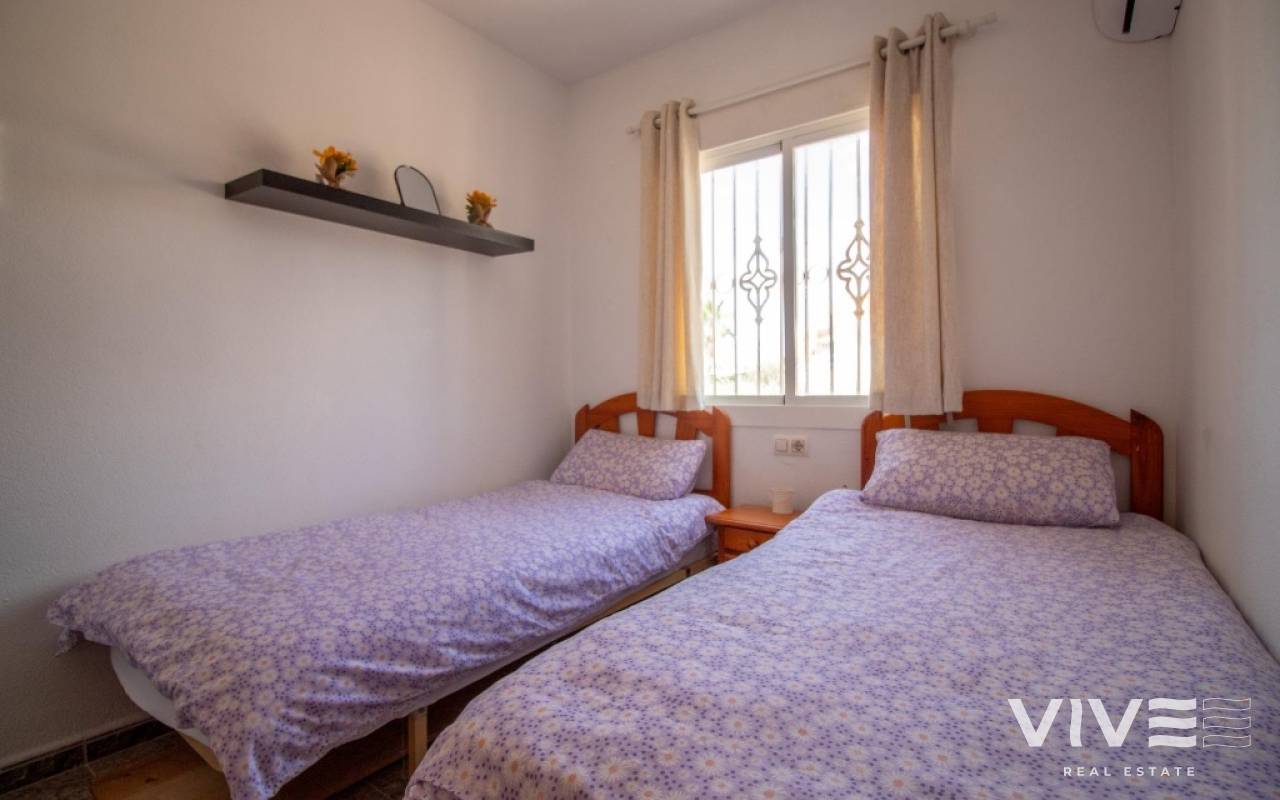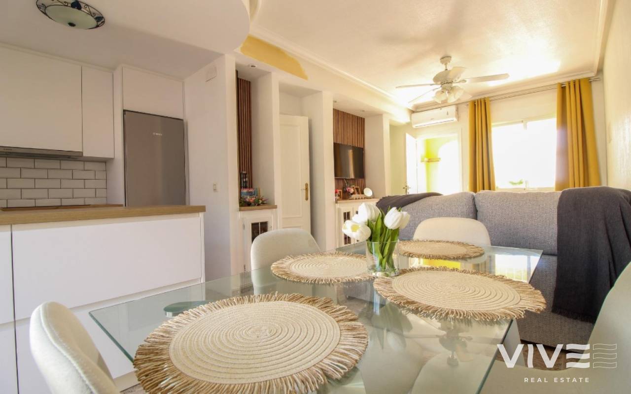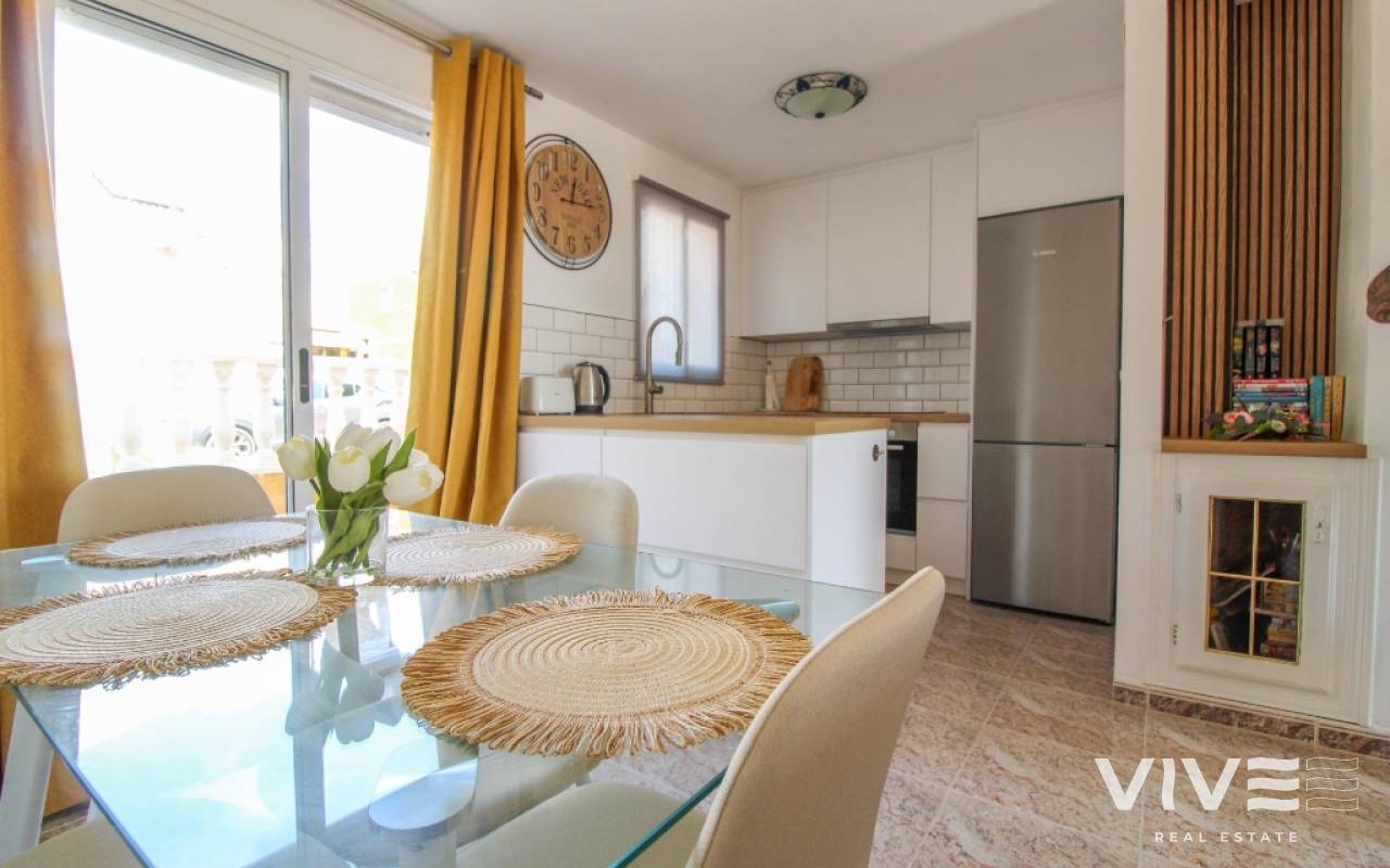 Charming East-Facing Townhouse in La Regia – Prime Location Near Cabo RoigThis beautifully maintained townhouse is located in the sought-after area of La Regia, Orihuela Costa – just 800 meters from the lively Cabo Roig Strip, 1 km to the golden sands of Cabo Roig Beach, and 1.3 km from the popular La Zenia Boulevard shopping center.Ground floor:Open-plan living, dining, and kitchen areaFully renovated kitchen with modern design and brand-new white goodsGuest toiletRear west-facing terrace with storage, ideal for afternoon sunUpstairs:Renovated main bathroomTwo bright bedroomsMaster bedroom features an adjoining east-facing balconyBrand new air conditioning units in all roomsA well-maintained community poolQuiet and residential street, yet walking distance to shops, restaurants, and beachesThis home is perfect as a holiday getaway, rental investment, or year-round residence. With its unbeatable location, modern upgrades, and both east and west-facing outdoor spaces, it offers a rare blend of comfort and convenience on the Costa Blanca.East-facing front garden – spacious and perfect for morning sun and outdoor dining