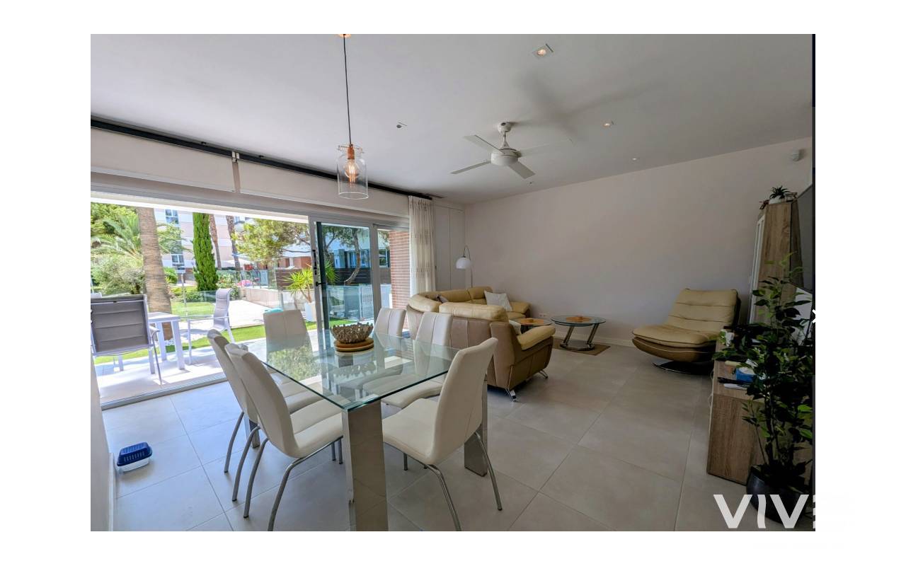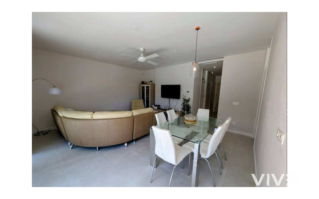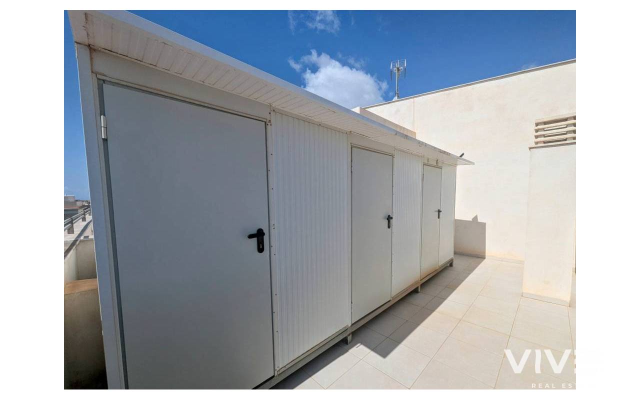 For sale ground floor apartment in El Mirador de Villamartin, Los Dolces.This charming ground floor apartment offers a perfect blend of comfort and convenience with its spacious layout and excellent amenities.Bedrooms: 3 (2 double, 1 single)All bedrooms come equipped with built-in wardrobes, providing ample storage space.Bathrooms: 2Enjoy the convenience of two well-appointed bathrooms, ensuring comfort for families and guests alike.Living Space: Enjoy a generous lounge/dining area that creates an inviting atmosphere for family gatherings and entertaining guests.Kitchen: A well-appointed separate kitchen that is functional and perfect for culinary enthusiasts.Outdoor Space: Step outside to a lovely large terrace at the back overlooking the community pool, ideal for relaxing and soaking up the sun. Additional patio space around the side offers even more outdoor enjoyment.Storage: Benefit from a convenient storage room located in the solarium, providing extra space for all your needs.Situated in a fantastic area, this property is just a stone's throw away from a variety of restaurants, bars, and local amenities, making it perfect for those who appreciate a vibrant lifestyle.